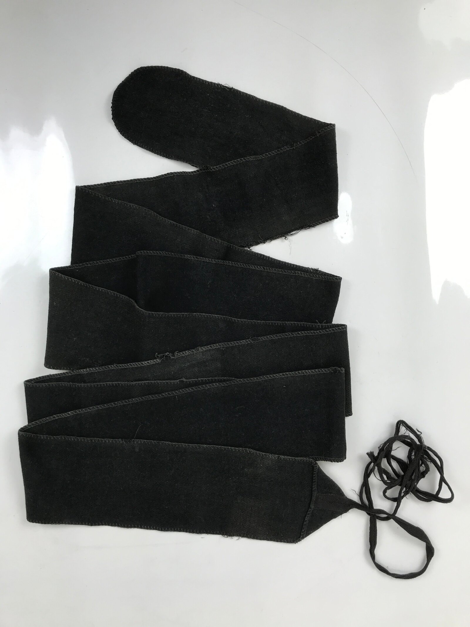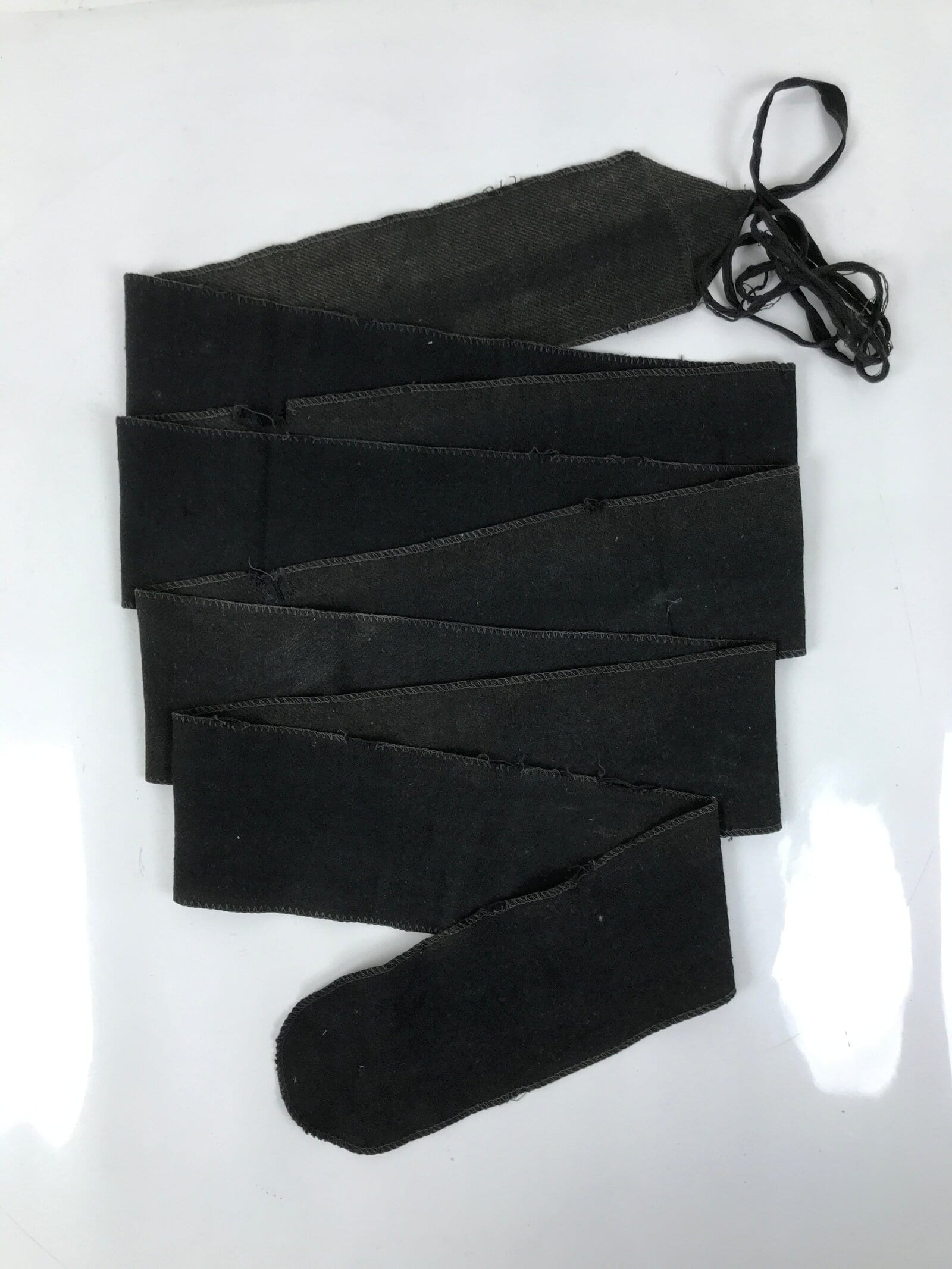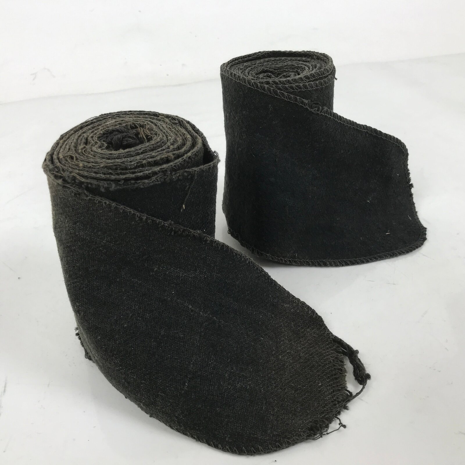 This is a pair of vintage Japanese WWII military uniform puttees, also called makikyahan. They are long stretches of fabric with ties on one end used to bind the legs from the ankle to the knee to protect the legs. These were a very common accessory for military uniforms worldwide during the First and Second World Wars.