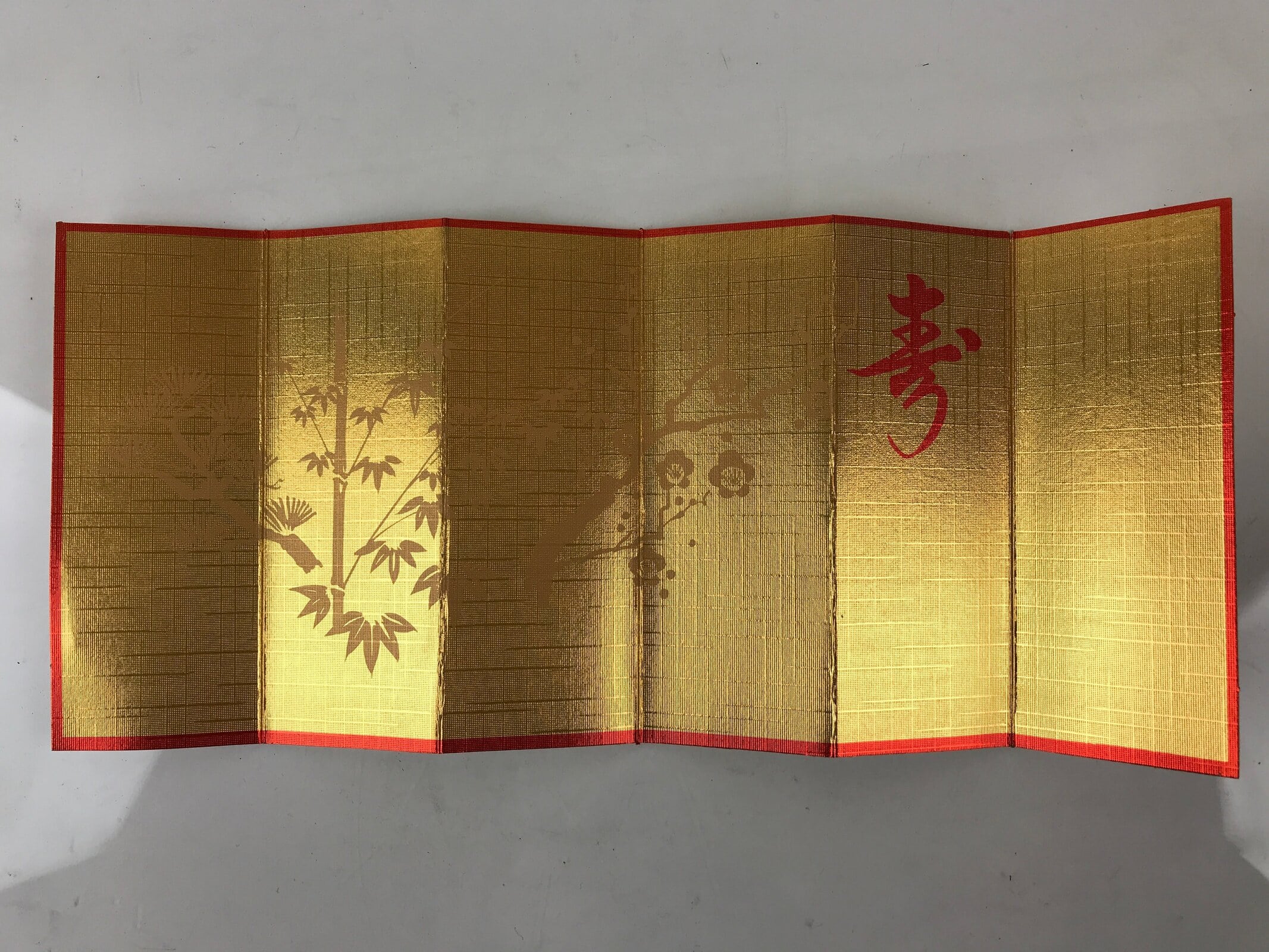 - Gold paper Byoubu screen, wood plate, plastic black stand