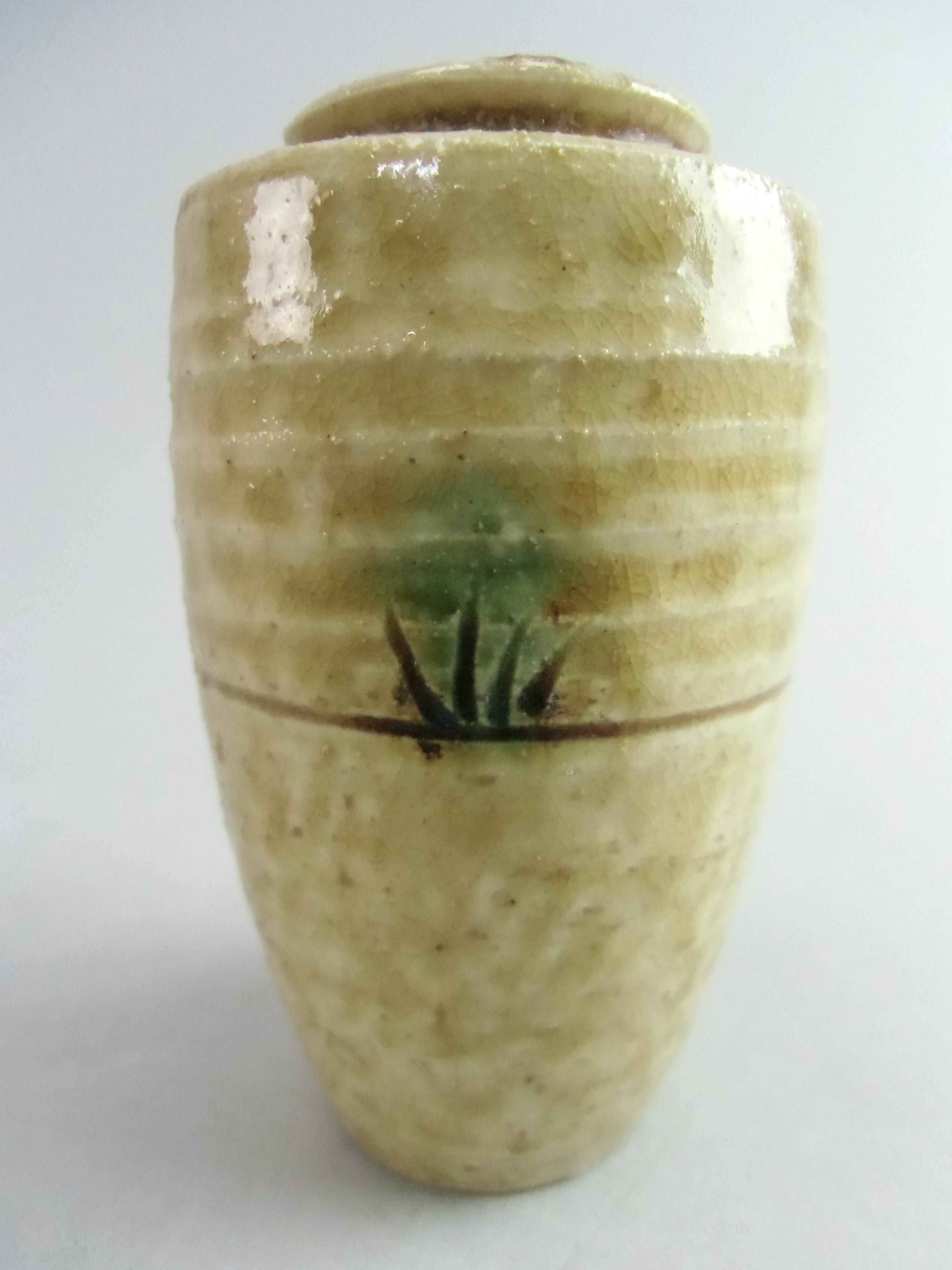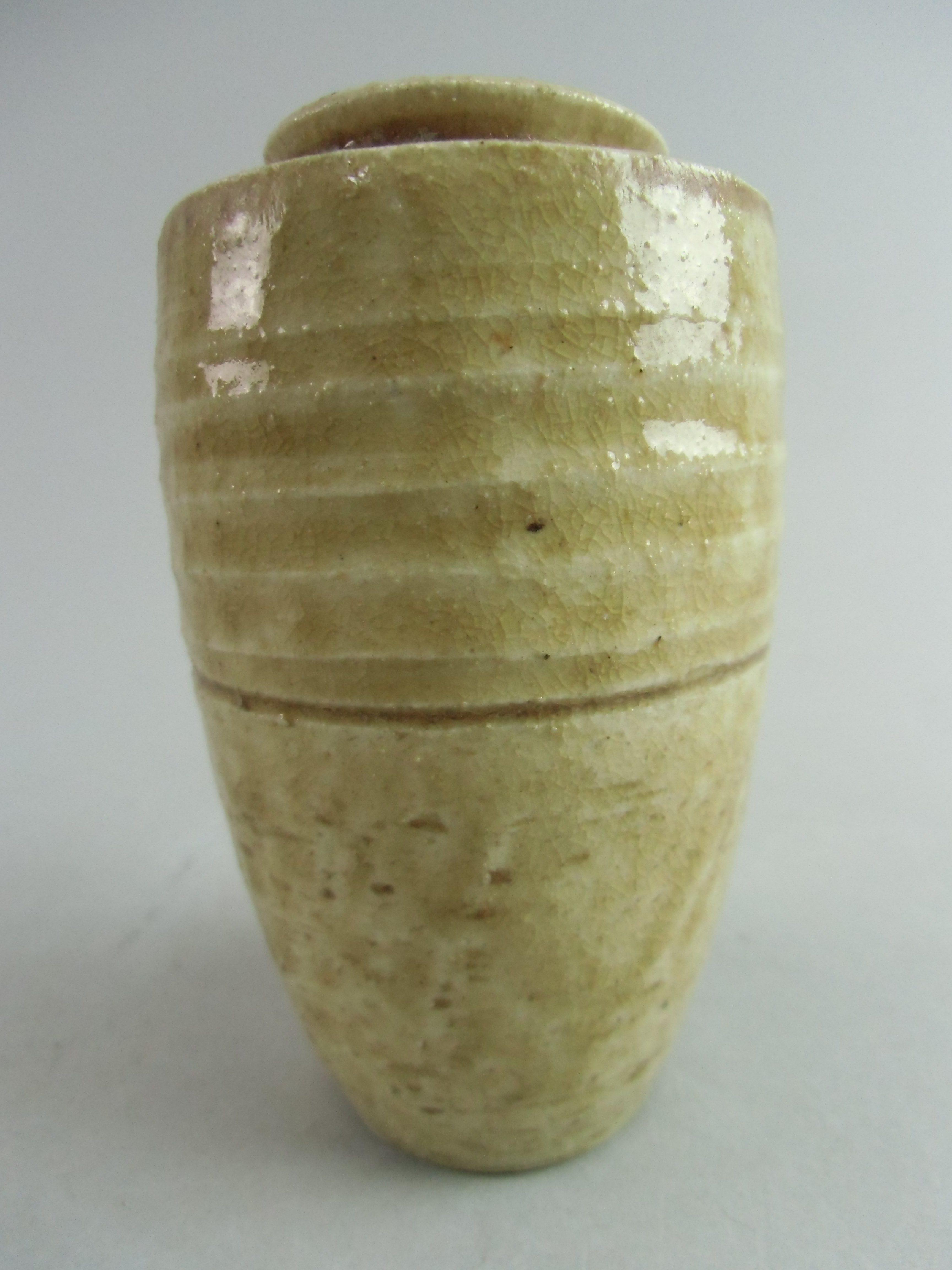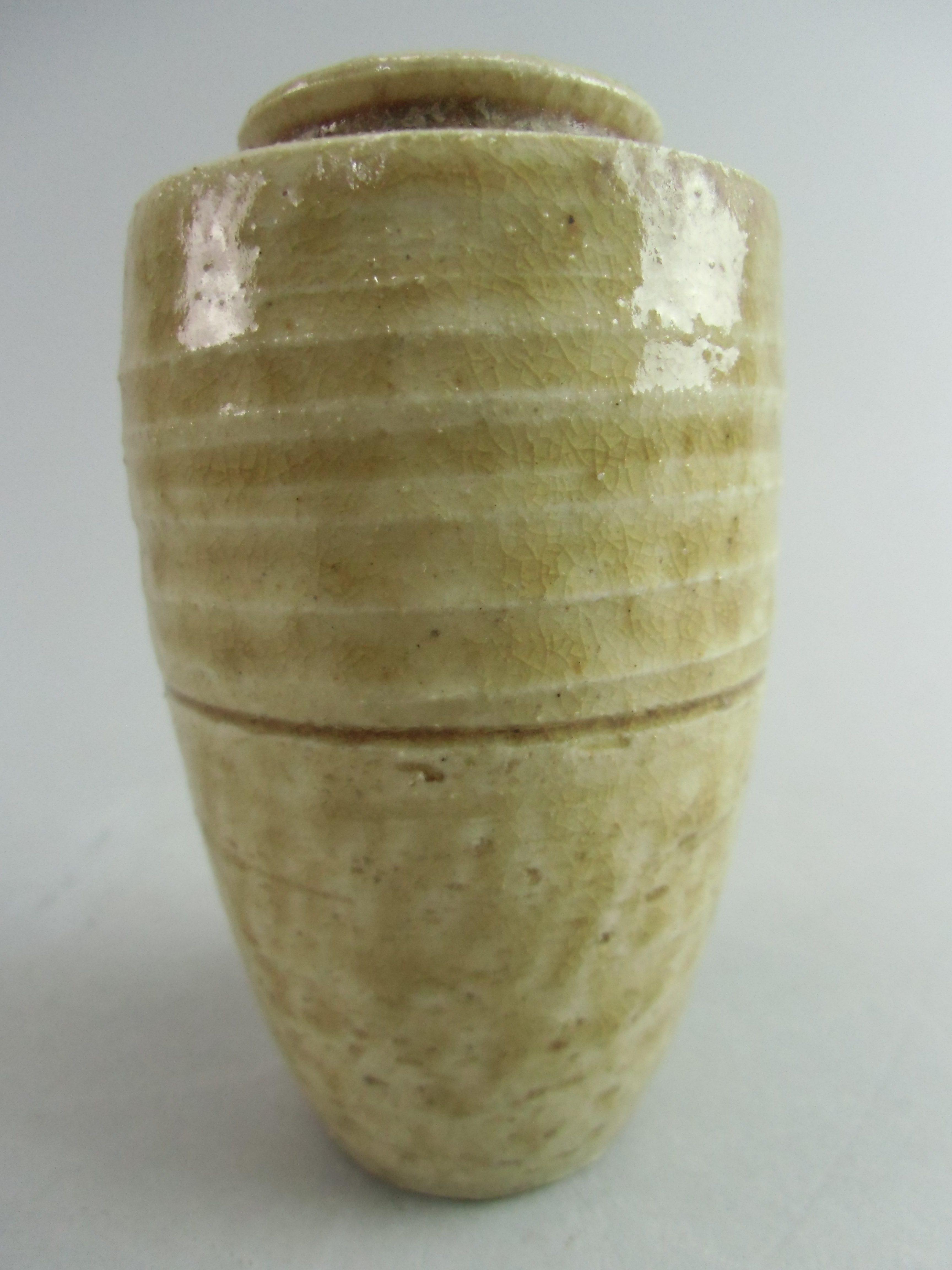 Japanese Ki Seto ware Mini Flower Vase Vtg Pottery Beige Green Ikebana MFV41