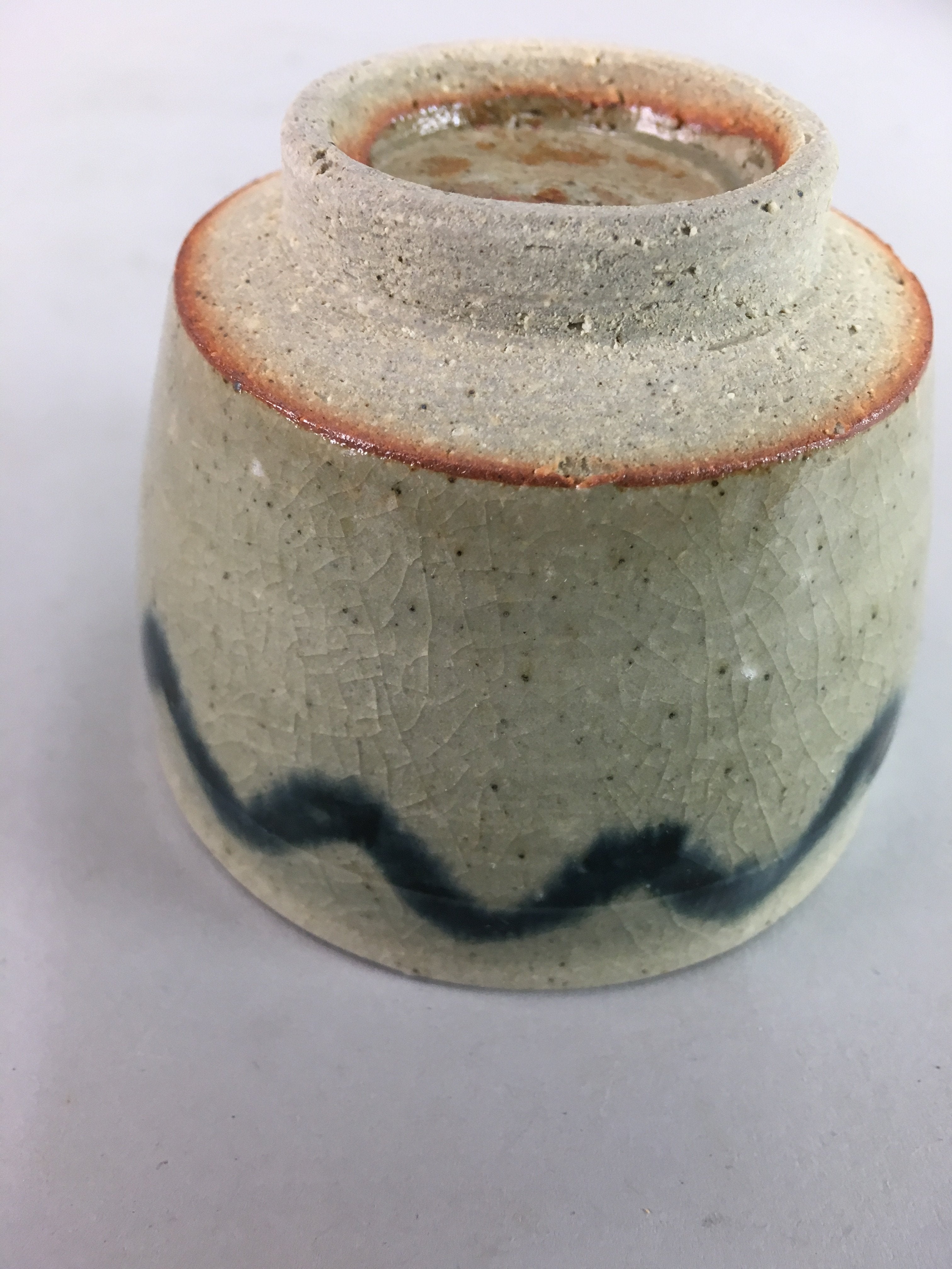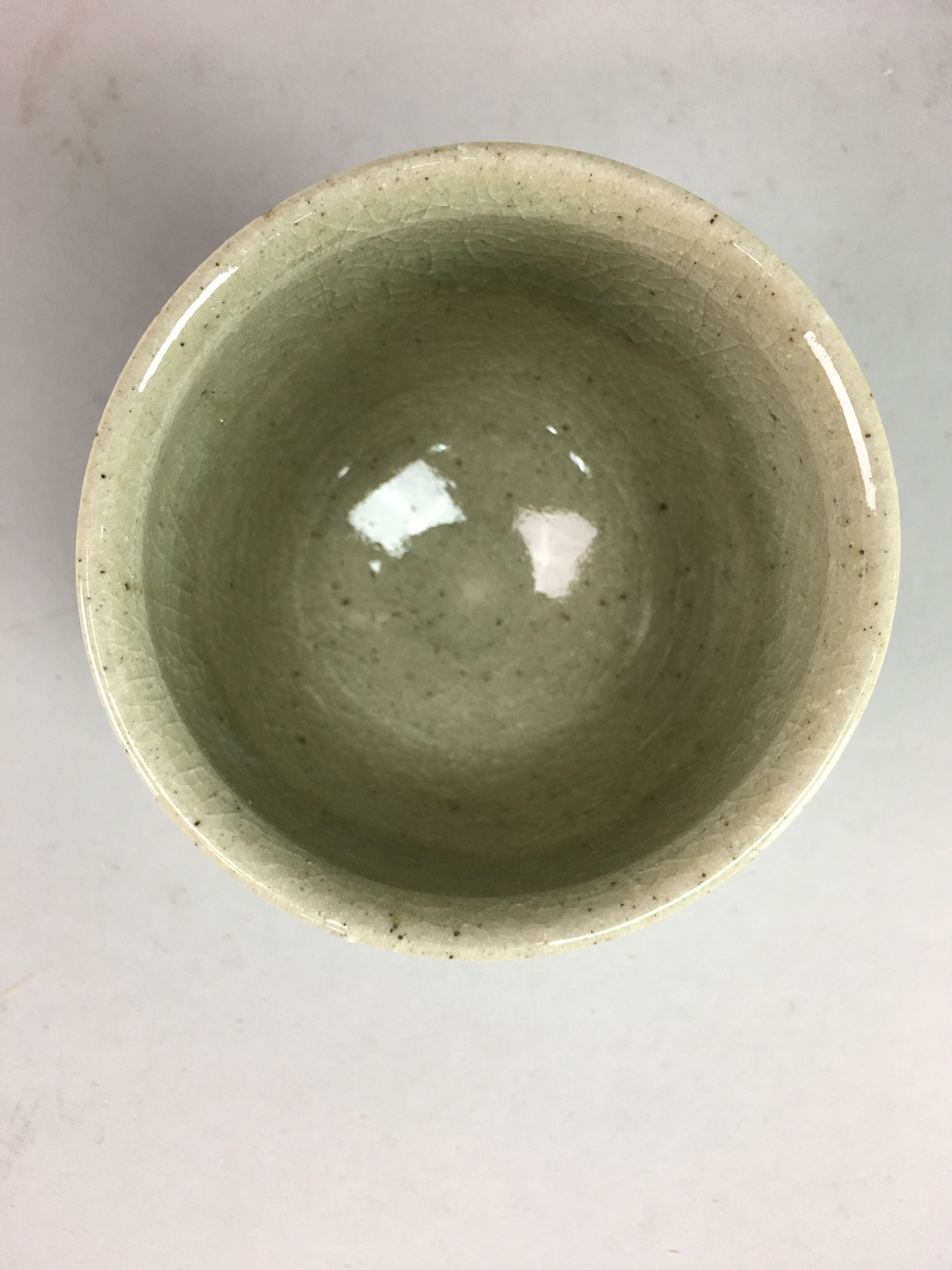 Japanese Seto Ware Ceramic Teacup Yunomi Vtg Pottery Crackle glaze PT55
