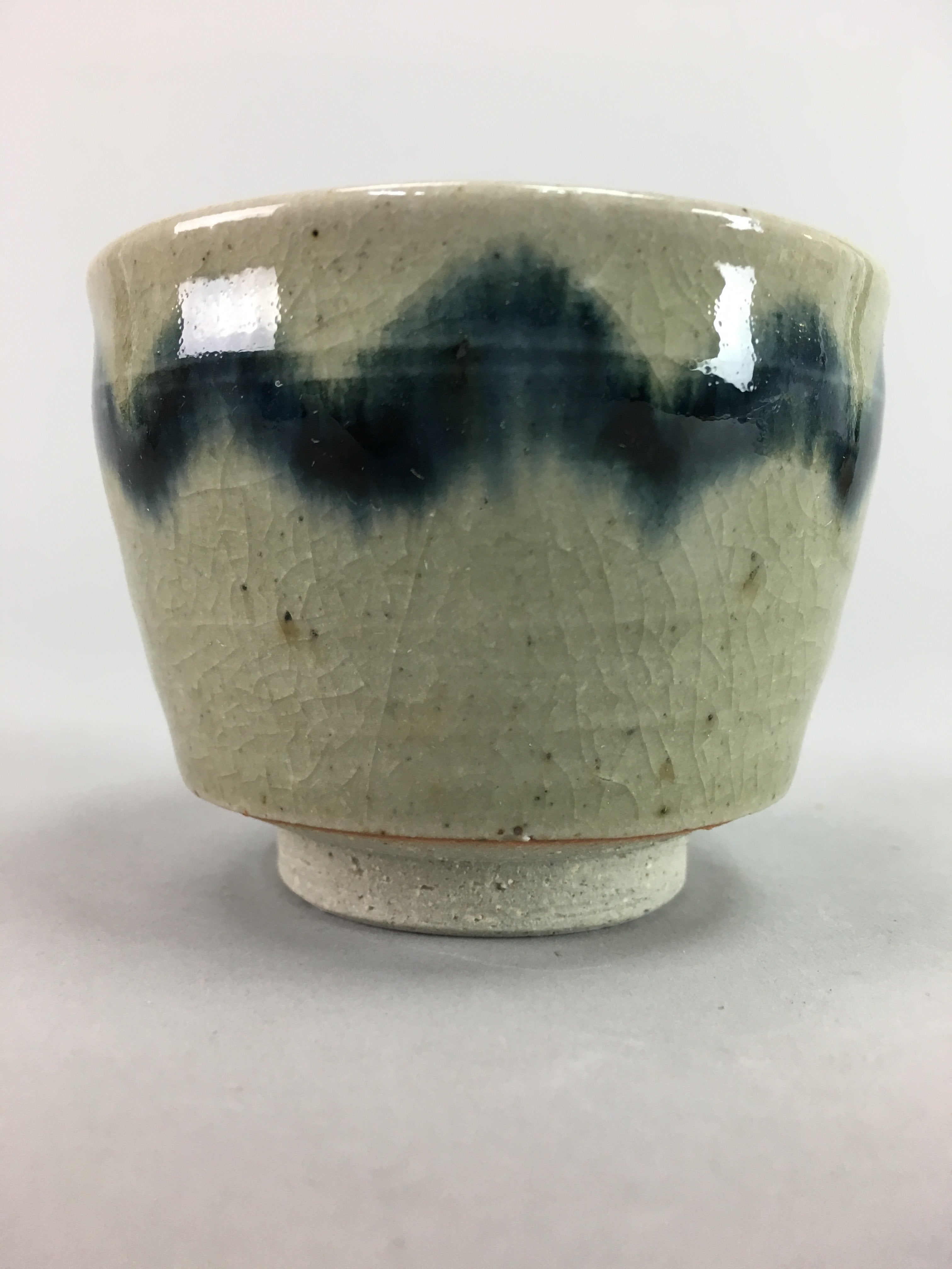Japanese Seto Ware Ceramic Teacup Yunomi Vtg Pottery Crackle glaze PT63