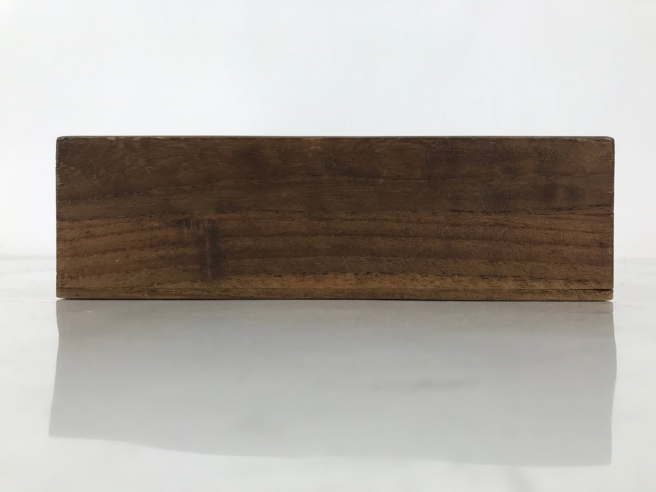 This lidded box is made of wood and has a natural wood color. The sliding lid has inscriptions on the front and the back. It is excellent for general storage, DIY, or decoration.