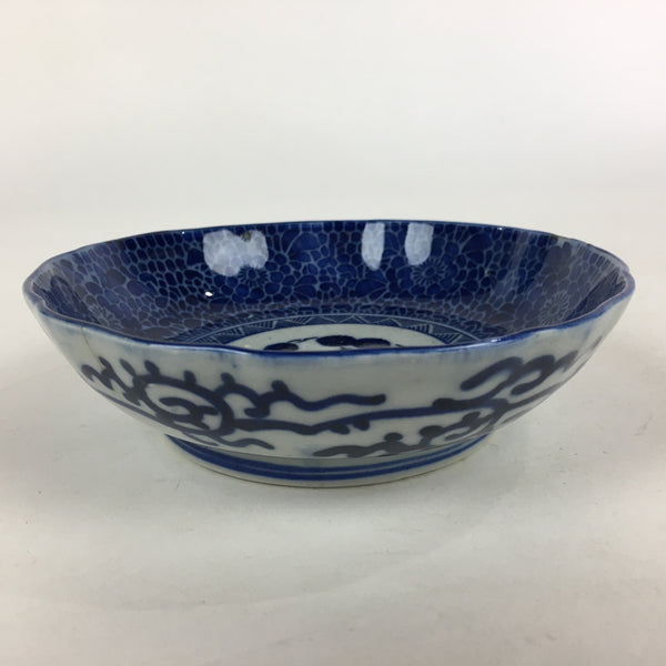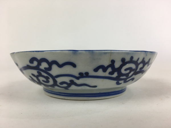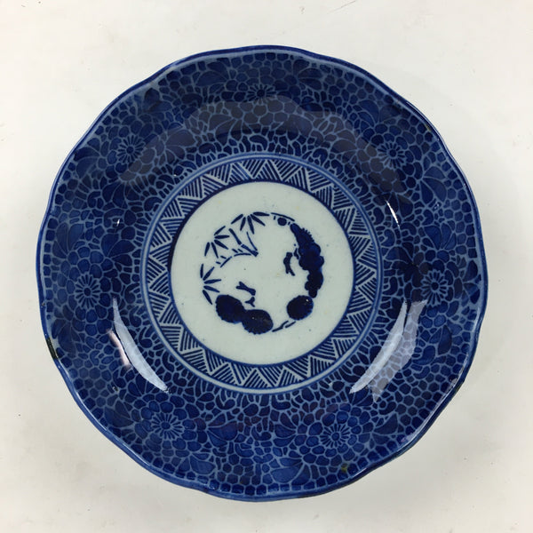 Antique C1900 Japanese Porcelain Deep Plate Sometsuke Blue Flower PY12