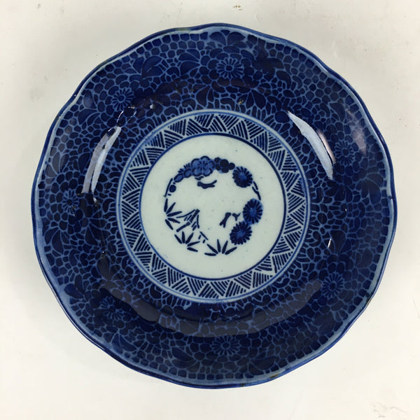 Antique C1900 Japanese Porcelain Deep Plate Sometsuke Blue Flower PY19
