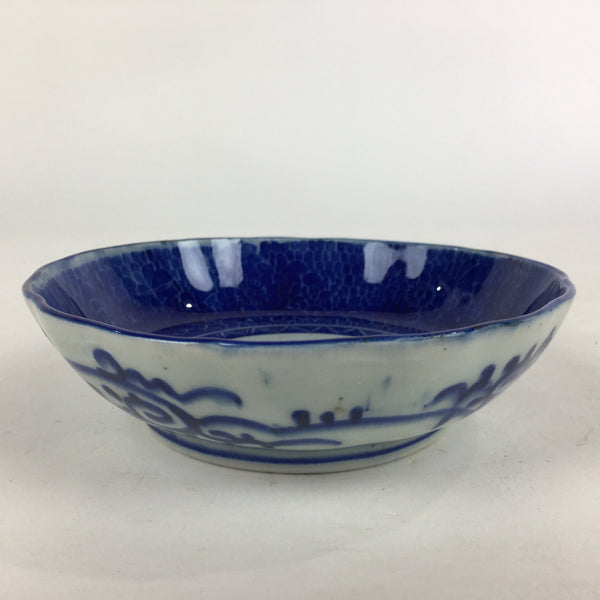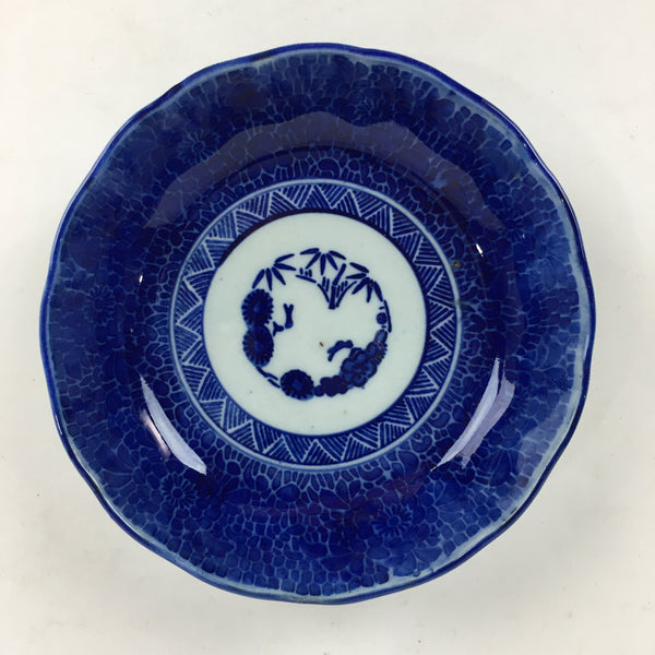 Antique C1900 Japanese Porcelain Deep Plate Sometsuke Blue Flower PY7
