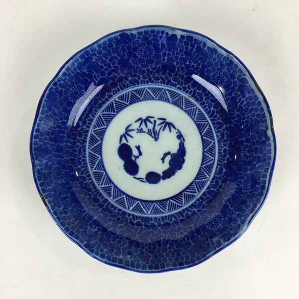 Antique C1900 Japanese Porcelain Deep Plate Sometsuke Blue Flower PY5