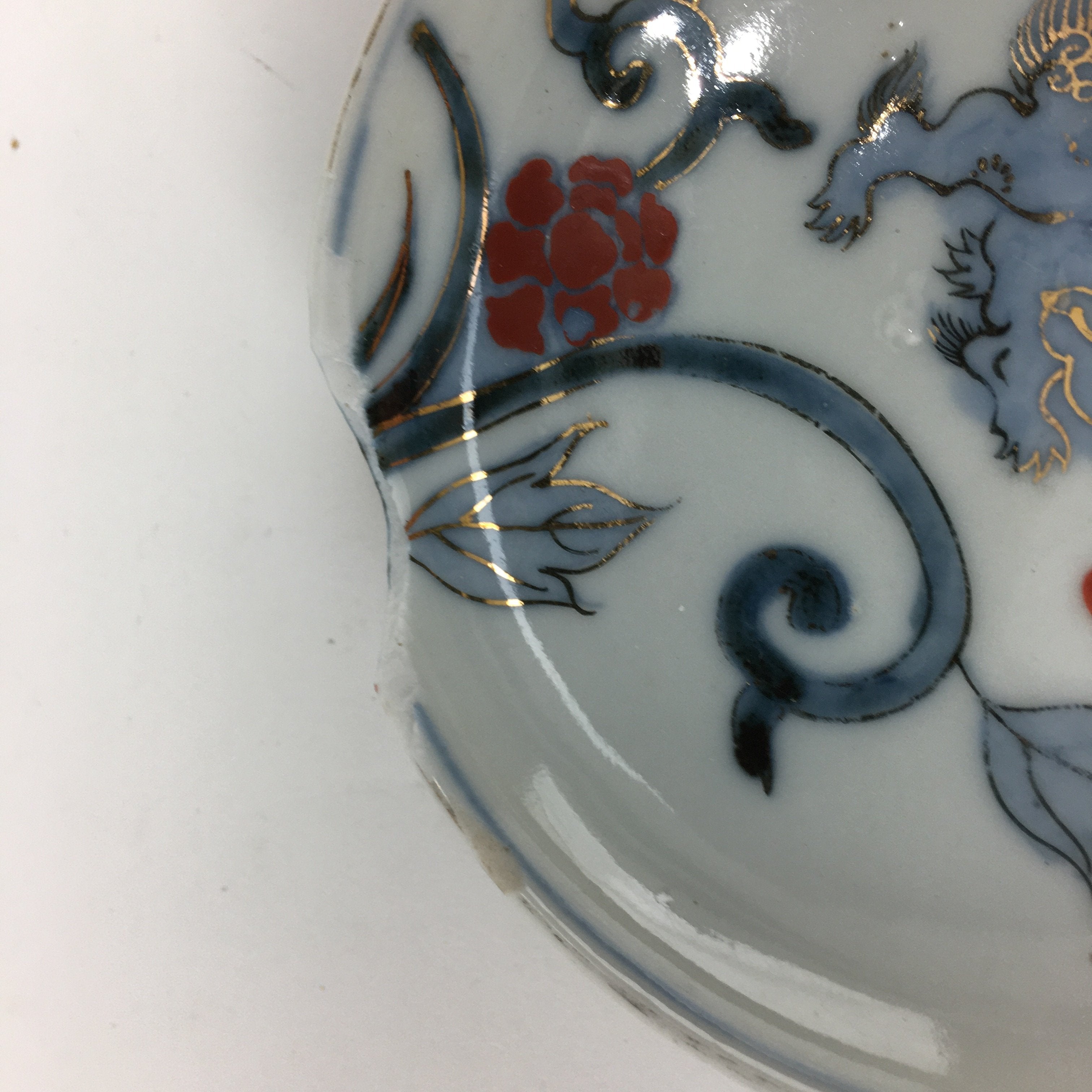 Antique C1900 Japanese Porcelain Small Plate Shi-Shi Lion Dog Kozara PP513