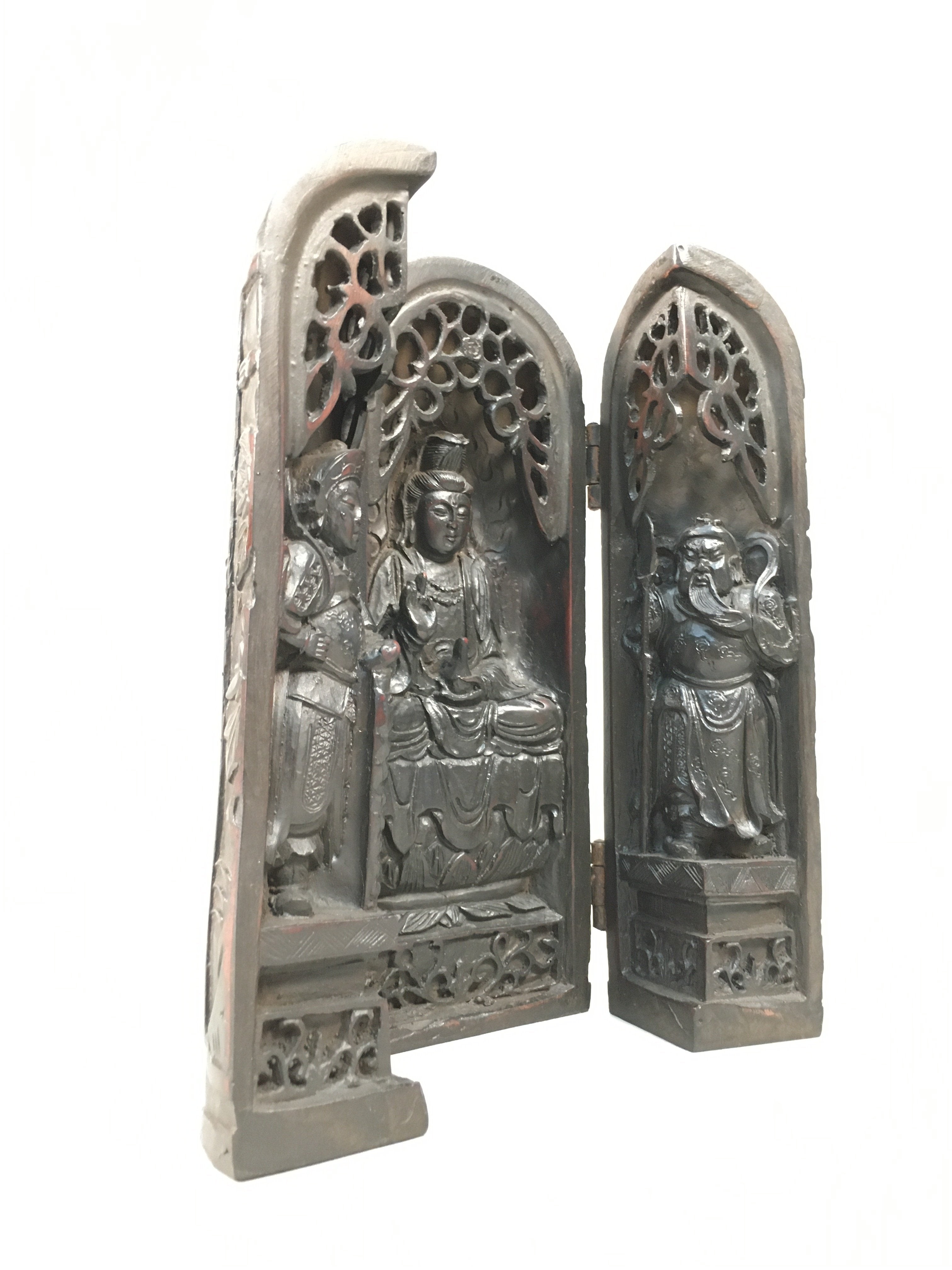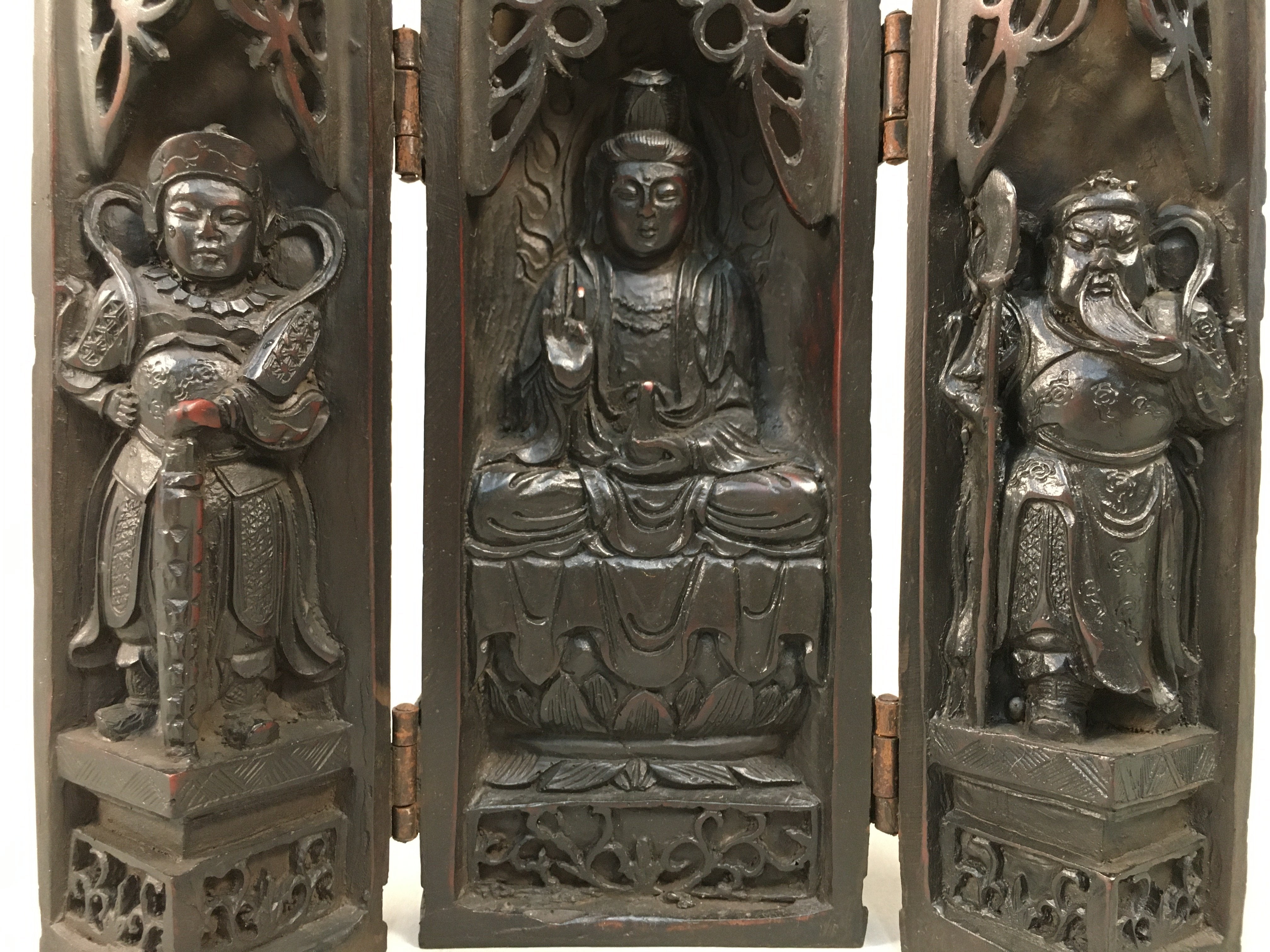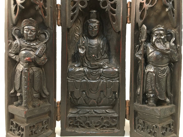 Antique Wooden Chinese Buddhist Miniature Shrine Vtg Butsugan BD610