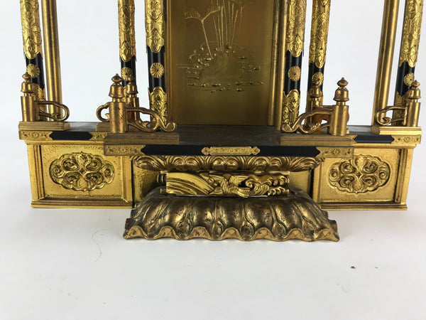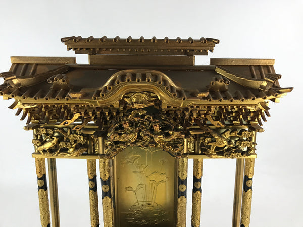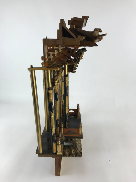 This is the inside part of a Japanese vintage wooden Buddhist altar cabinet. In Japan, the Buddhist altar is a place to enshrine the principal image that is the center of faith, and is a sacred place to hold memorial services for ancestors as a "small temple in the home".
