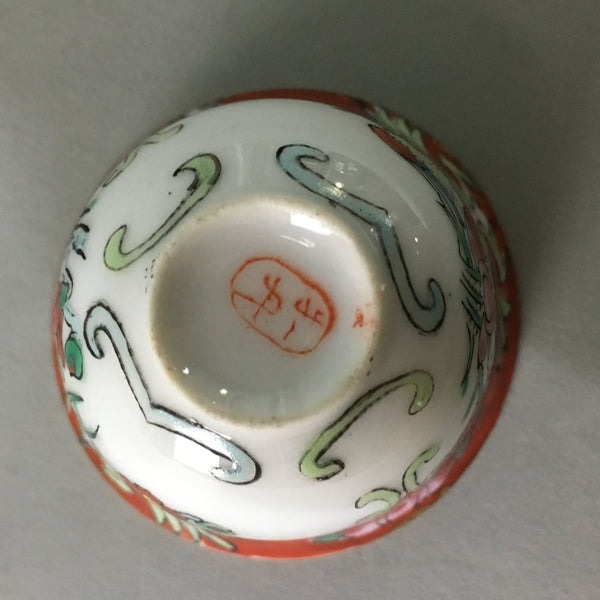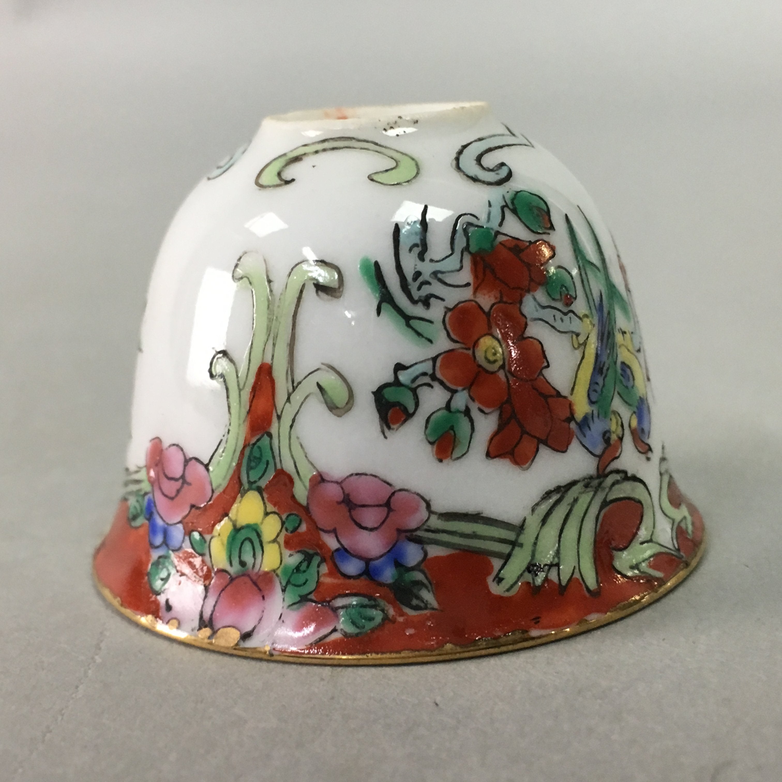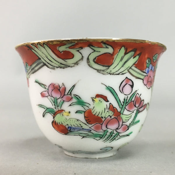 Antique Japanese Eggshell Porcelain Sake Cup Guinomi Sakazuki Bird Flower GU629