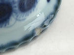 This is an antique Koimari ware porcelain small bowl (Kobachi) made in Japan. It is flower arabesque patterns designed with flowers and leaves painted in blue sometsuke and the rim is a wavy edge all around. This pottery is from around the Meiji period.