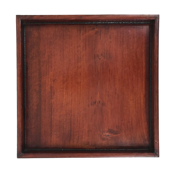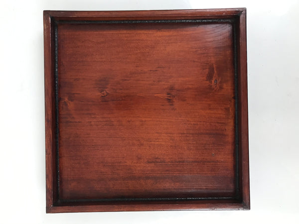 This is an antique Japanese lacquered wooden table or Ozen. This low square table has four walnut legs and is called Kurumi-zen.  This item can be used as a small table or a serving tray. A signature is on the back.