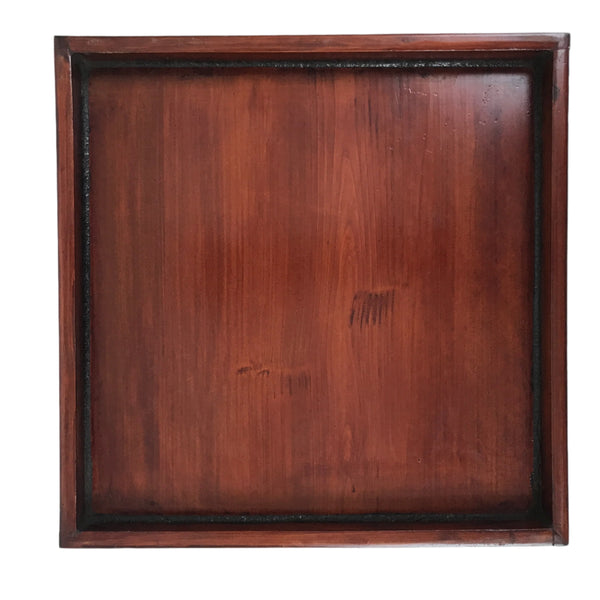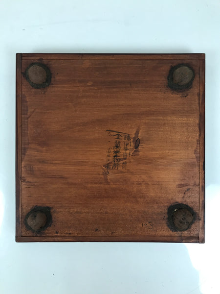 This is an antique Japanese lacquered wooden table or Ozen. This low square table has four walnut legs and is called Kurumi-zen.  This item can be used as a small table or a serving tray. A signature is on the back.