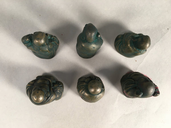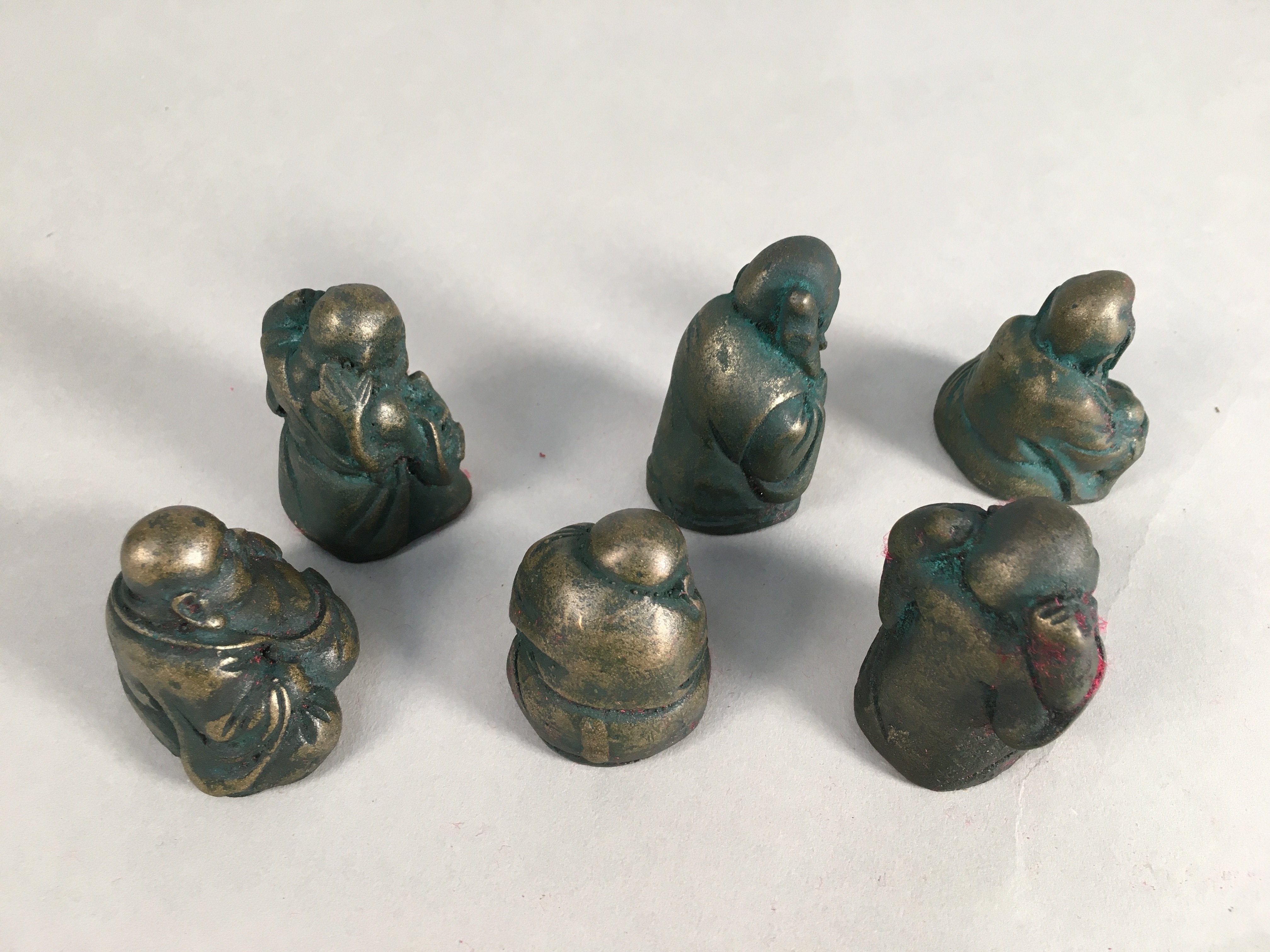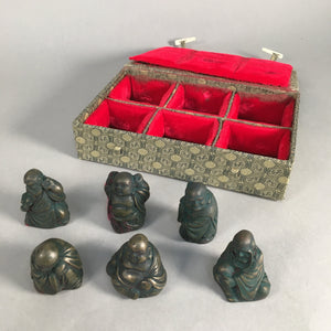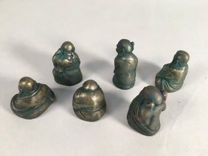 Chinese Iron Figurine 6pc Set Vtg Buddhist Monk Metal Okimono Statue BD589