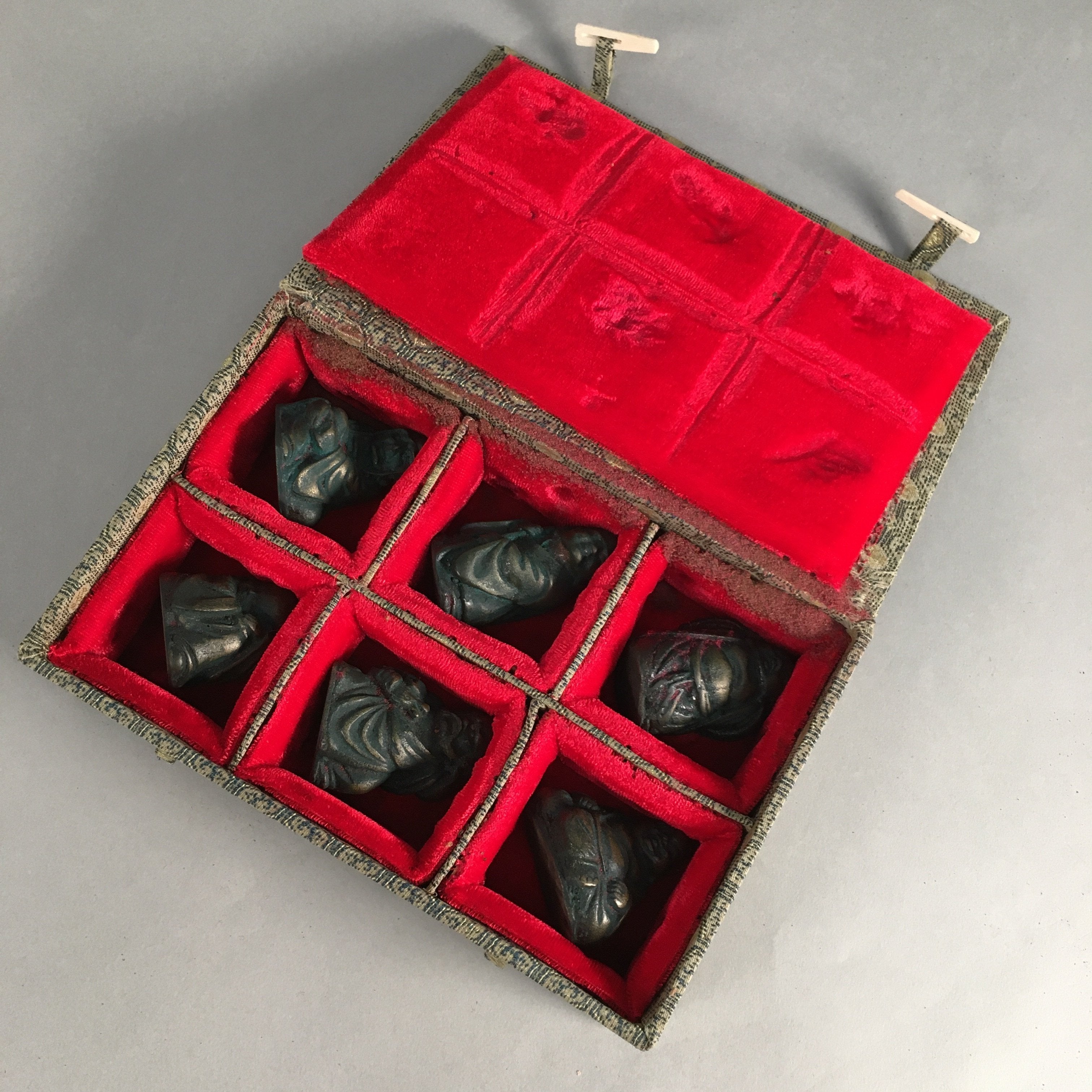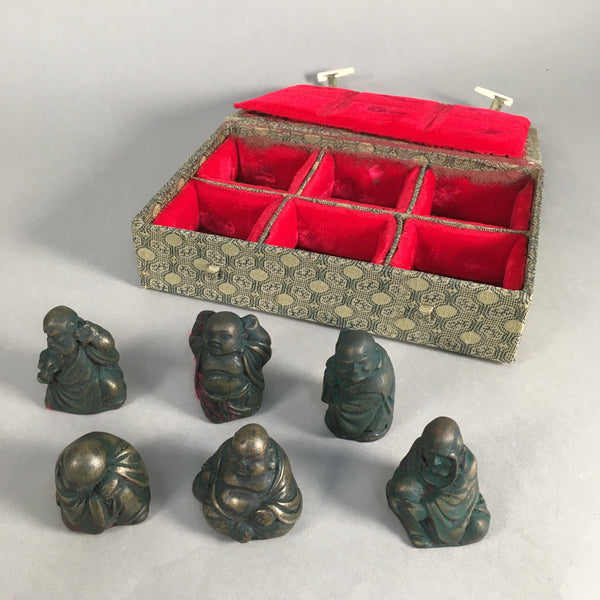 Vtg Chinese Iron Figurine 6pc Set in Matching Case