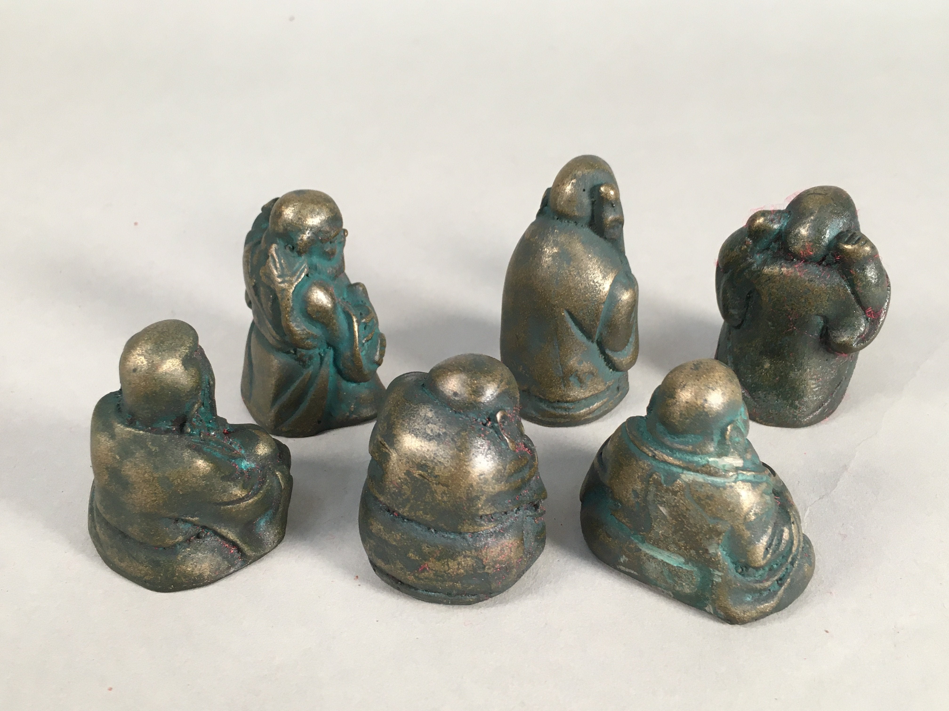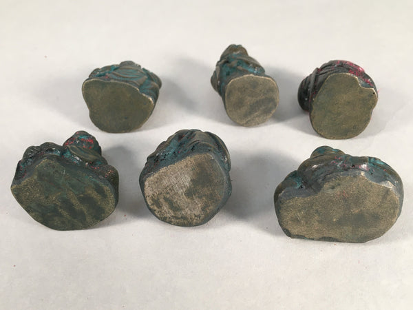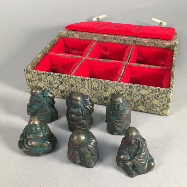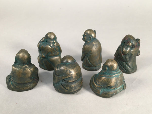 Chinese Iron Figurine 6pc Set Vtg Buddhist Monk Metal Okimono Statue BD593