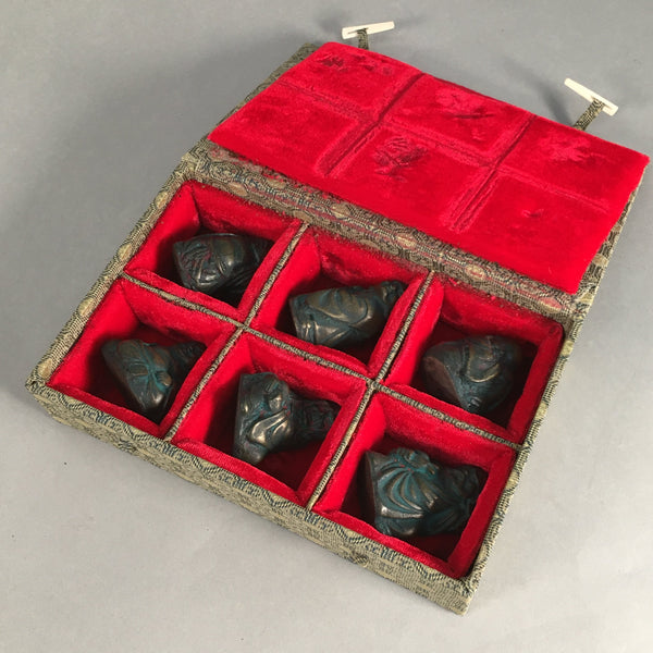 Vtg Chinese Iron Figurine 6pc Set in Matching Case