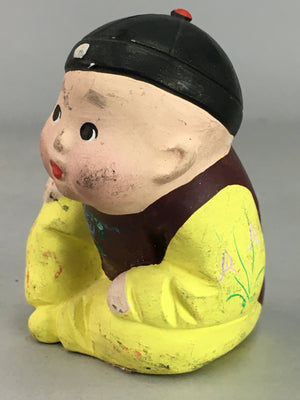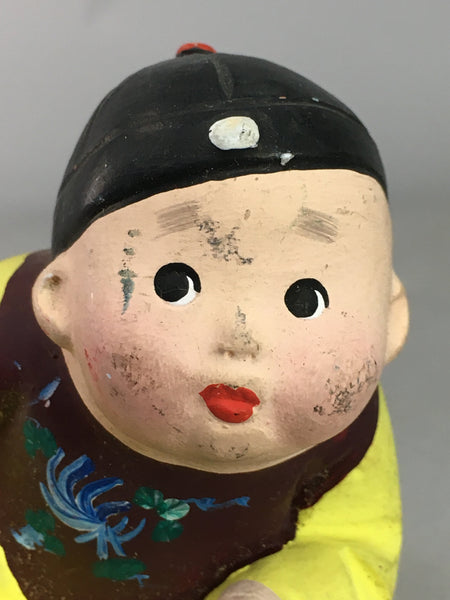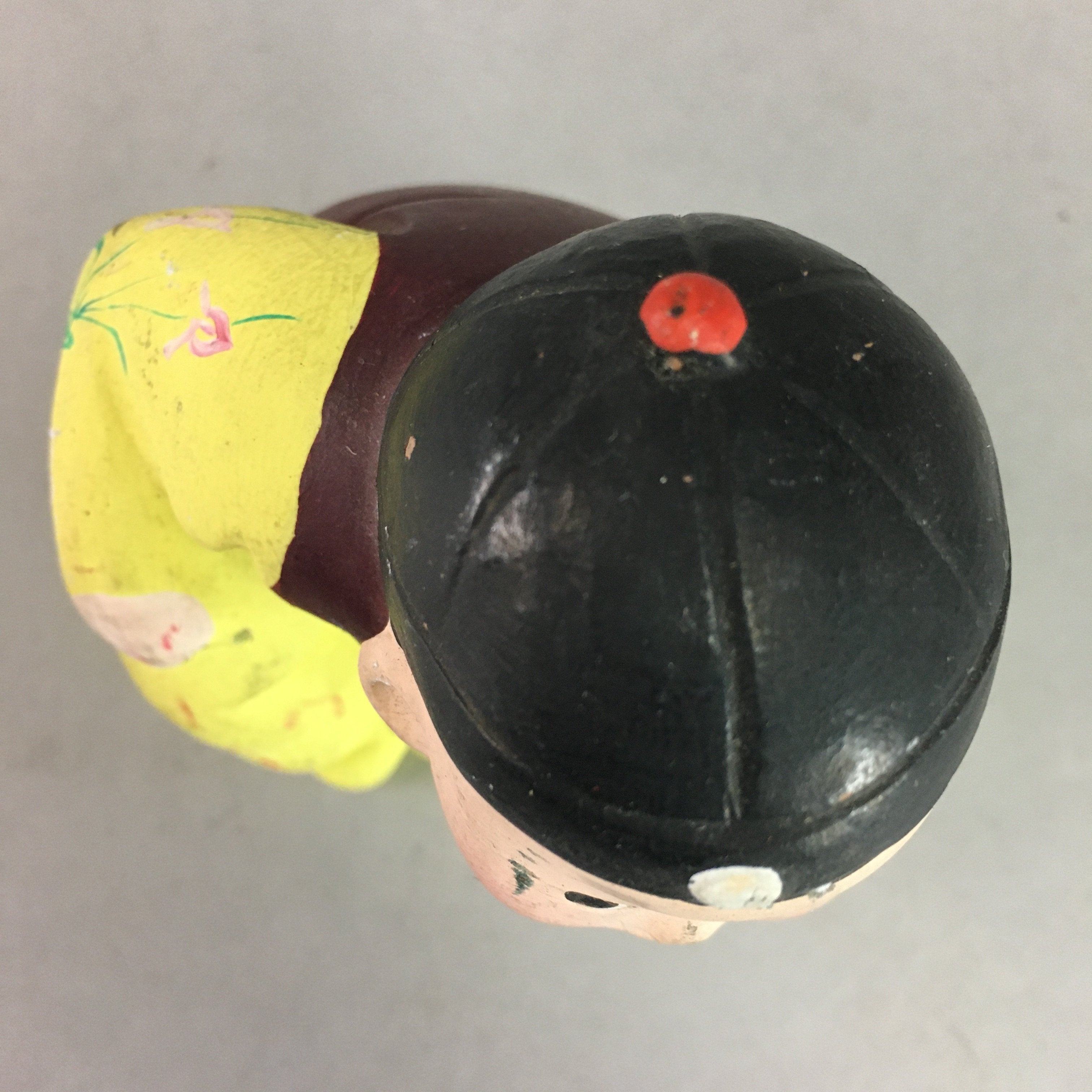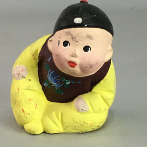 Chinese Kokeshi Doll Vtg Plaster Figurine Traditional Costume Yellow KF259