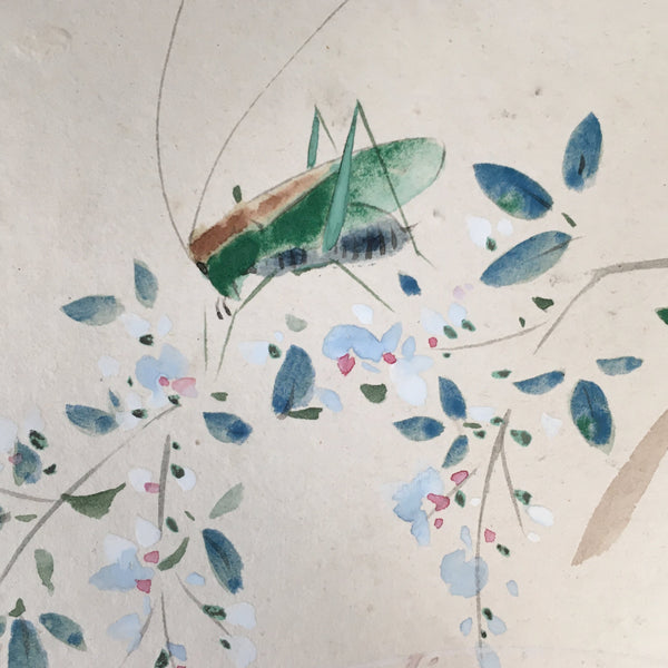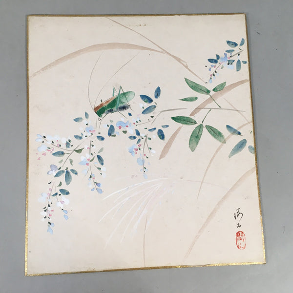Japanese Art Board Vtg Shikishi Paper Hand-painted Grass Hopper A306