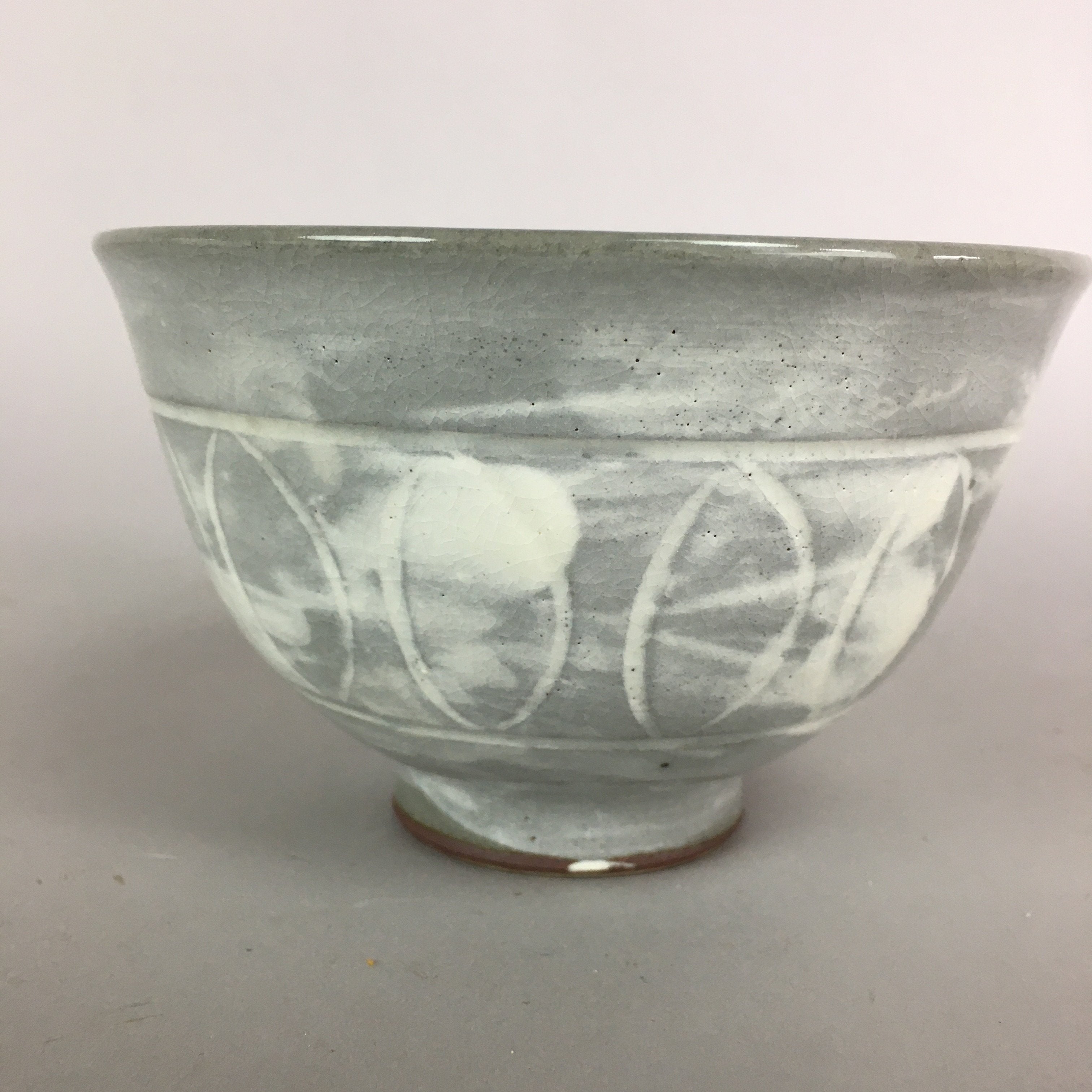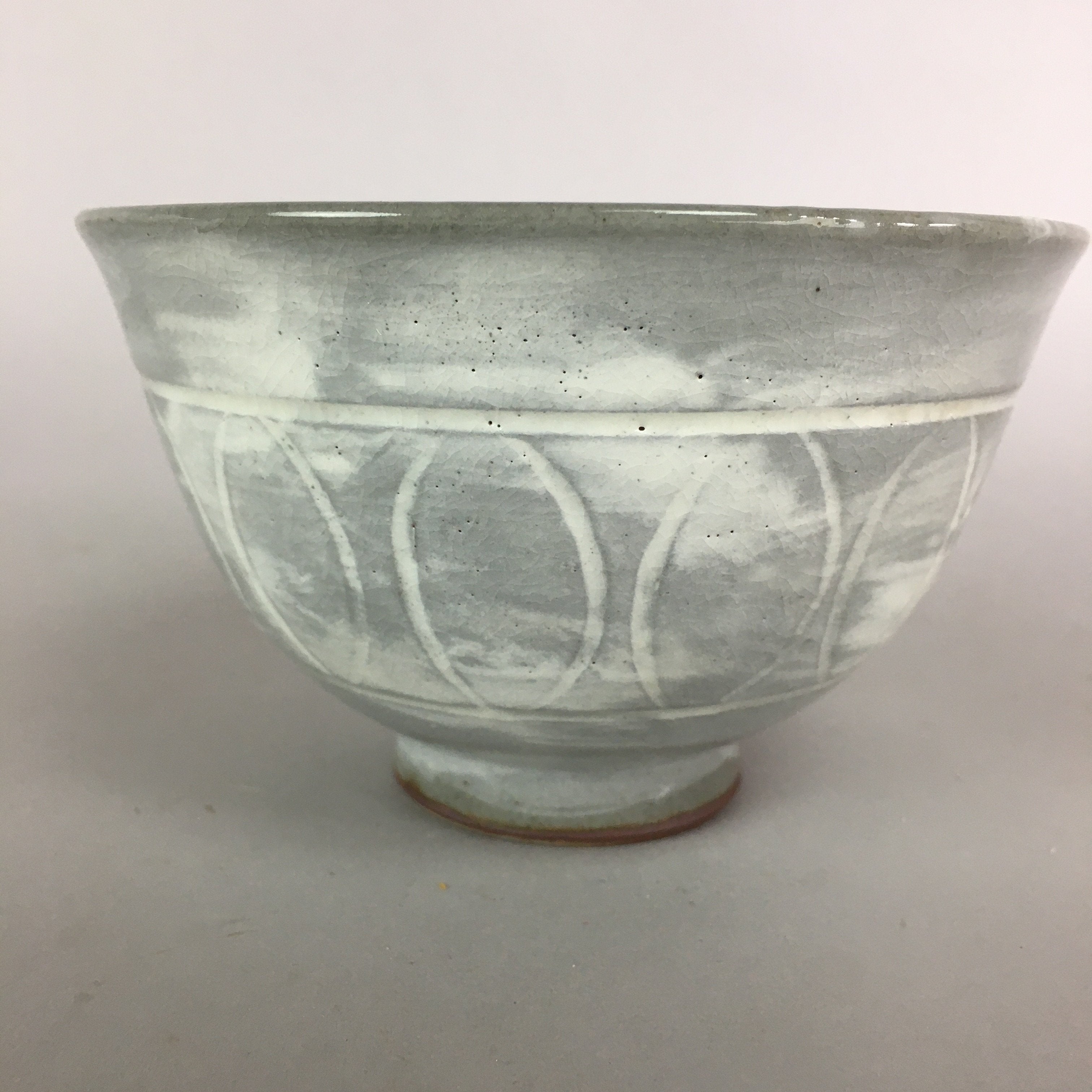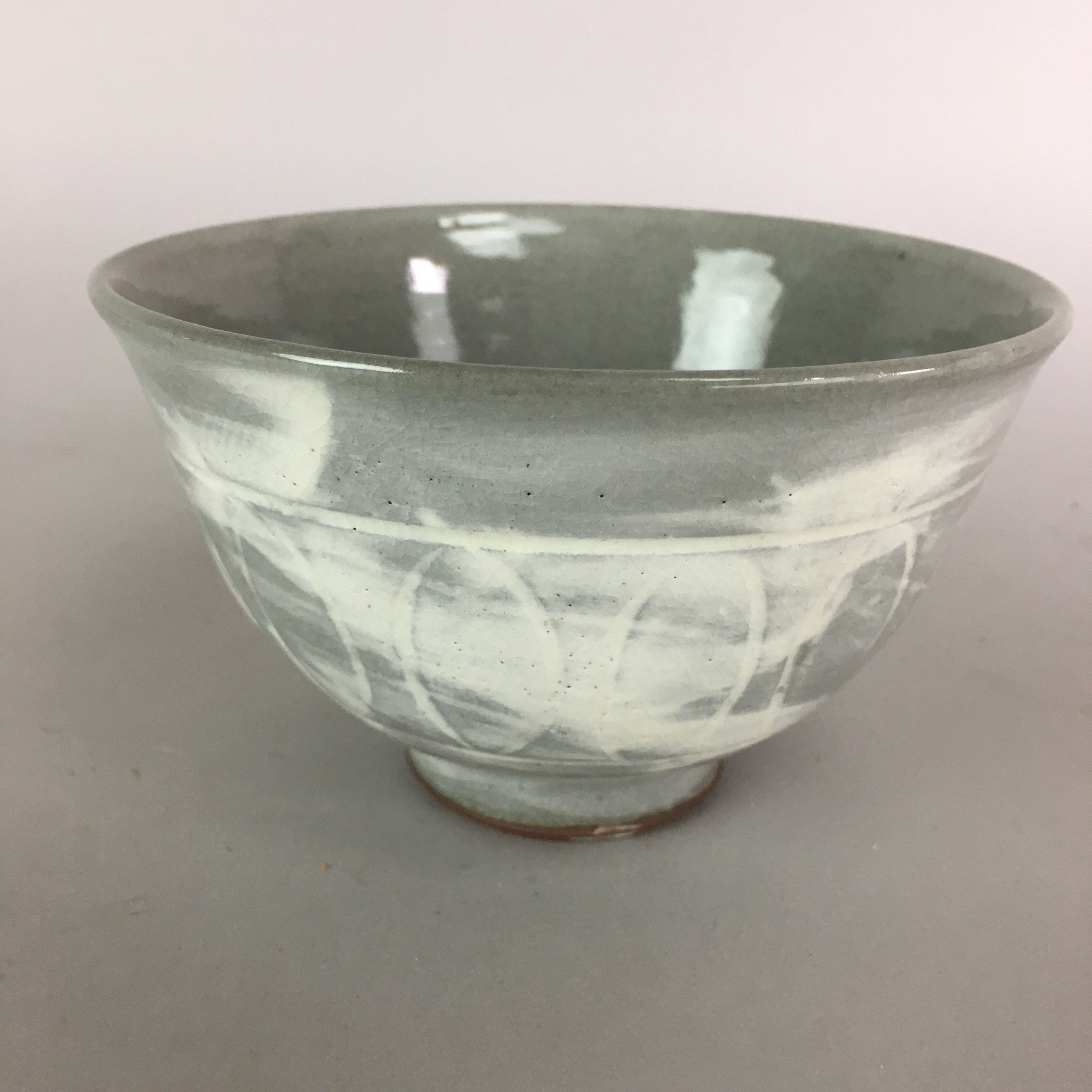 Japanese Ceramic Rice Bowl Vtg Chawan Pottery Gray White Yakimono Donburi PP491
