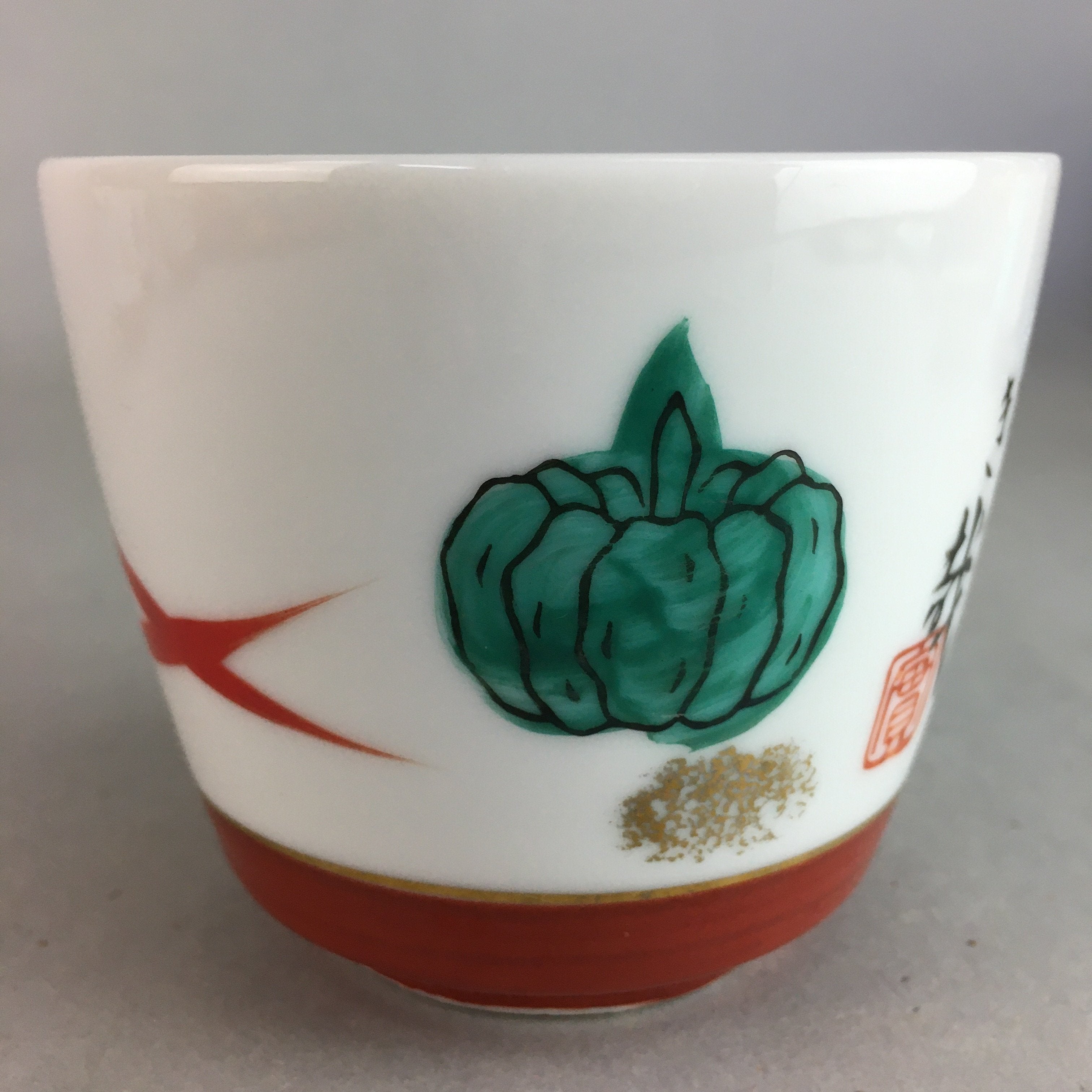 Japanese Porcelain Noodle Bowl Cup Vtg Soba Choko Word Kanji Vegetable PP288