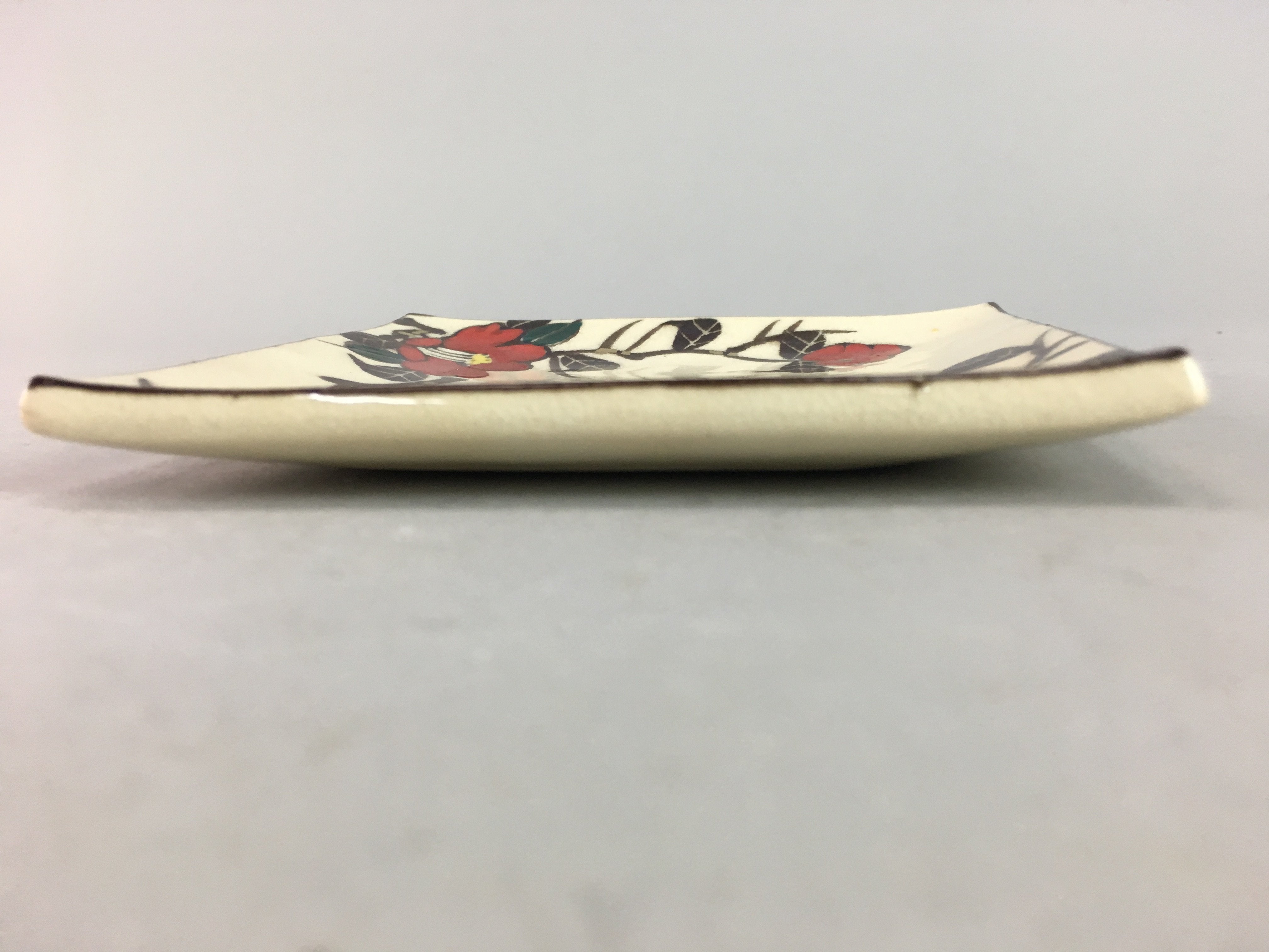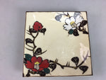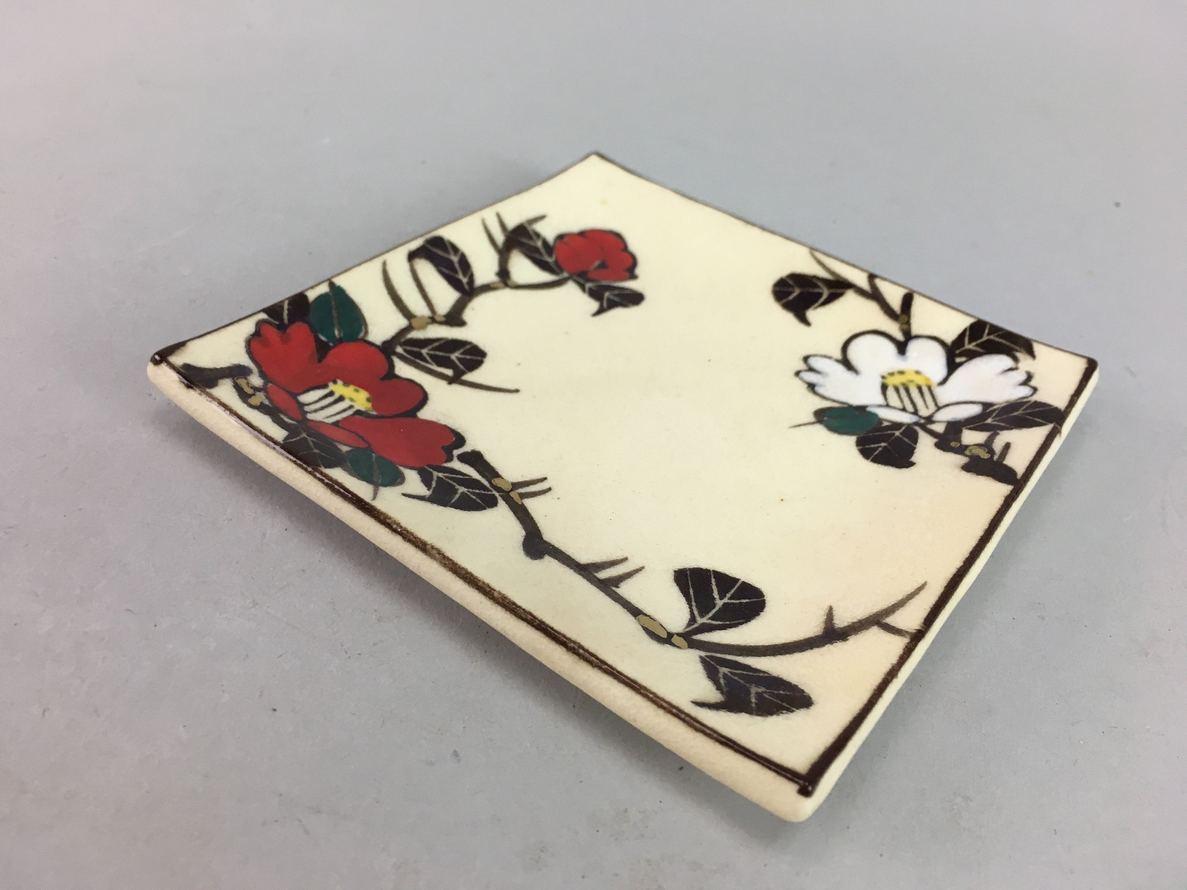 Vtg Japanese Plate Square Pottery Ceramic w/Painting of Camellia Flower