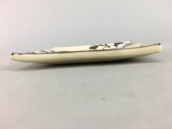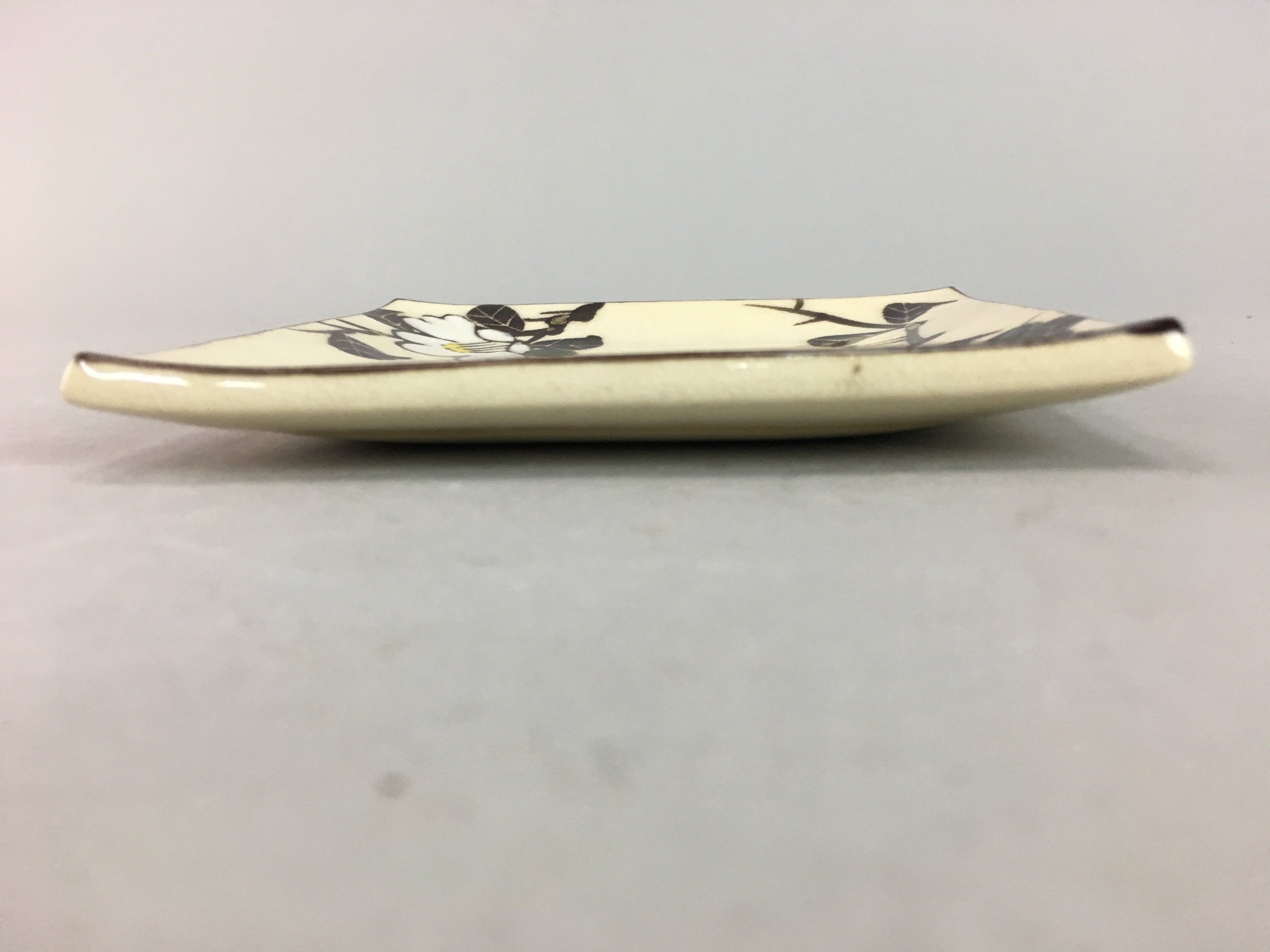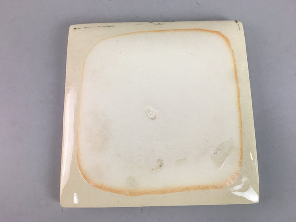 Japanese Ceramic Square Plate Vtg Pottery Floral Design Beige Sushi PT99