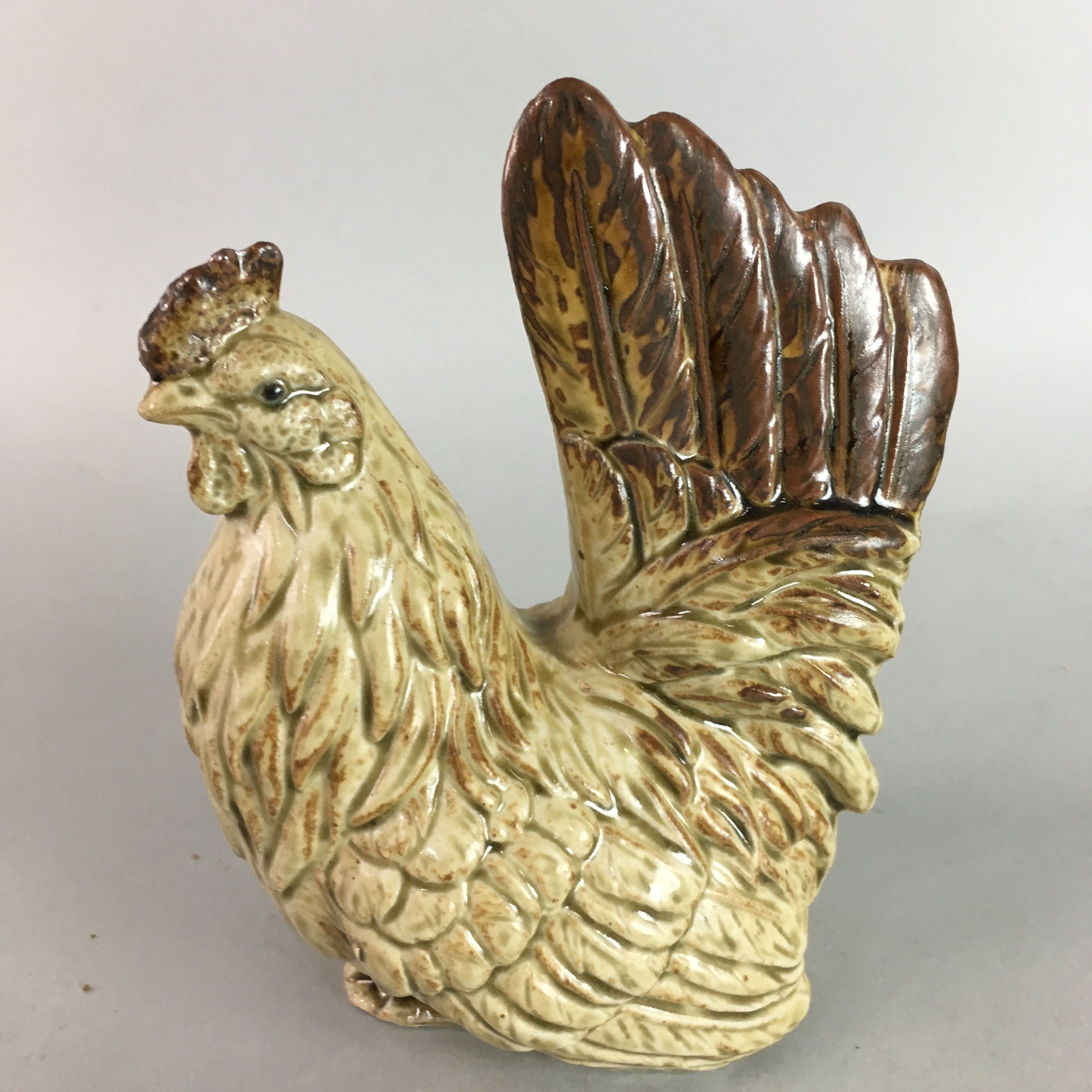 Japanese Ceramic Hen Statue Vtg Seto ware Pottery Bird SculptureOkimono BD470