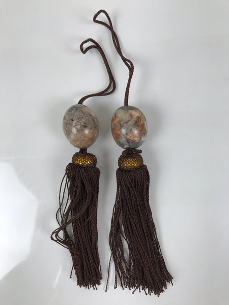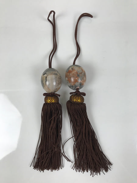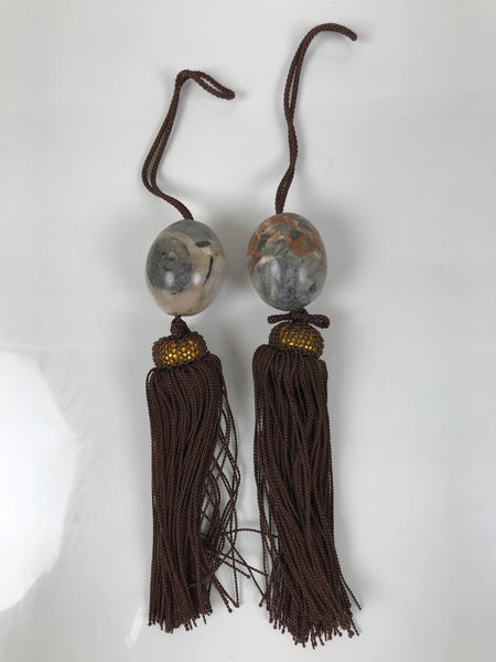 Japanese Agate Stone Hanging Scroll Weights Fuchin Kakejiku Brown Tassel FC365