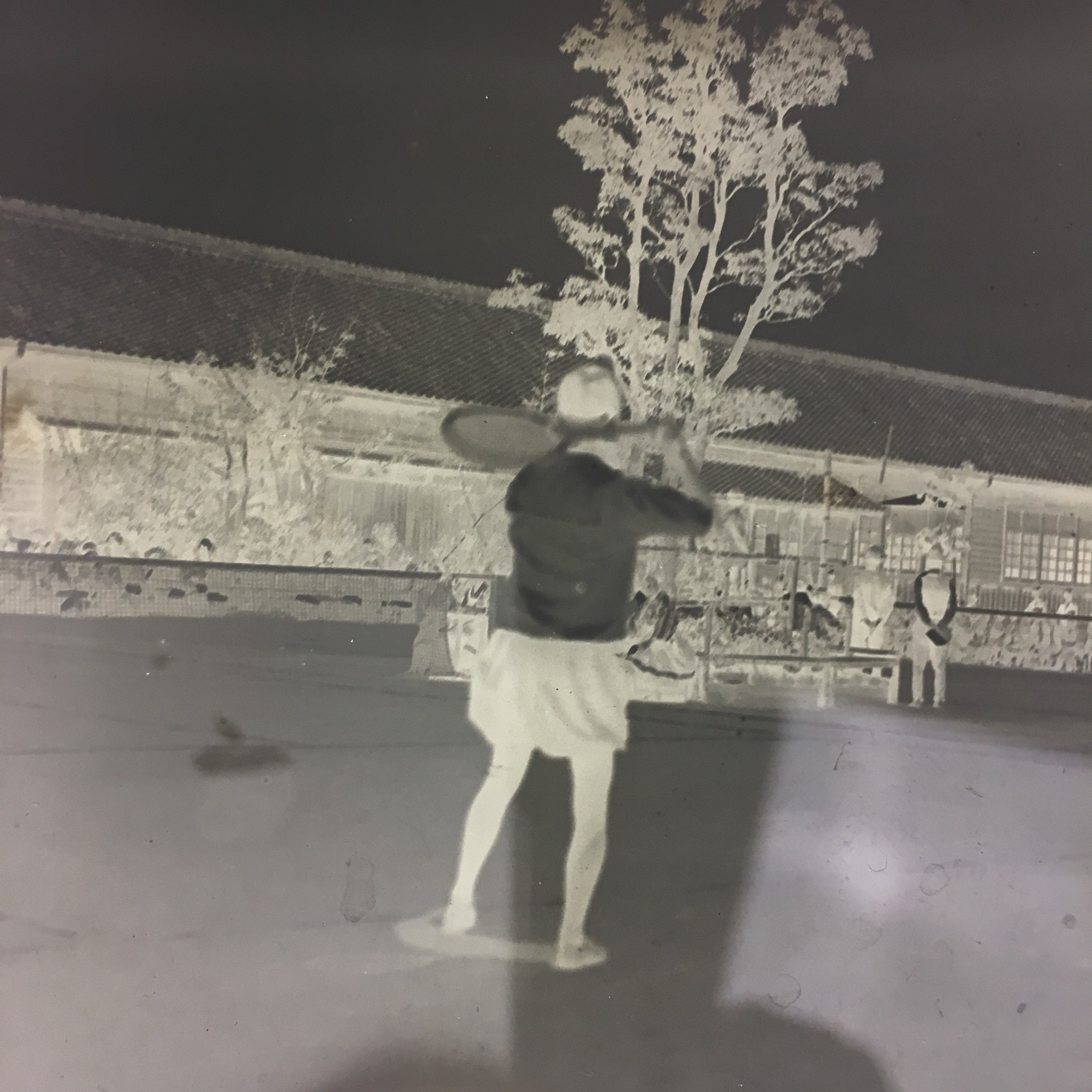 Japanese Antique Photo Glass Negative Plate Tennis Play Schoolyard C1900 GN436
