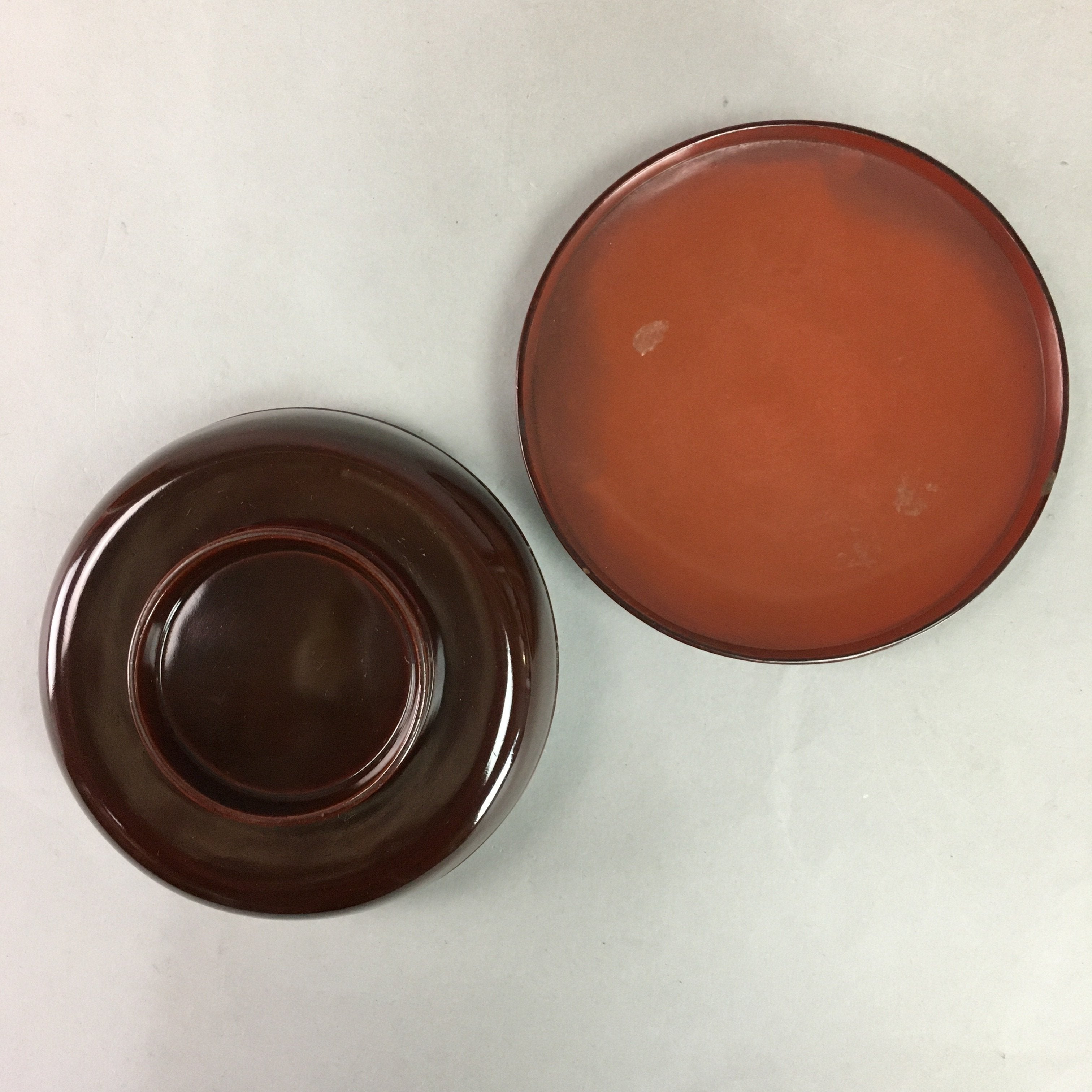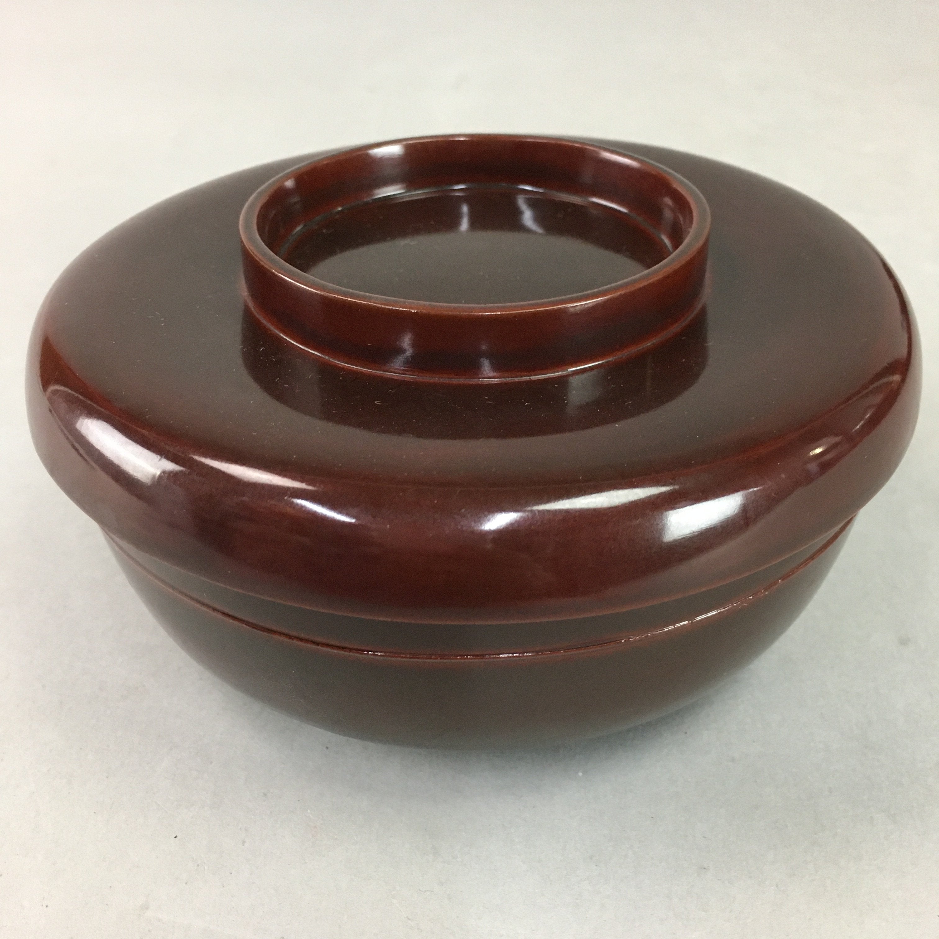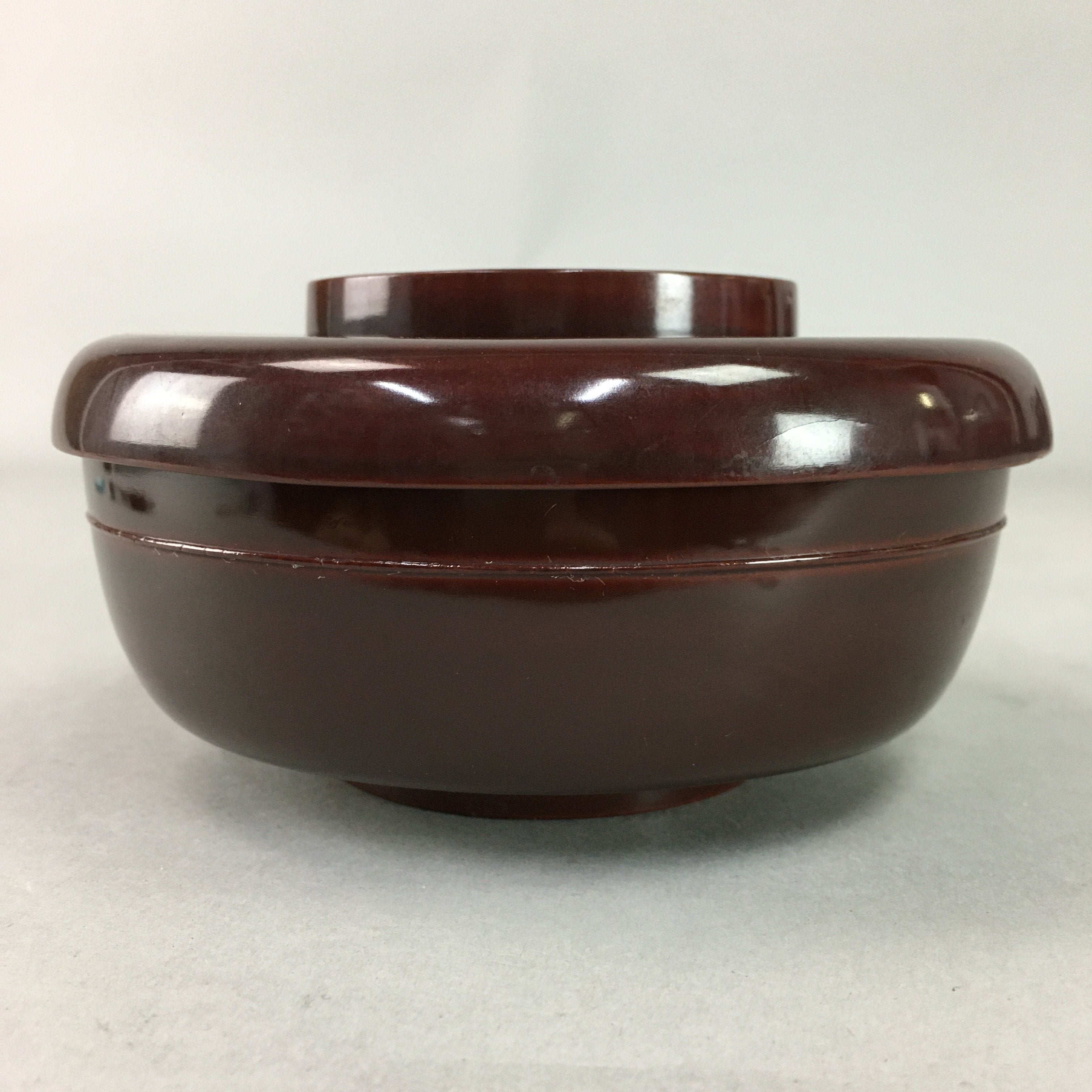 Japanese Antique Wooden Lacquer Lidded Bowl Brown Owan Soup Rice UR291