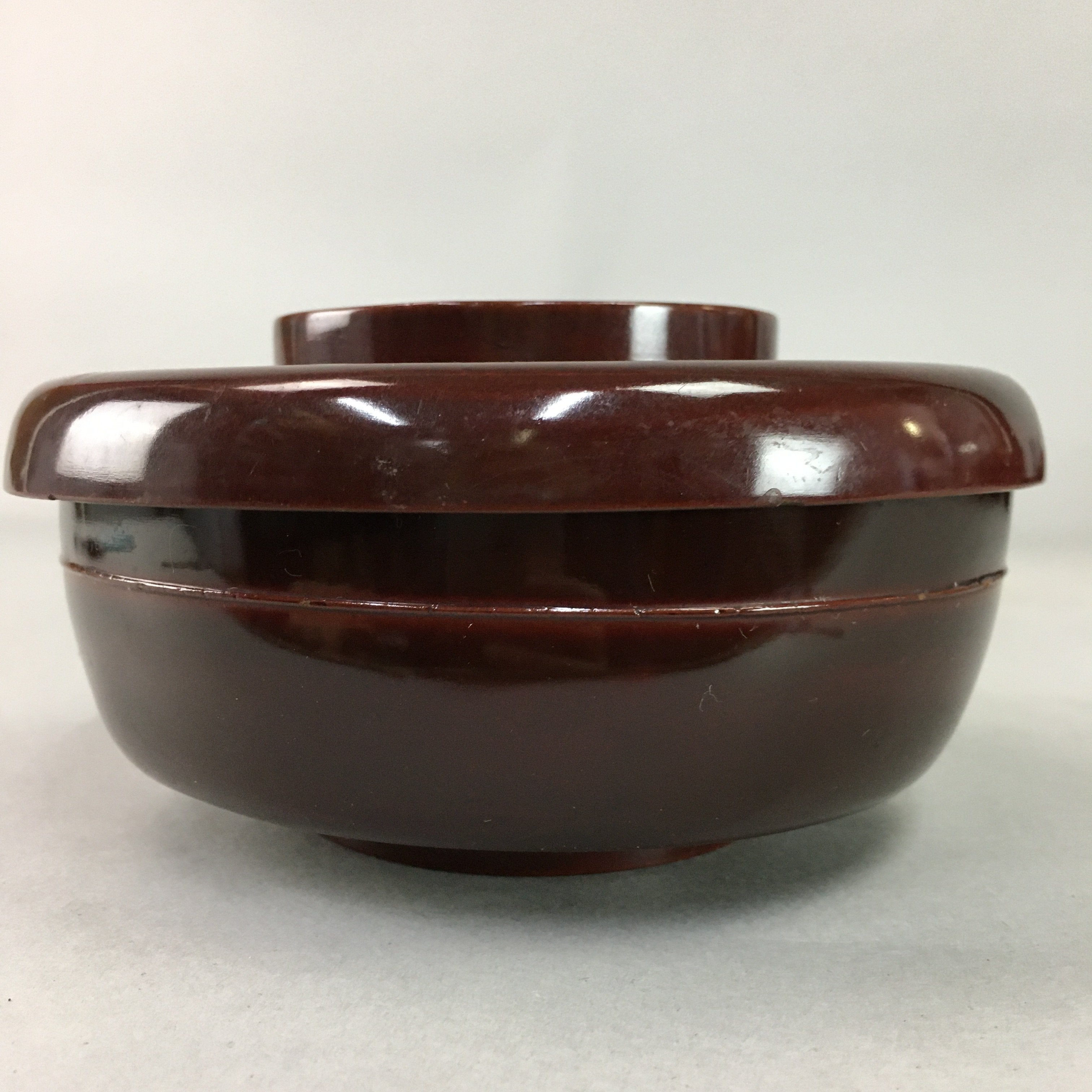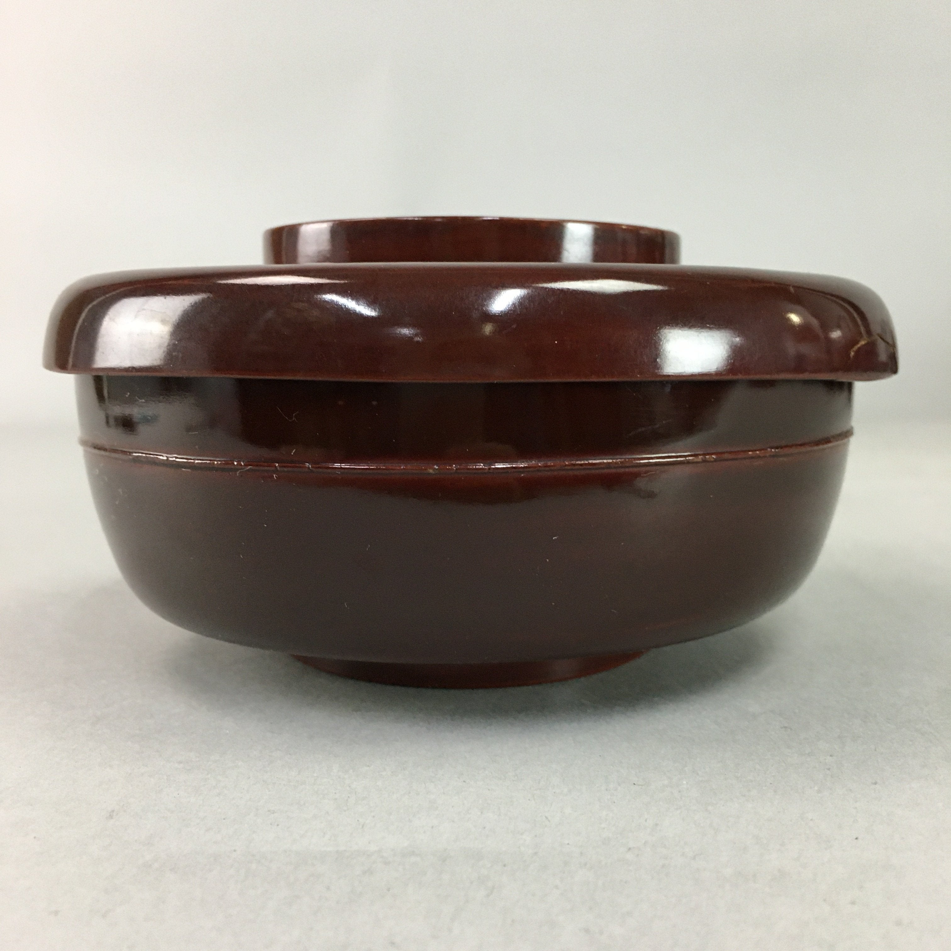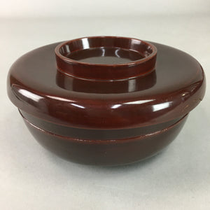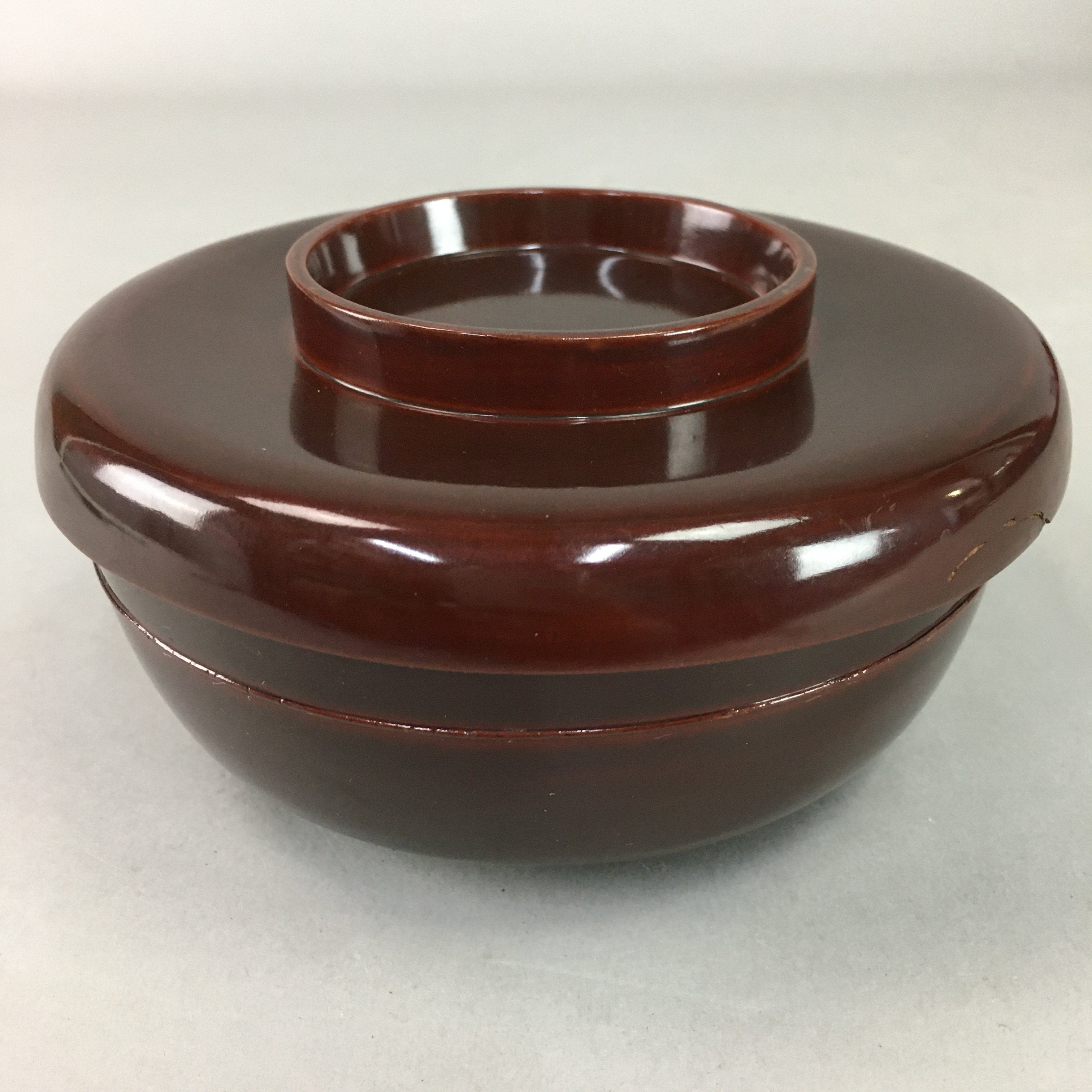 Japanese Antique Wooden Lacquer Lidded Bowl Brown Owan Soup Rice UR293