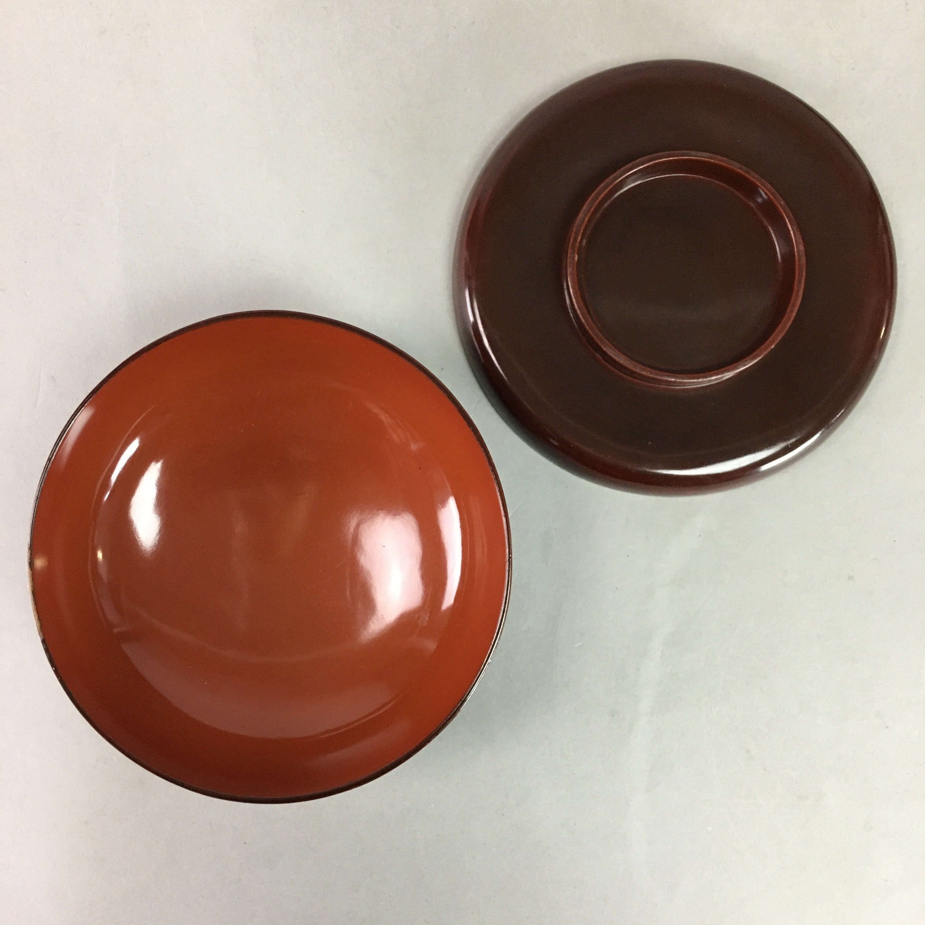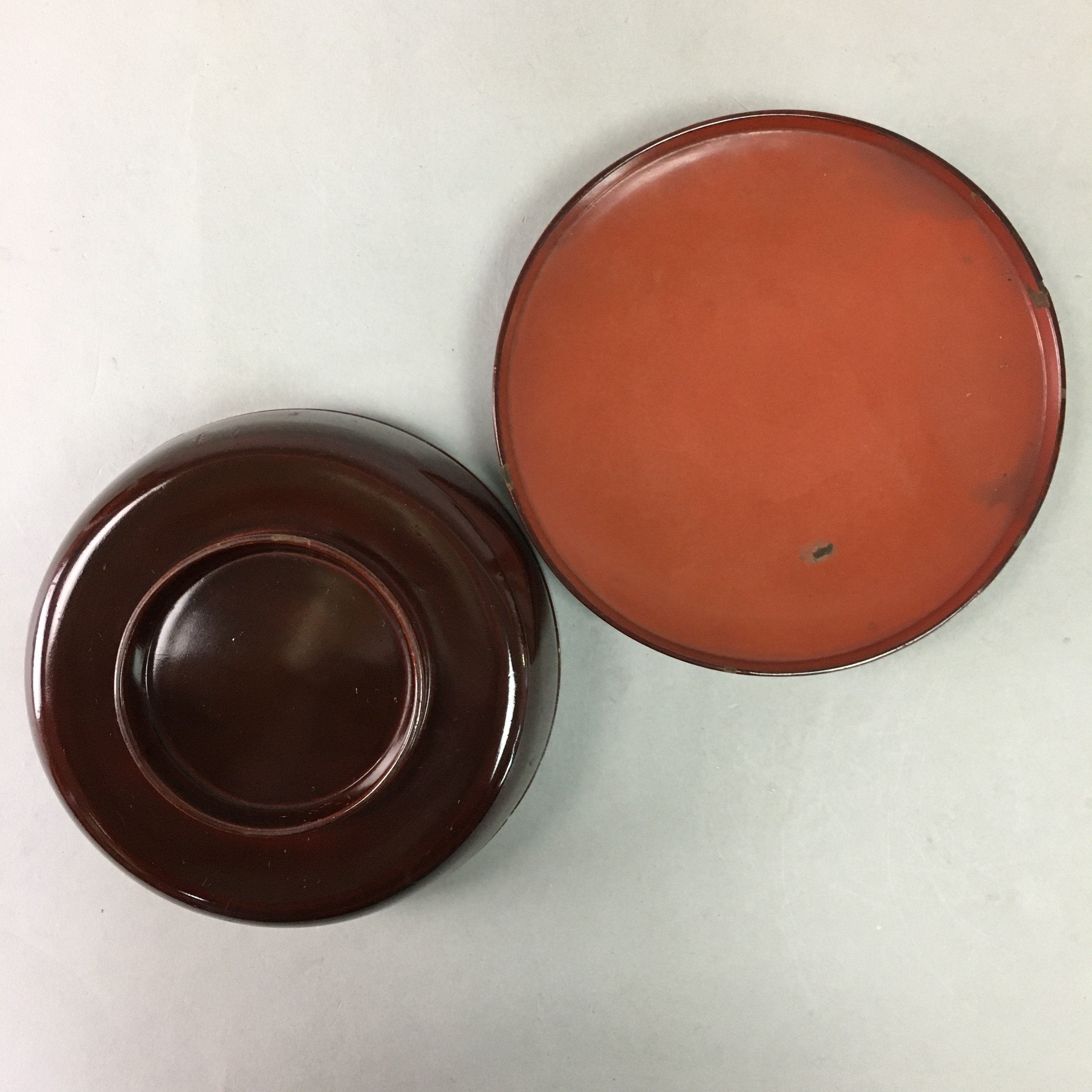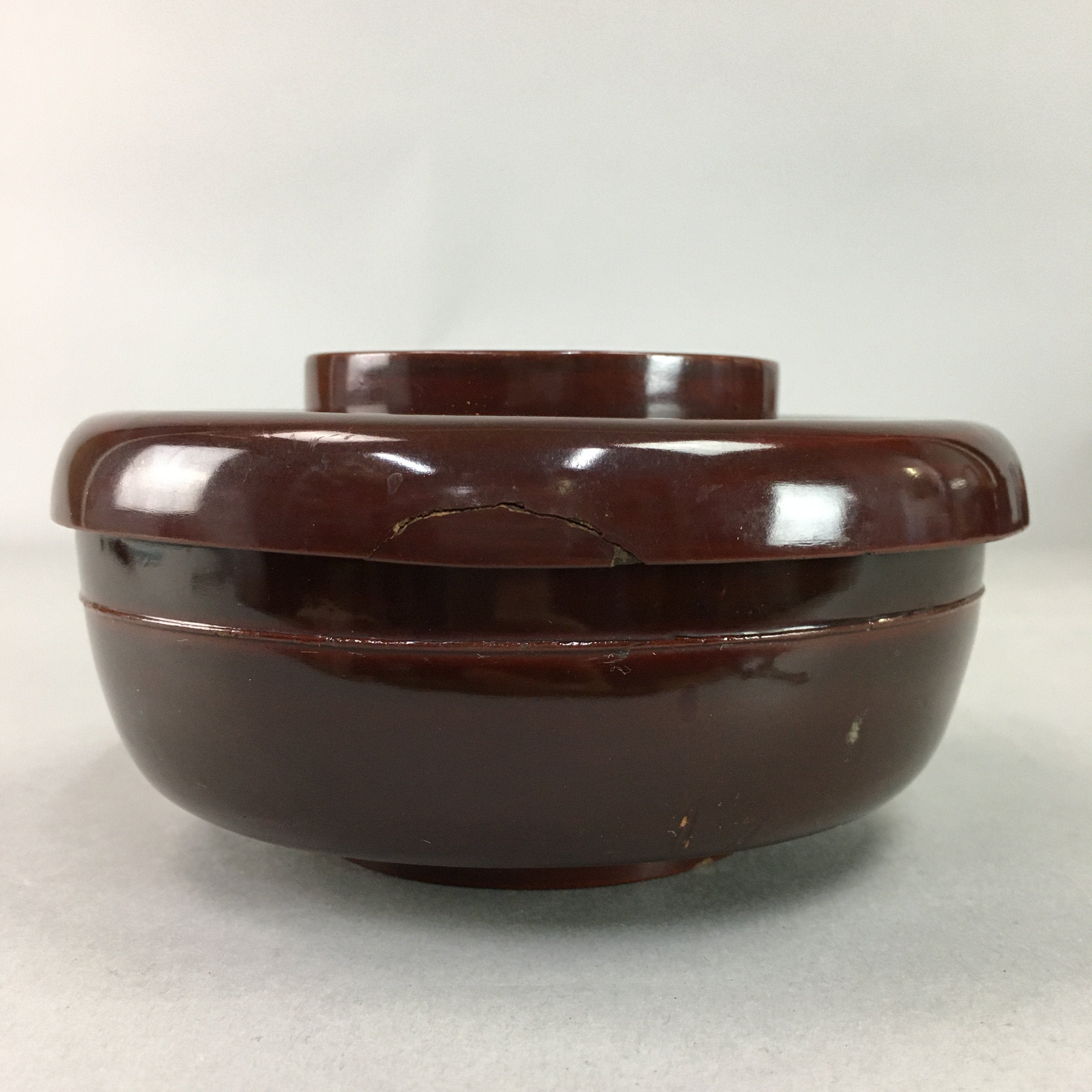 Japanese Antique Wooden Lacquer Lidded Bowl Brown Owan Soup Rice UR293