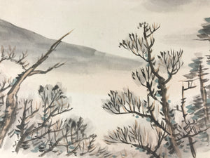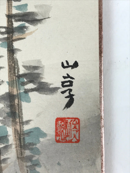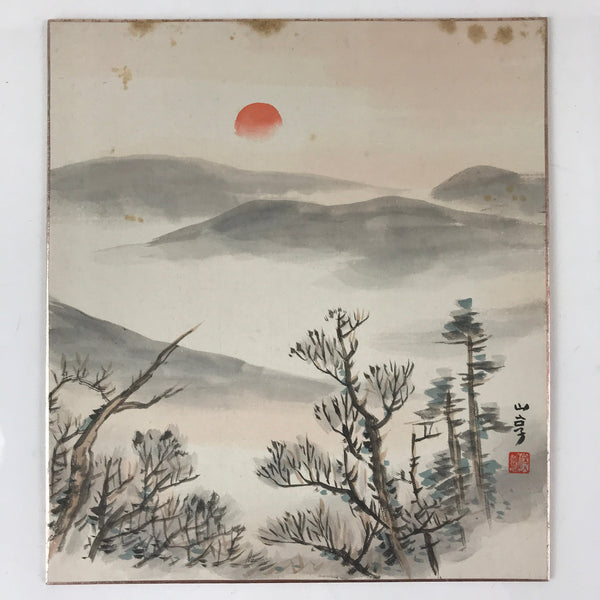 Vtg Japanese Art-board Painting Shikishi Rising Sun Mountain Scene