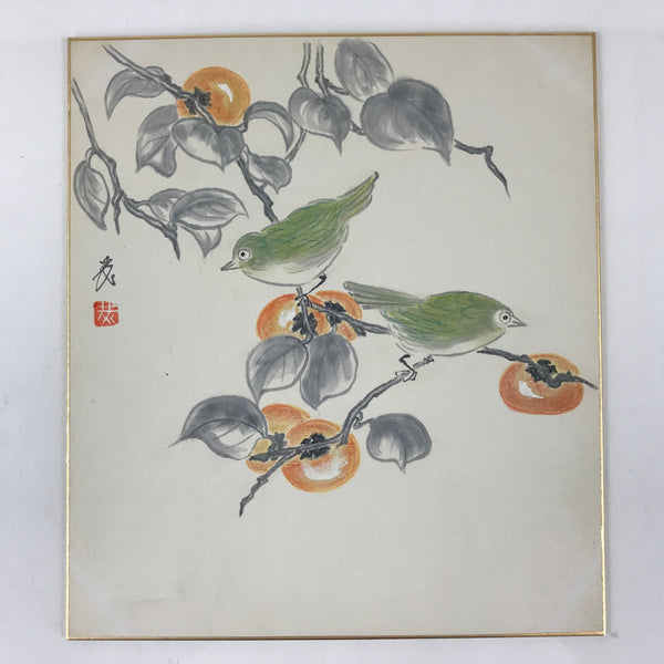 Vtg Japanese Artboard Painting Shikishi Fall Scene