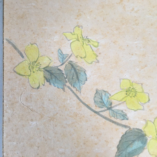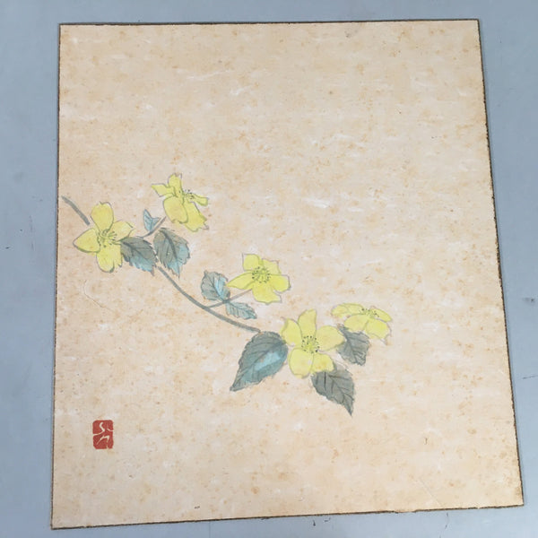 Japanese Art Board Vtg Shikishi Paper Hand-painted Yellow Flower A304