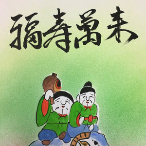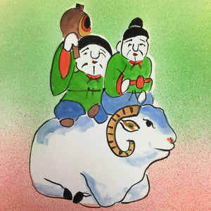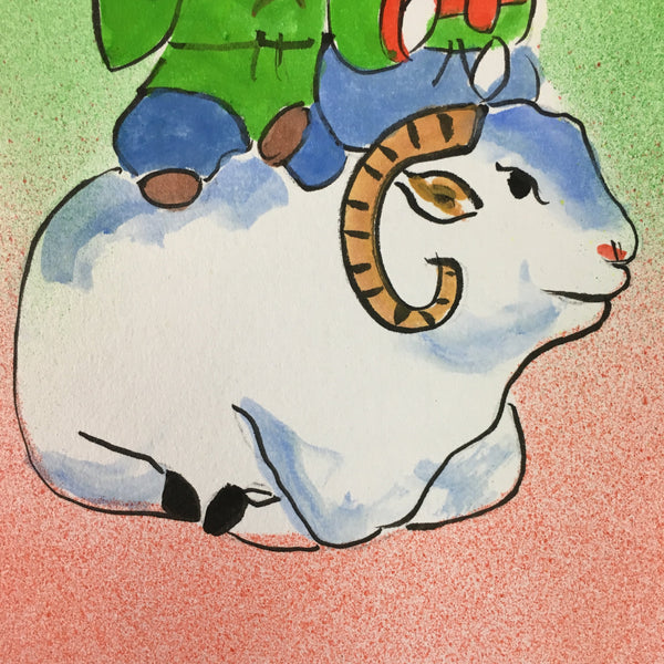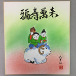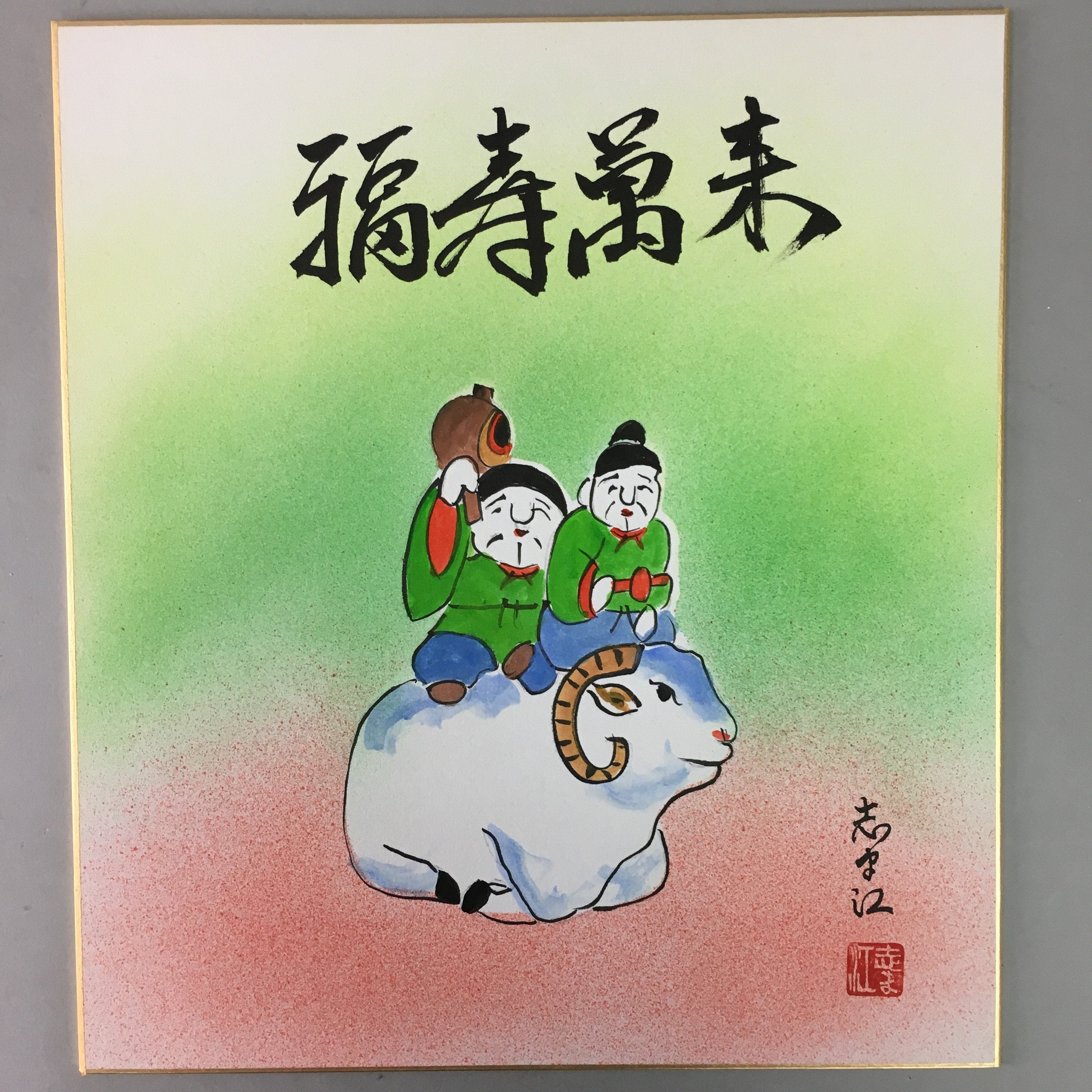 Japanese Art Board Shikishi Paper Zodiac Sheep God Lucky Hammer Kanji A232