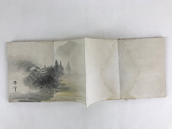 Antique Japanese Art Book Drawing Painting Paper Brown Signature Red Seal FL255