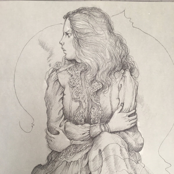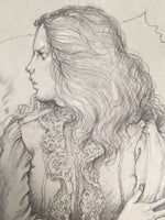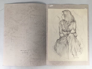 Japanese Art Print Sketching Drawing Woman Profile Dessins Vtg Pencil P279
