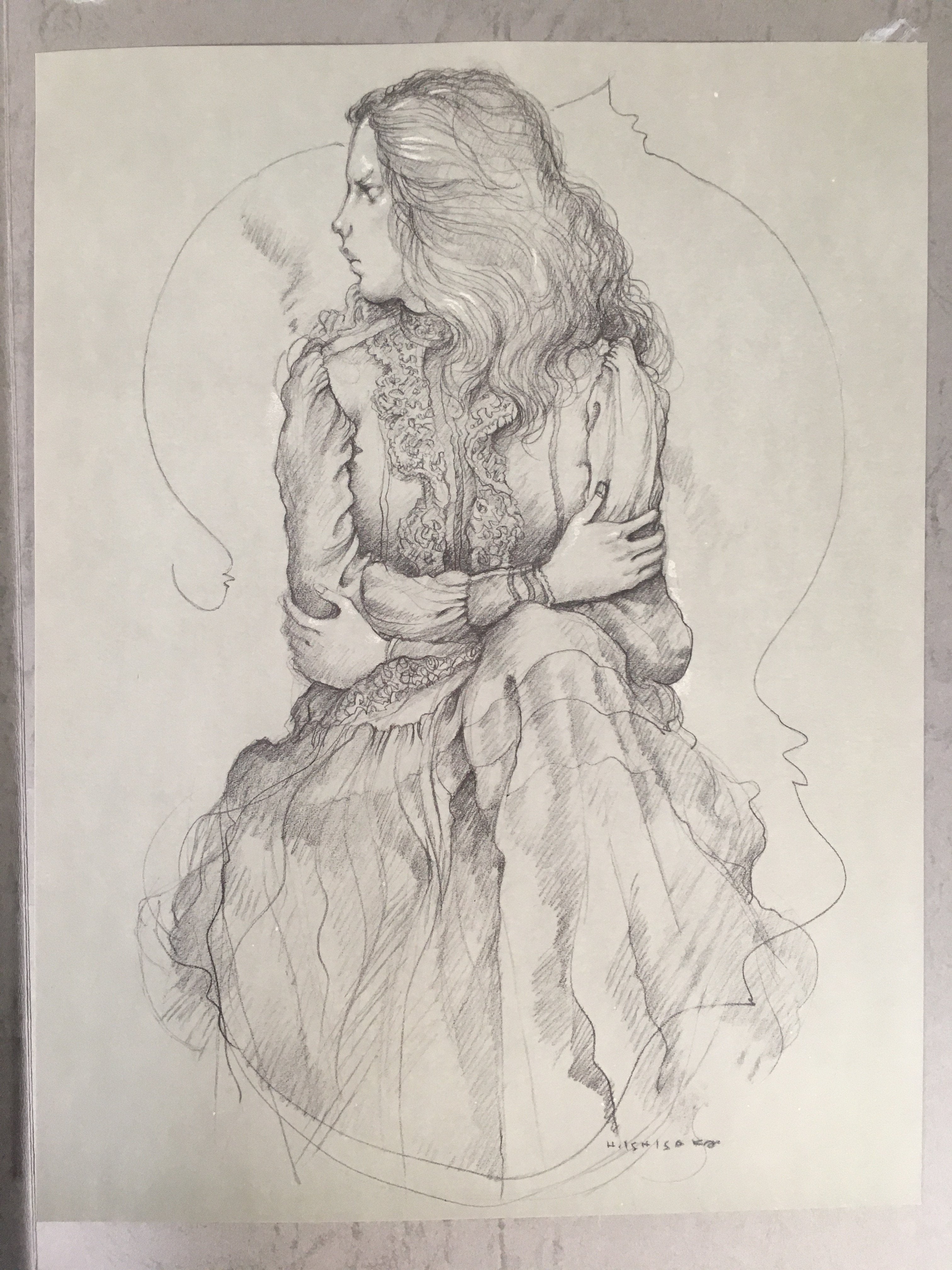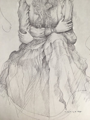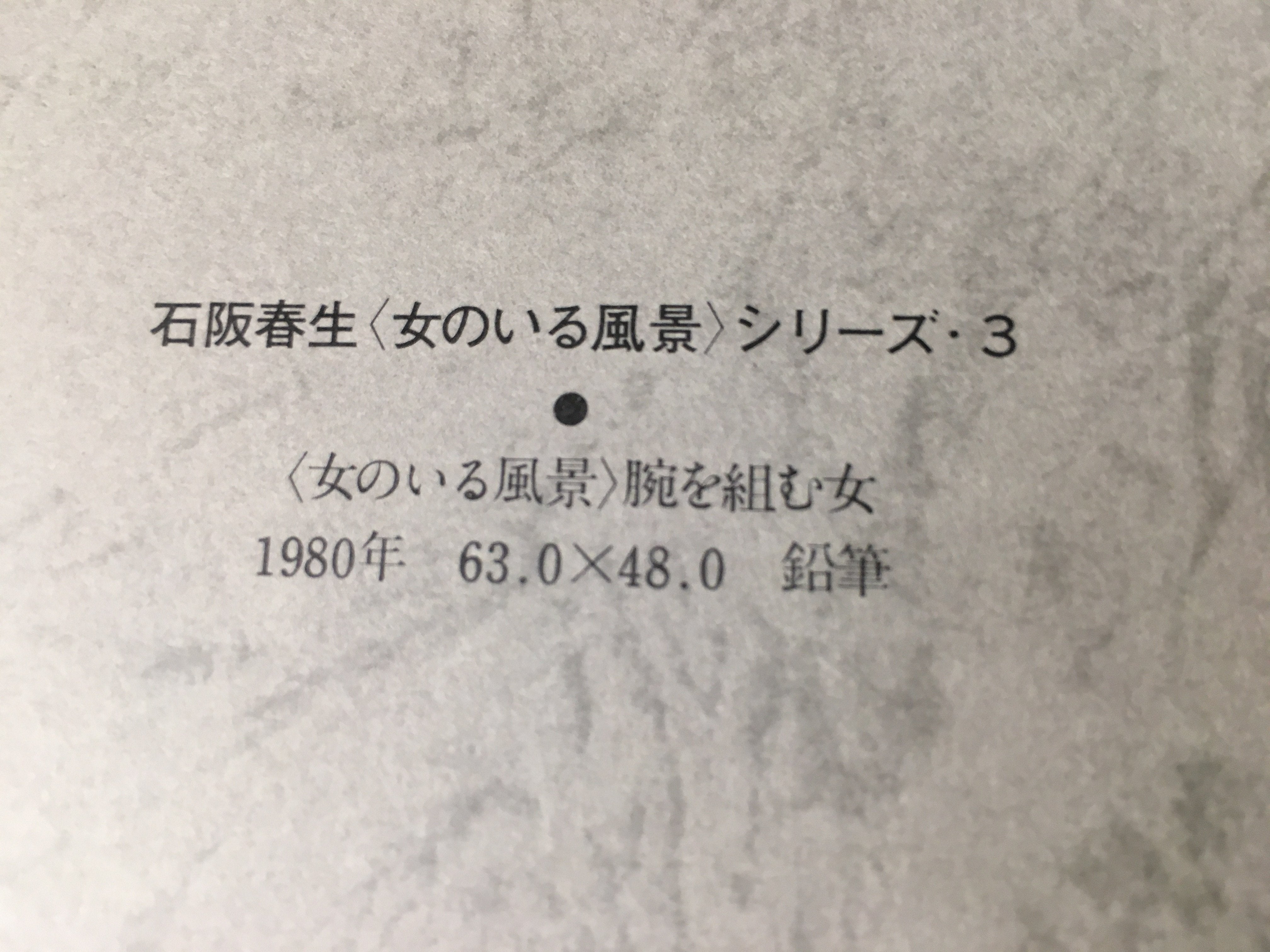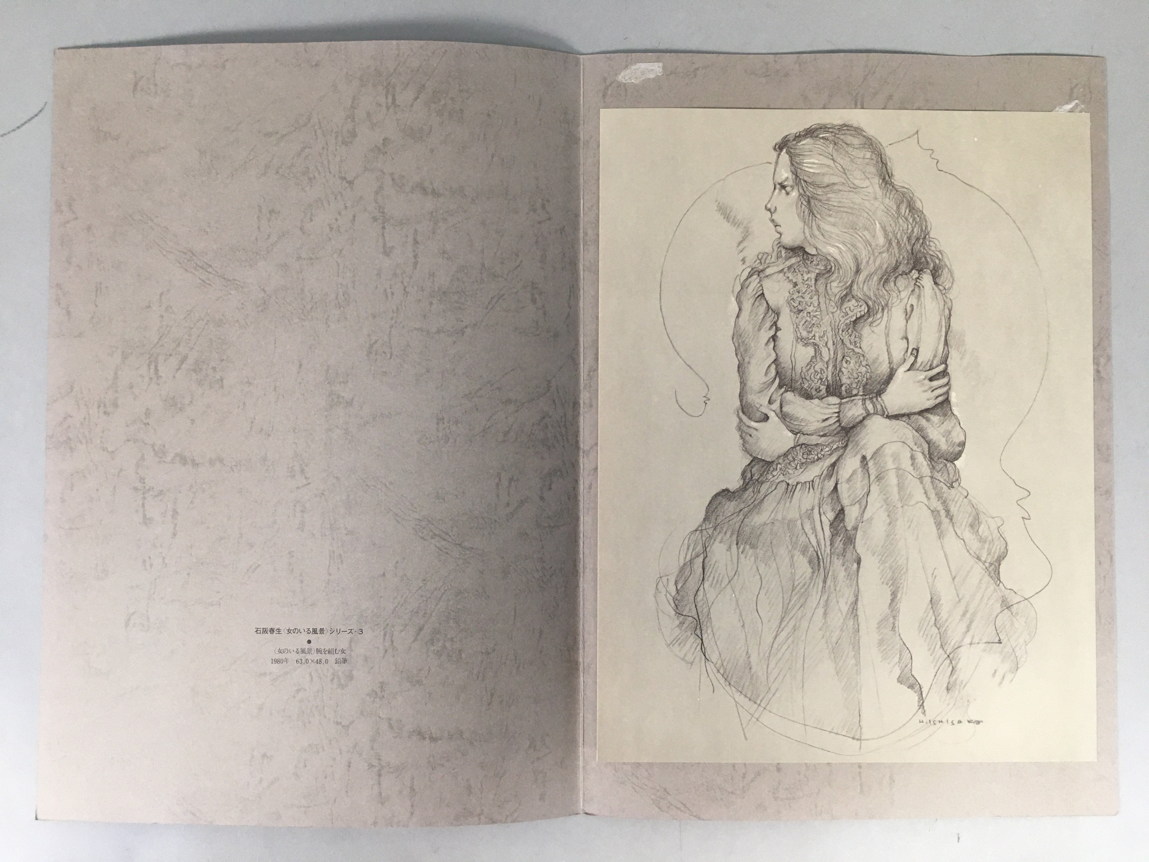 • Kanji on the inside of the cover: Ishisaka Haruo, series of 'scenery with woman' 3, 'scenery with woman' woman holding the arms, 1980, pencil