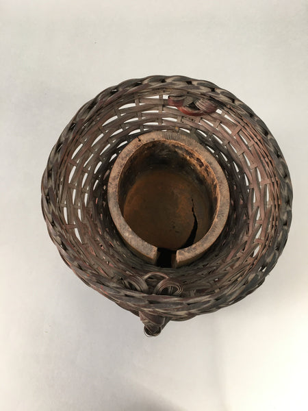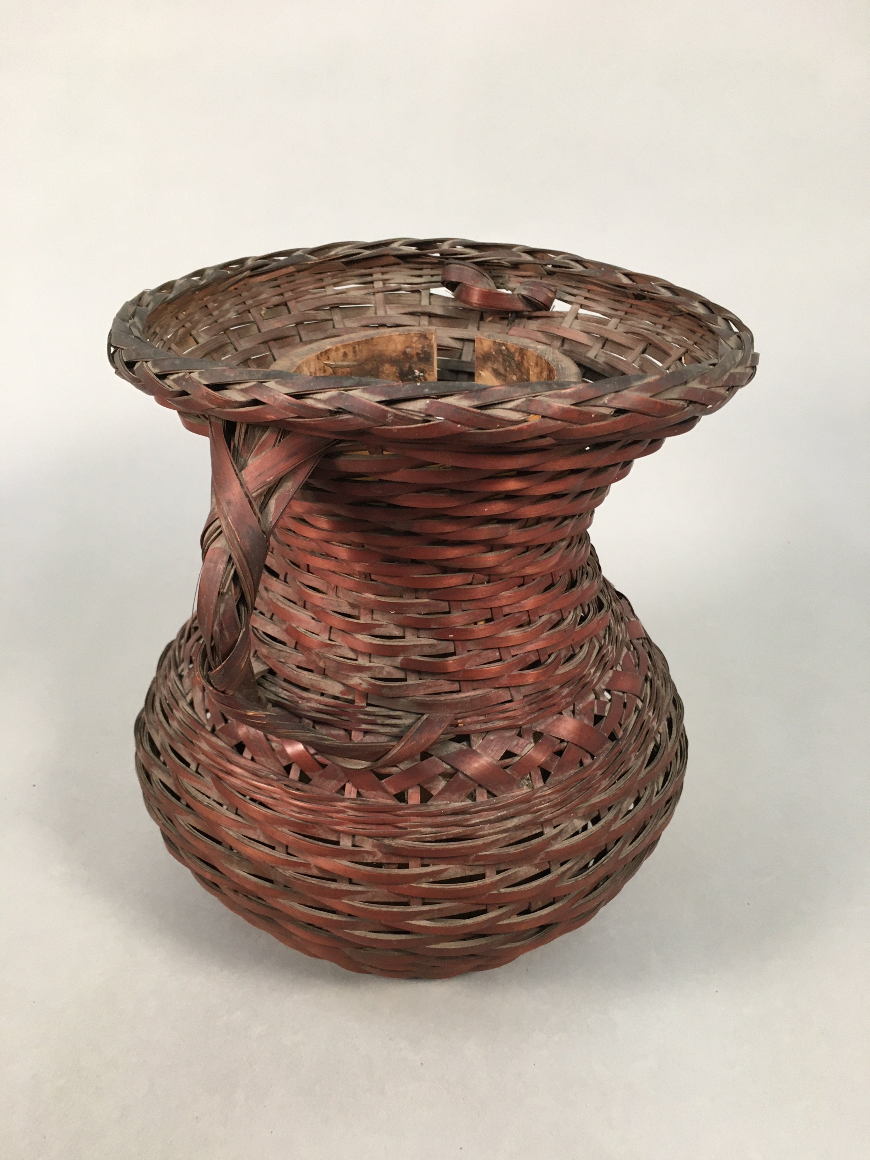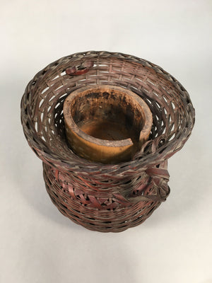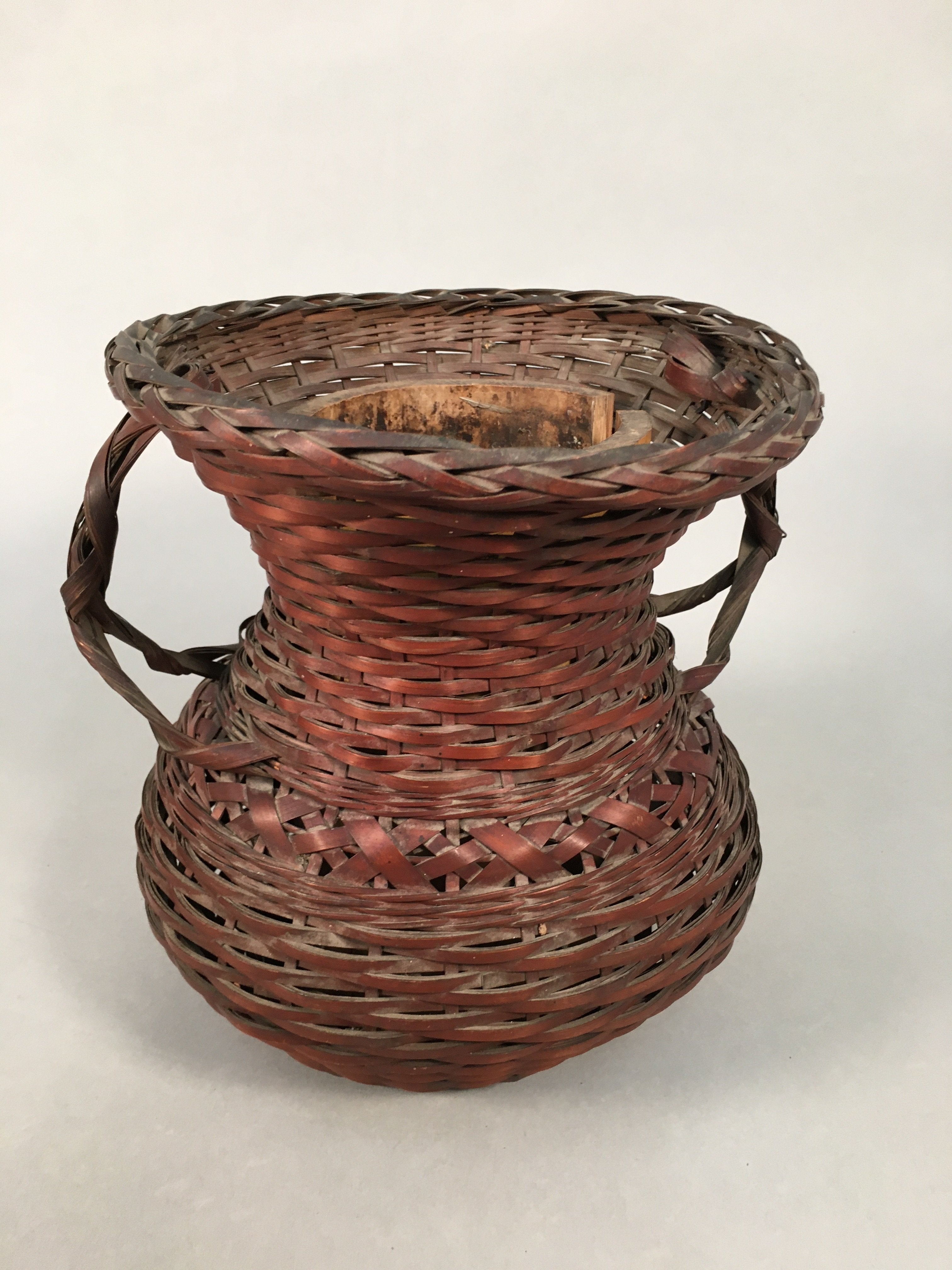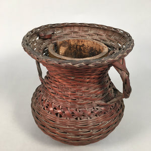 Antique Japanese Bamboo Basket Flower Vase Ikebana Arrangement Kado B138