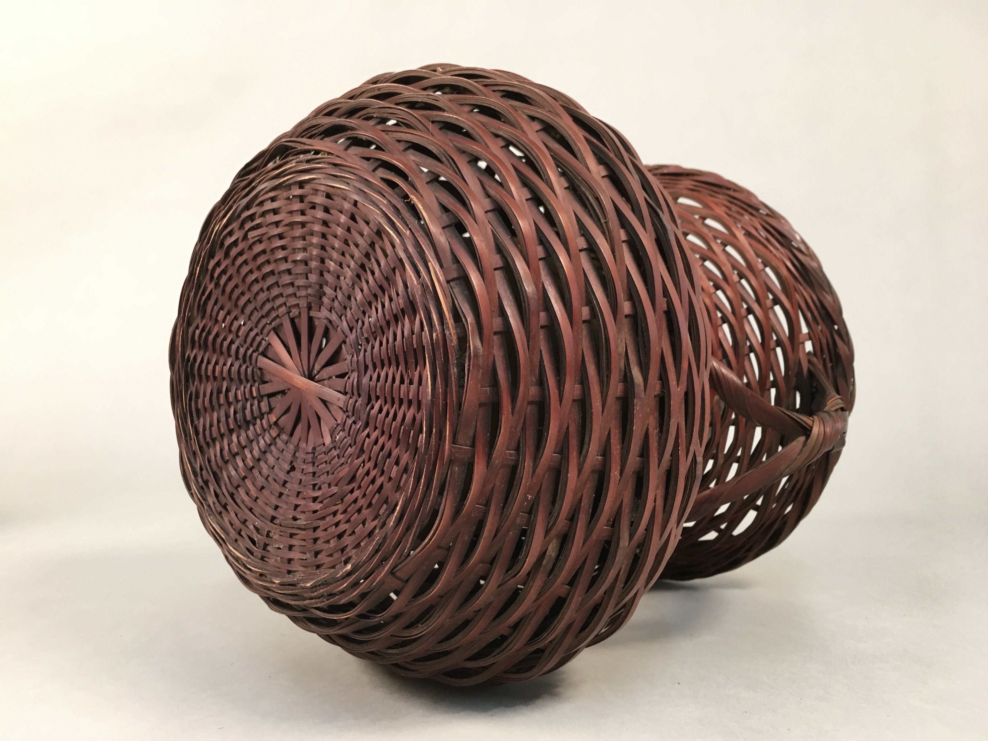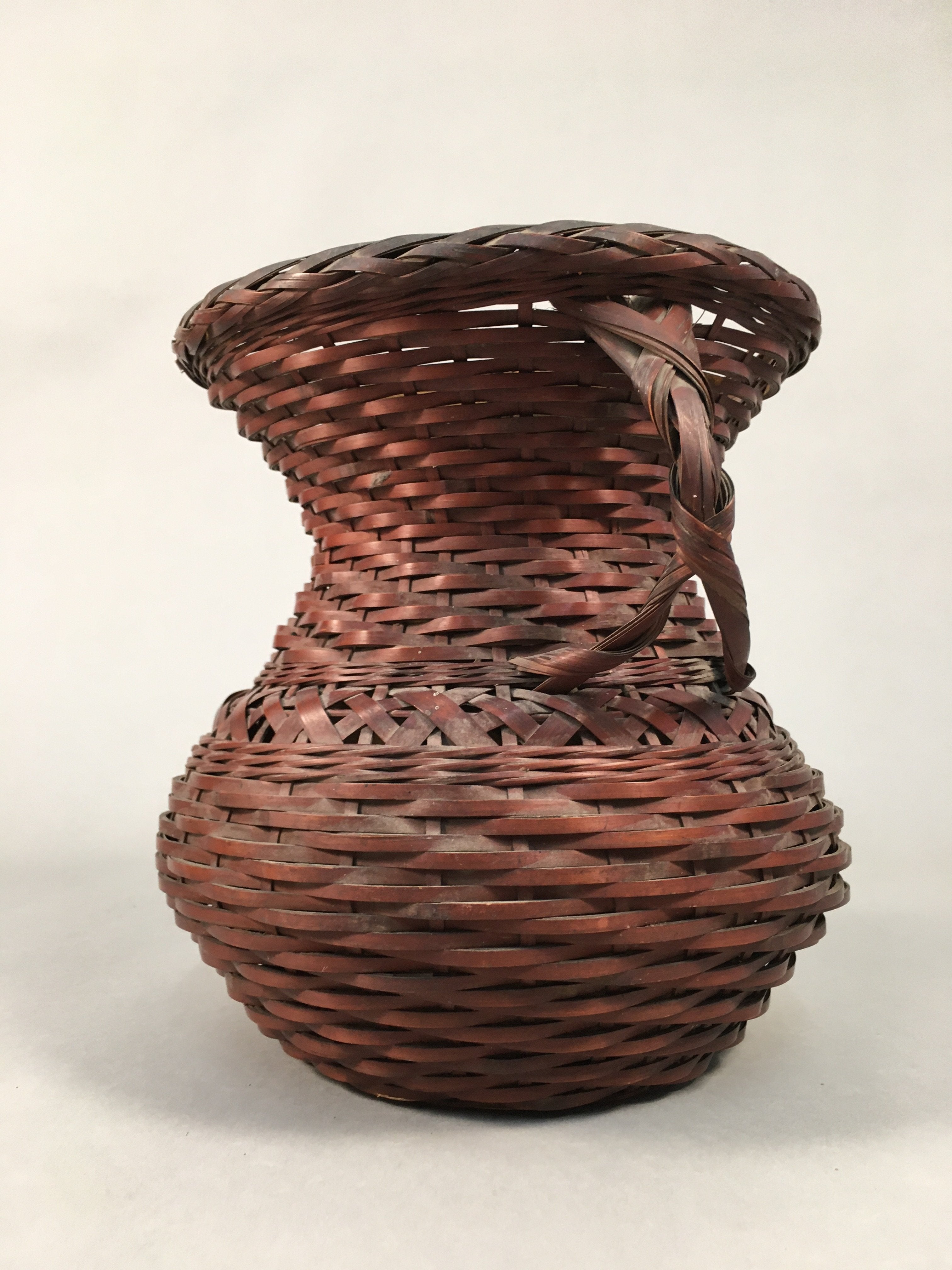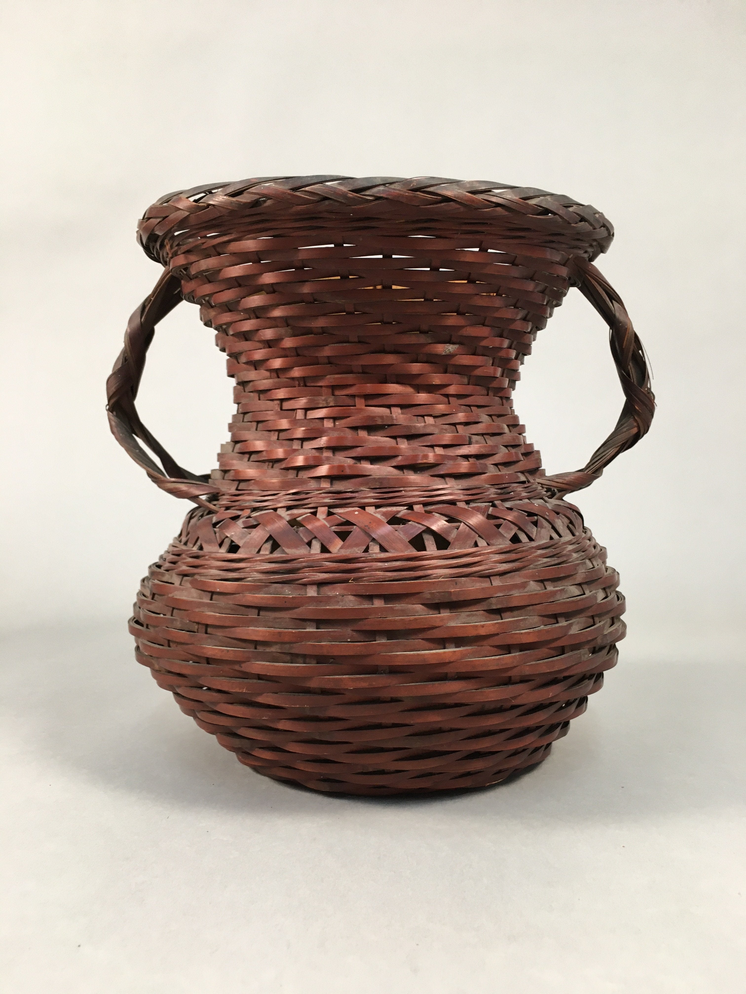 Antique Japanese Bamboo Basket Flower Vase Ikebana Arrangement Kado B138