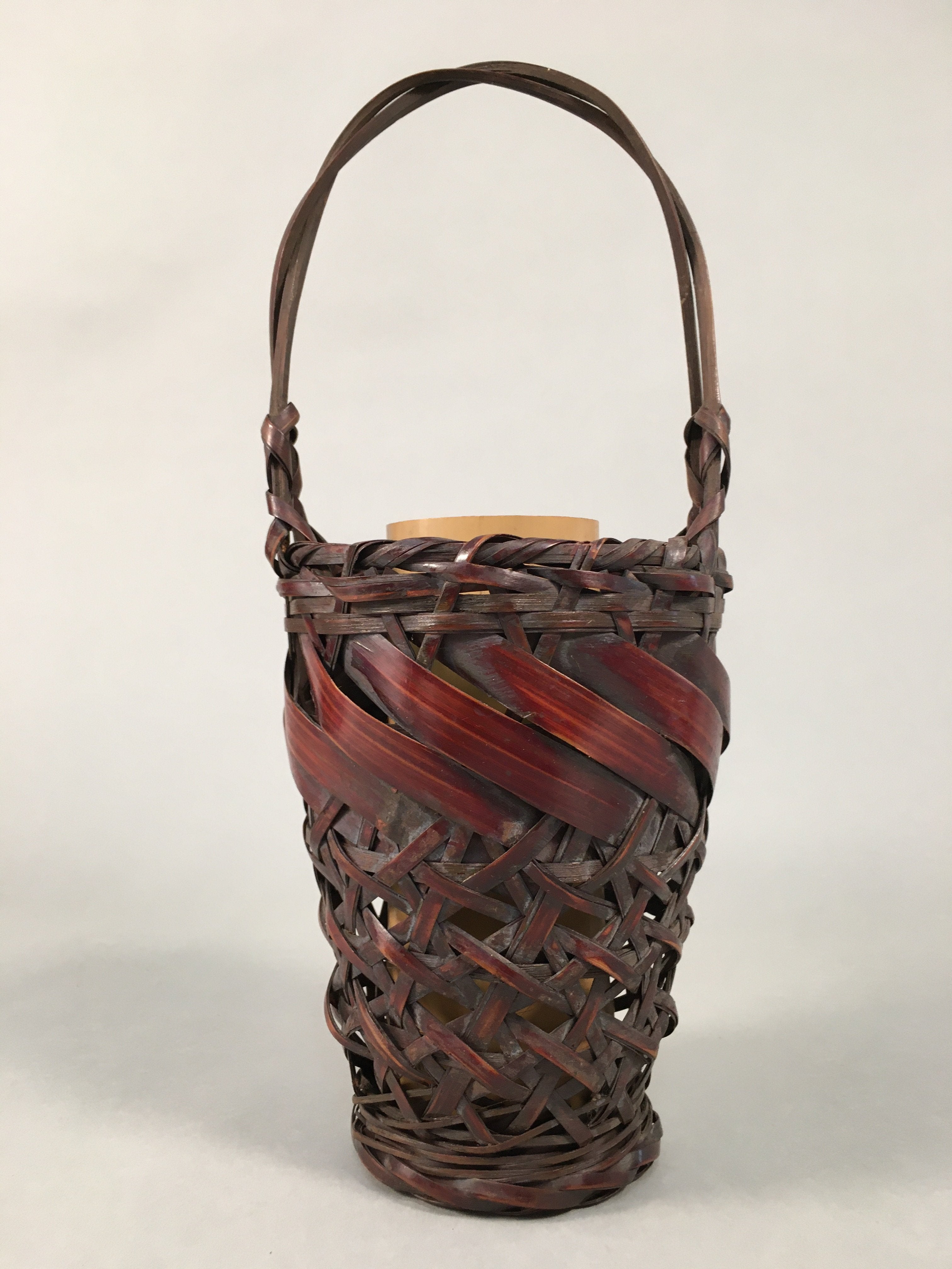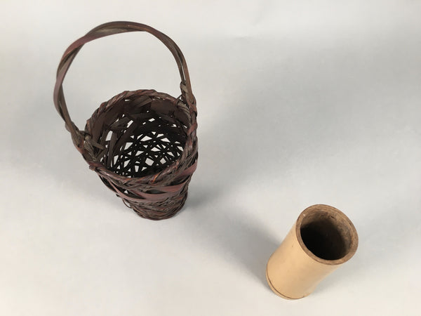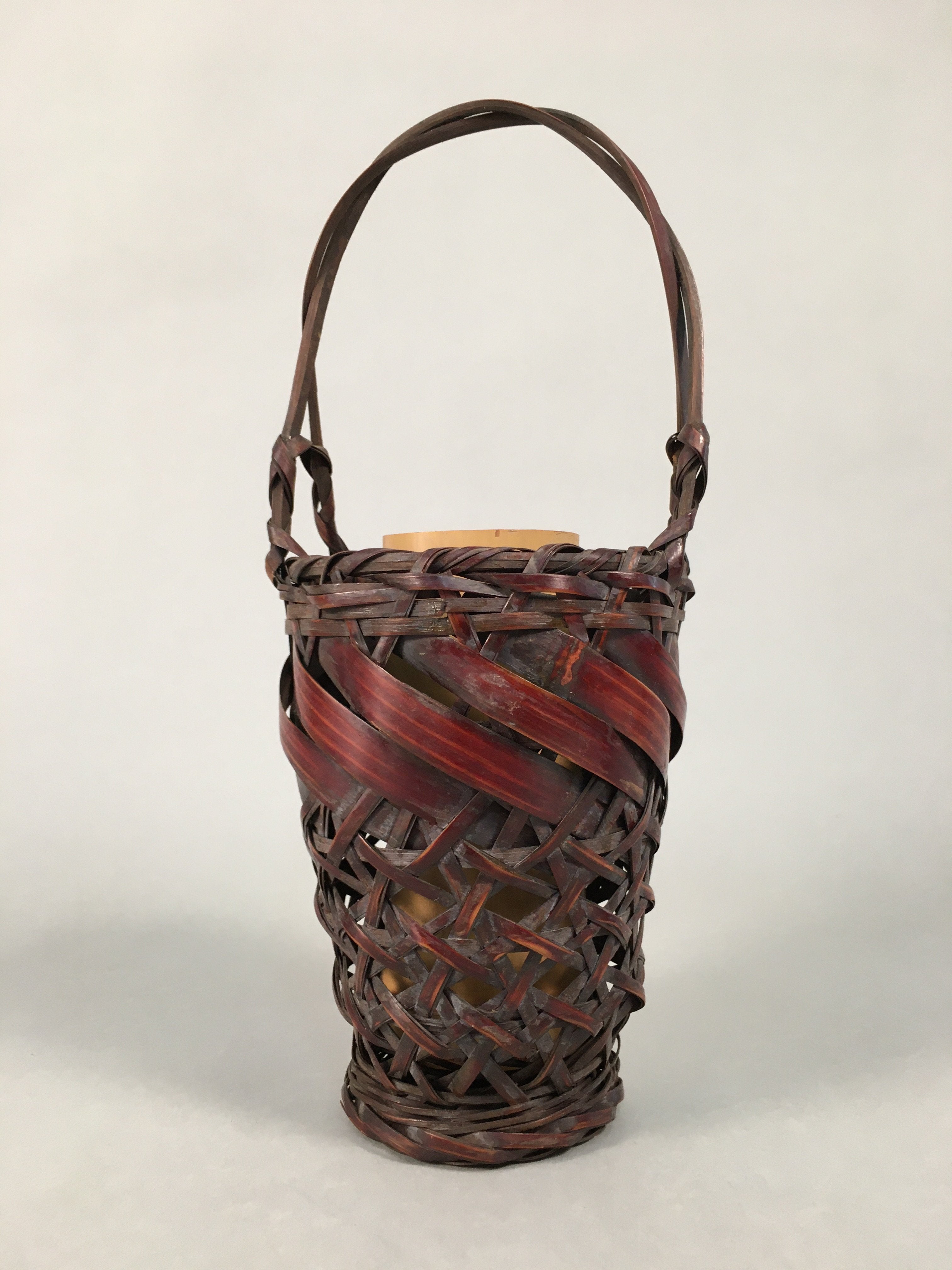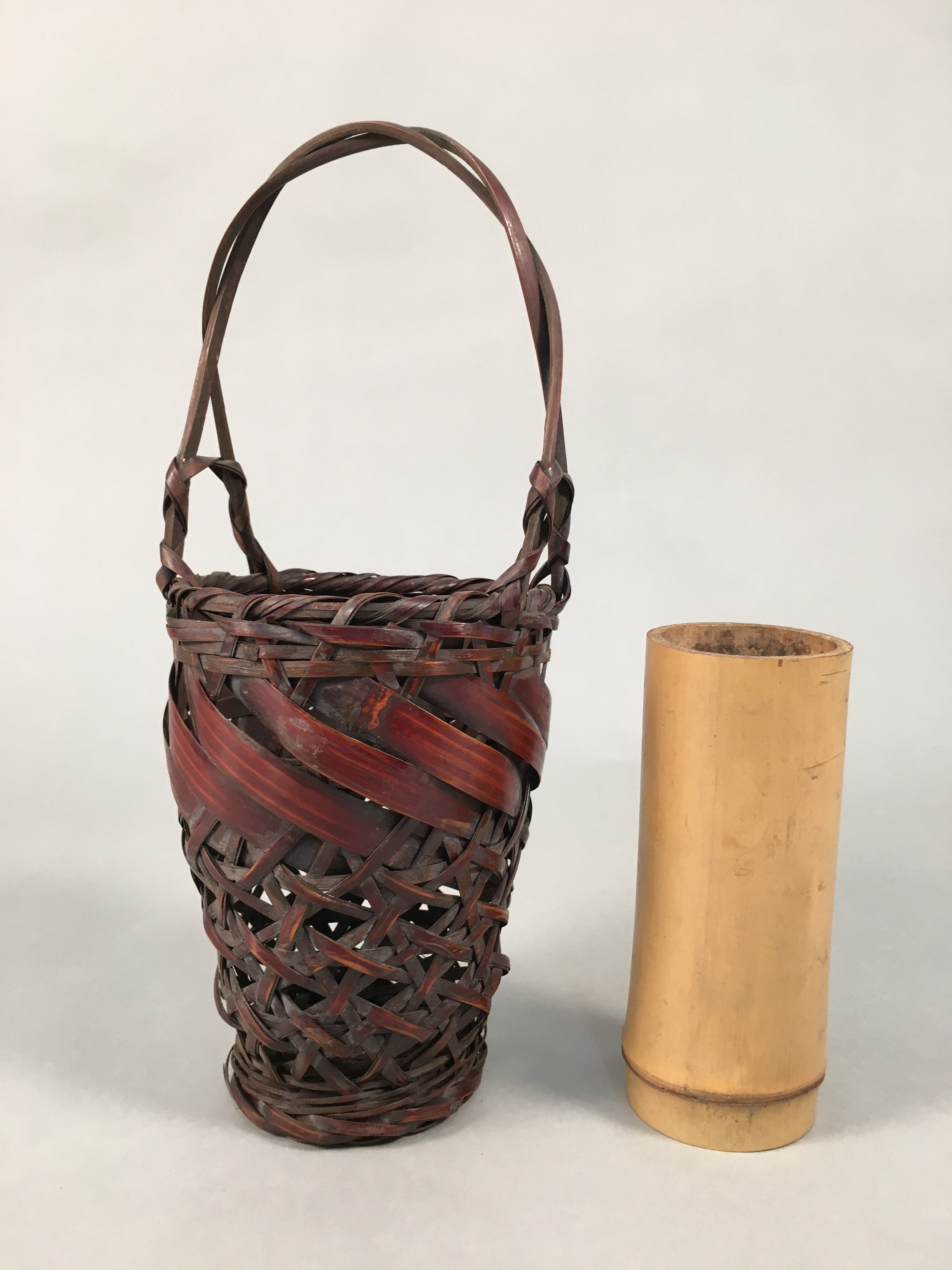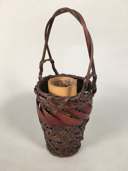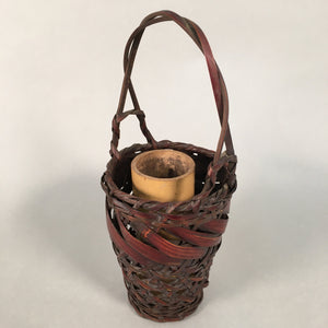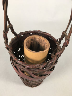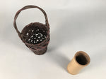 Japanese Bamboo Basket Vtg Flower Vase Ikebana Arrangement Kado B148