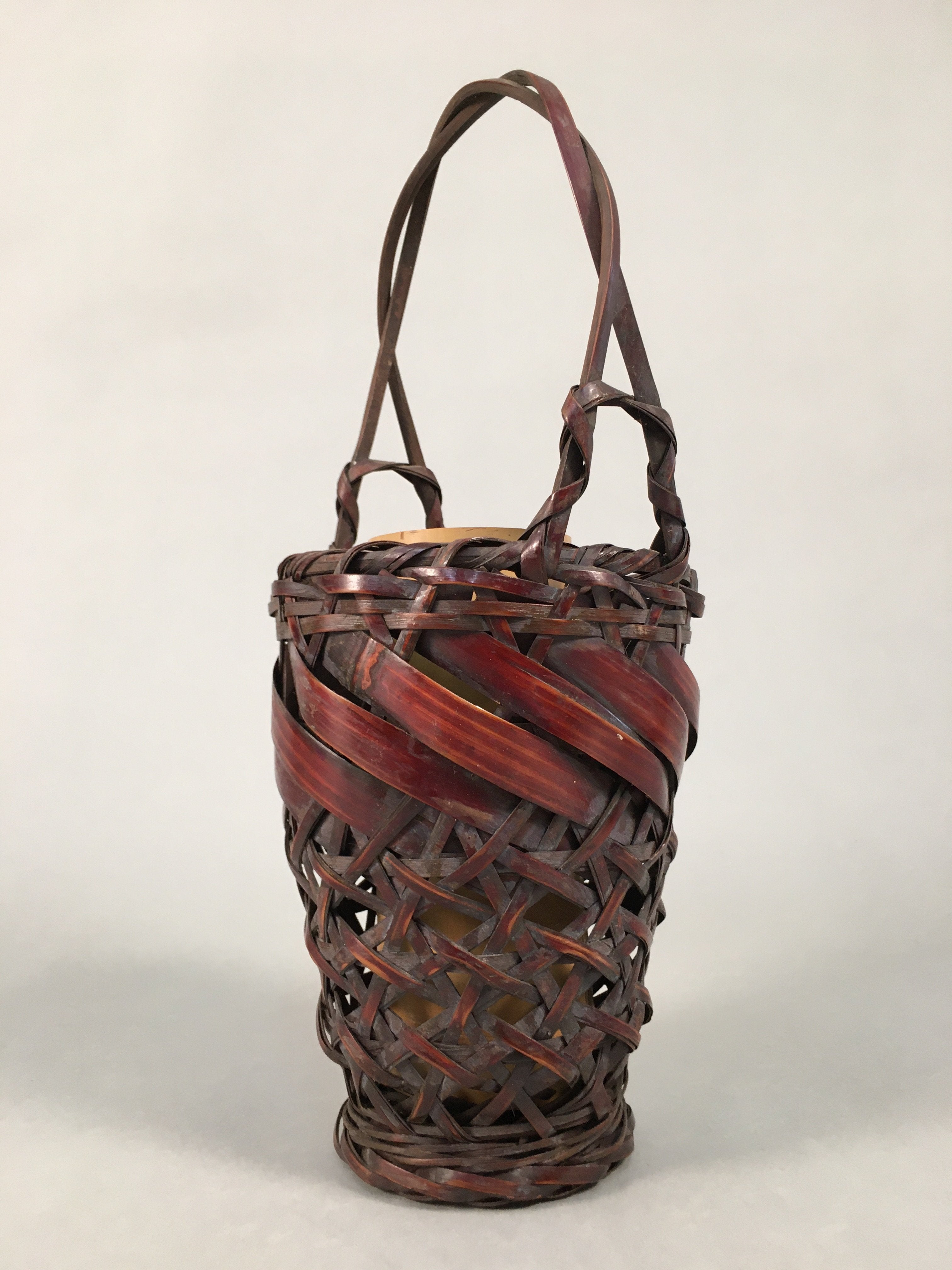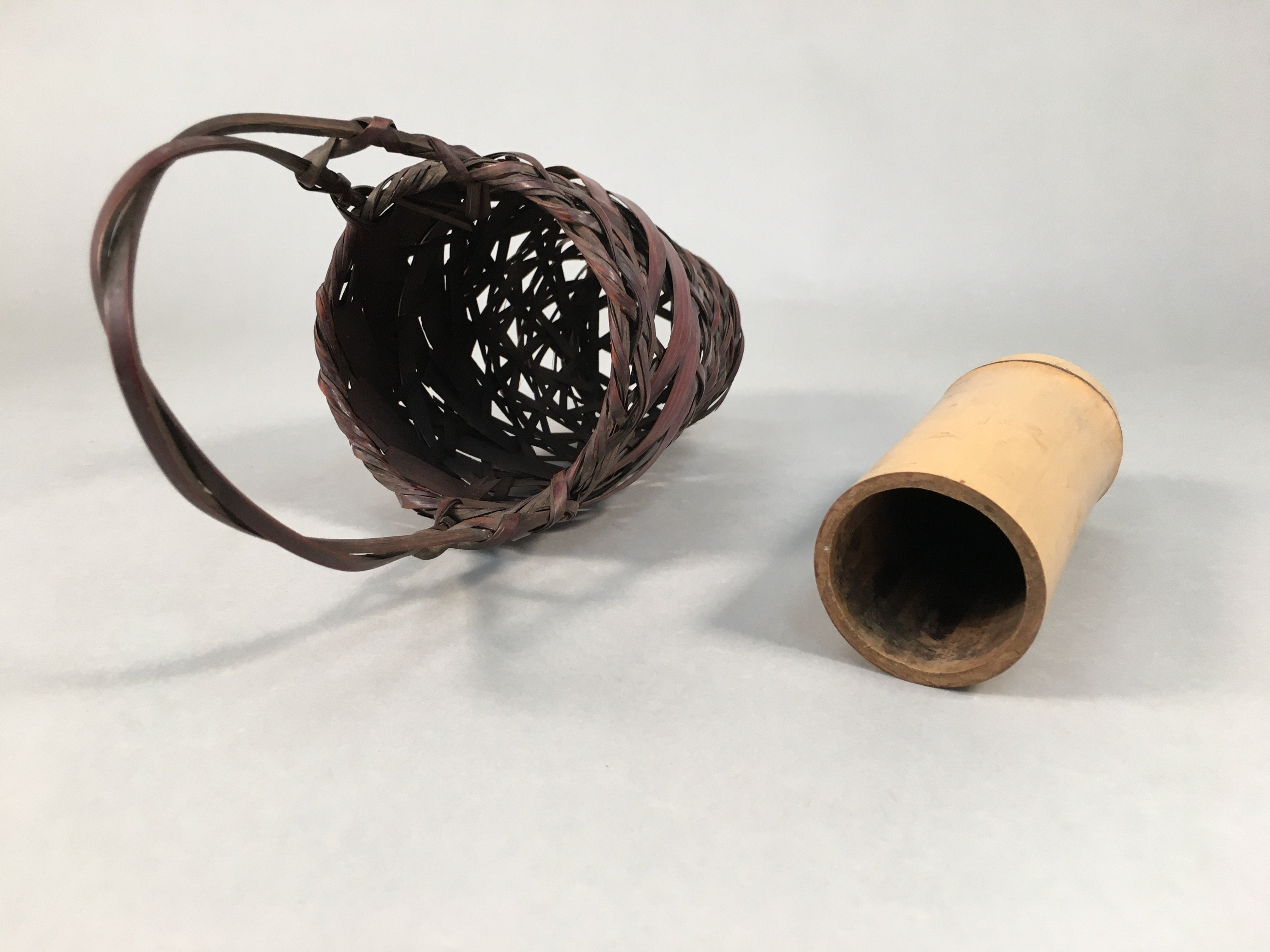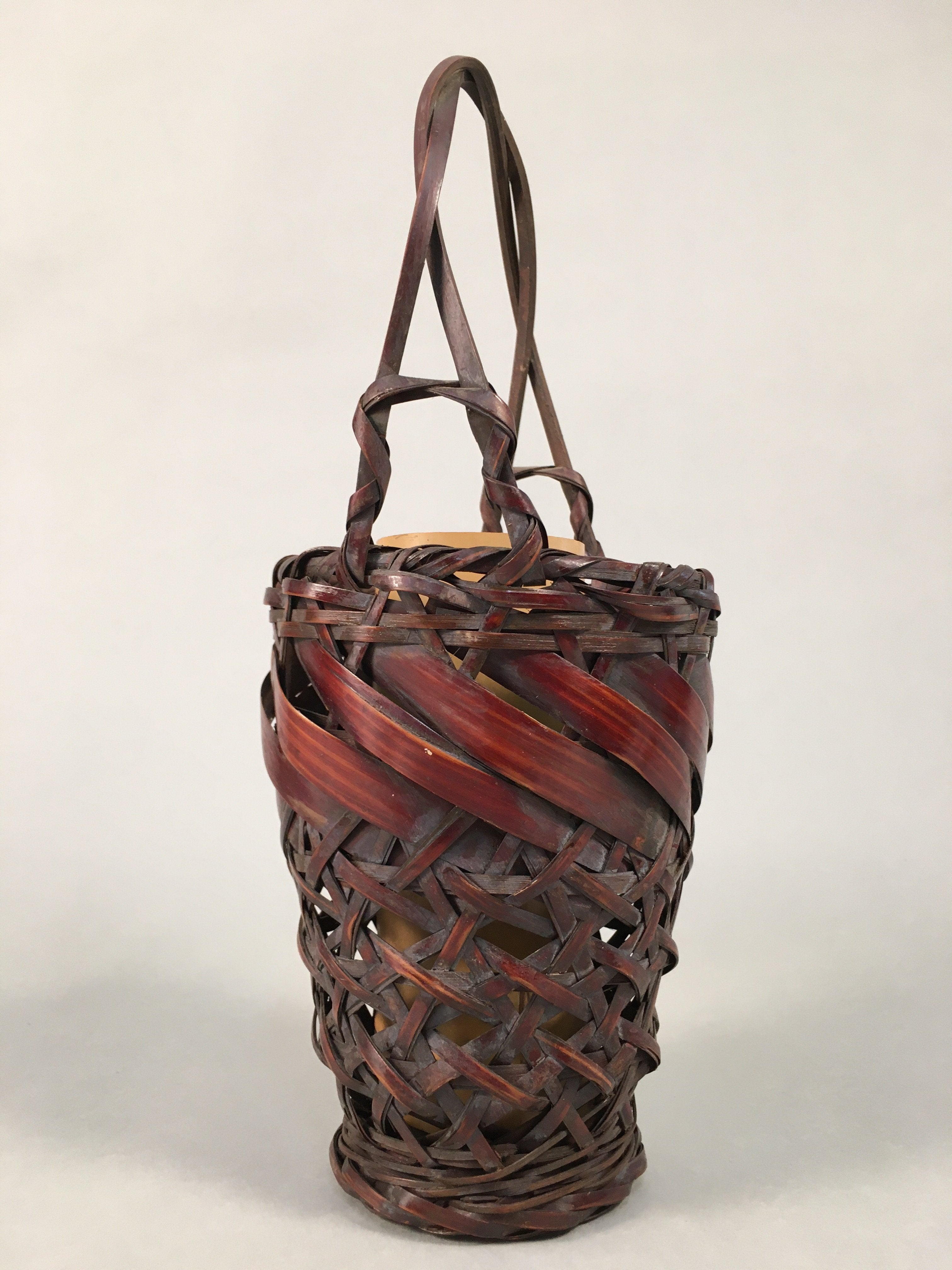 Japanese Bamboo Basket Vtg Flower Vase Ikebana Arrangement Kado B148