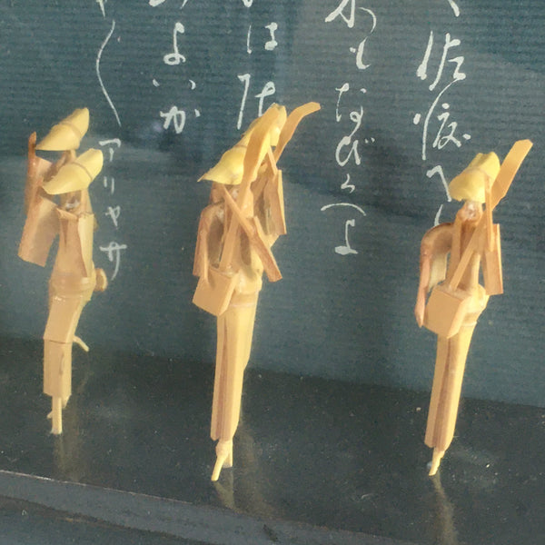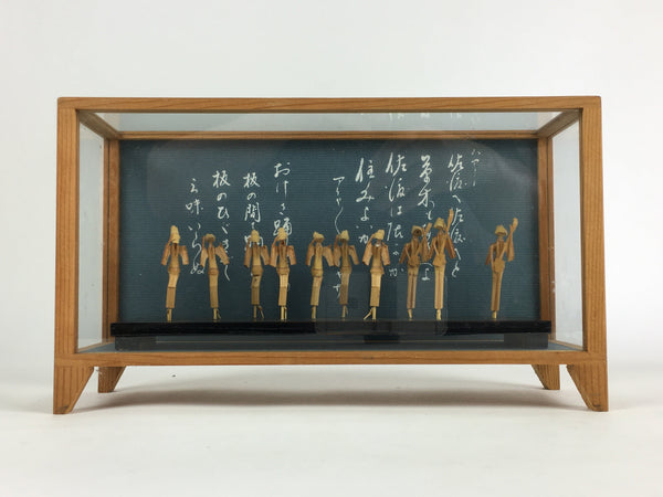 Vtg Japanese Bamboo Dolls Glass Case Figurine