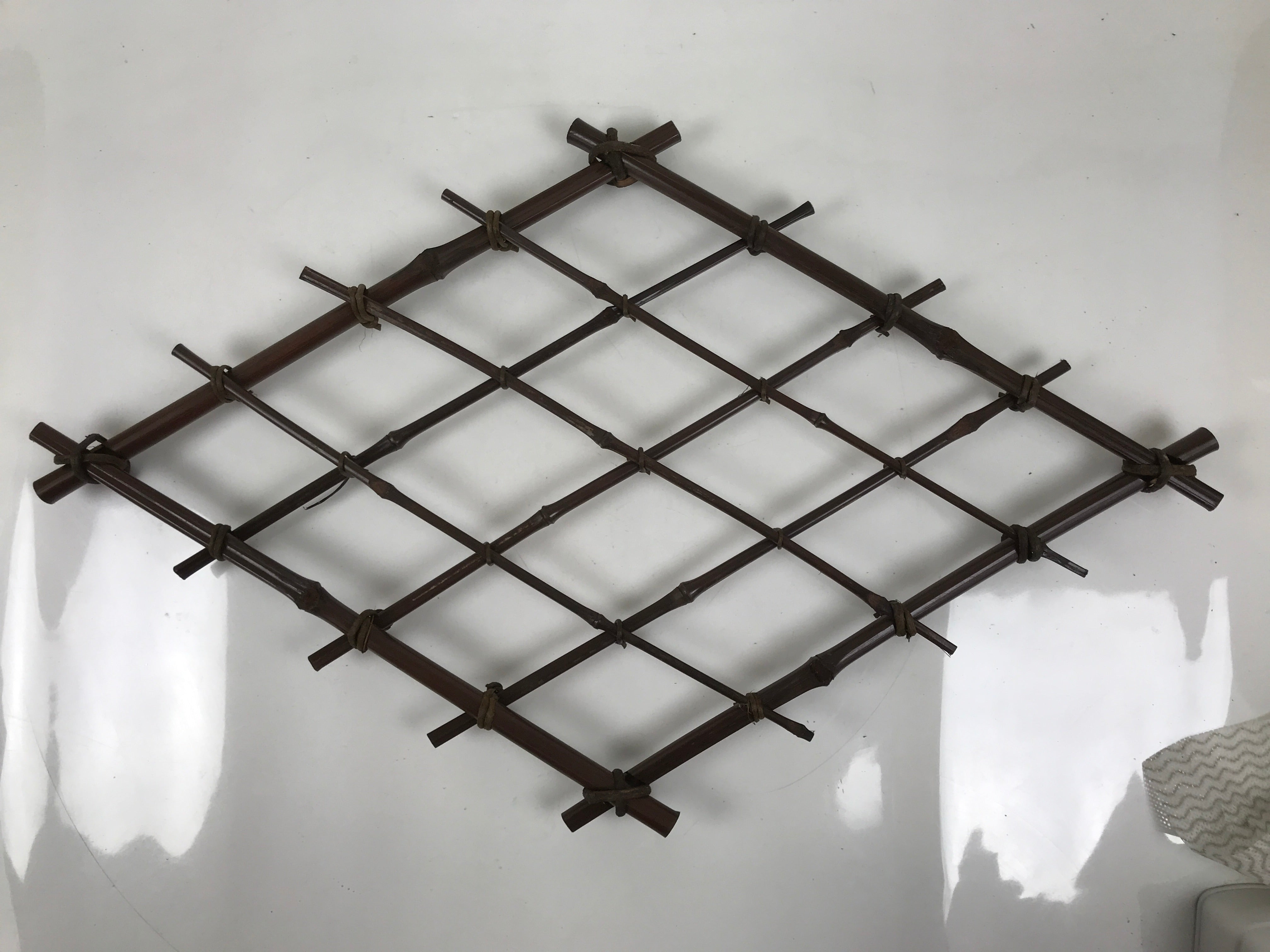 Japanese Bamboo Rhombus Lattice Wall Decoration Vtg Vine Natural Material WT557