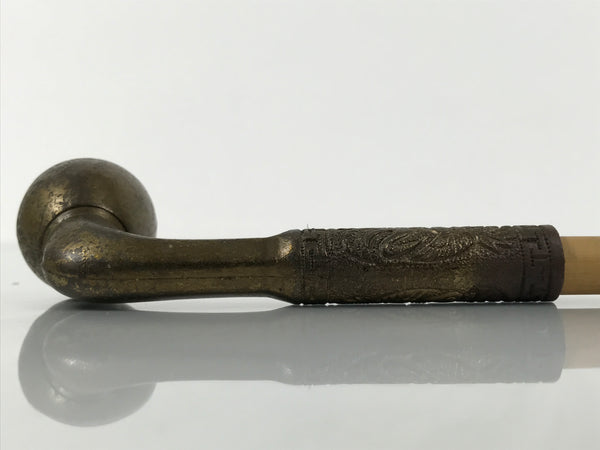 Japanese Bamboo Metal Large Traditional Kiseru Pipe Vtg Crane Mon Design JK912