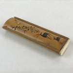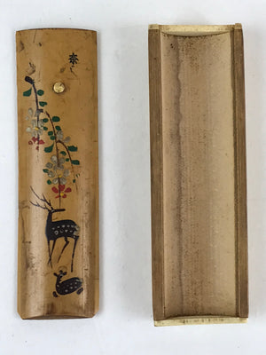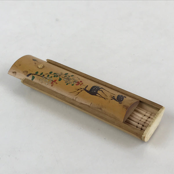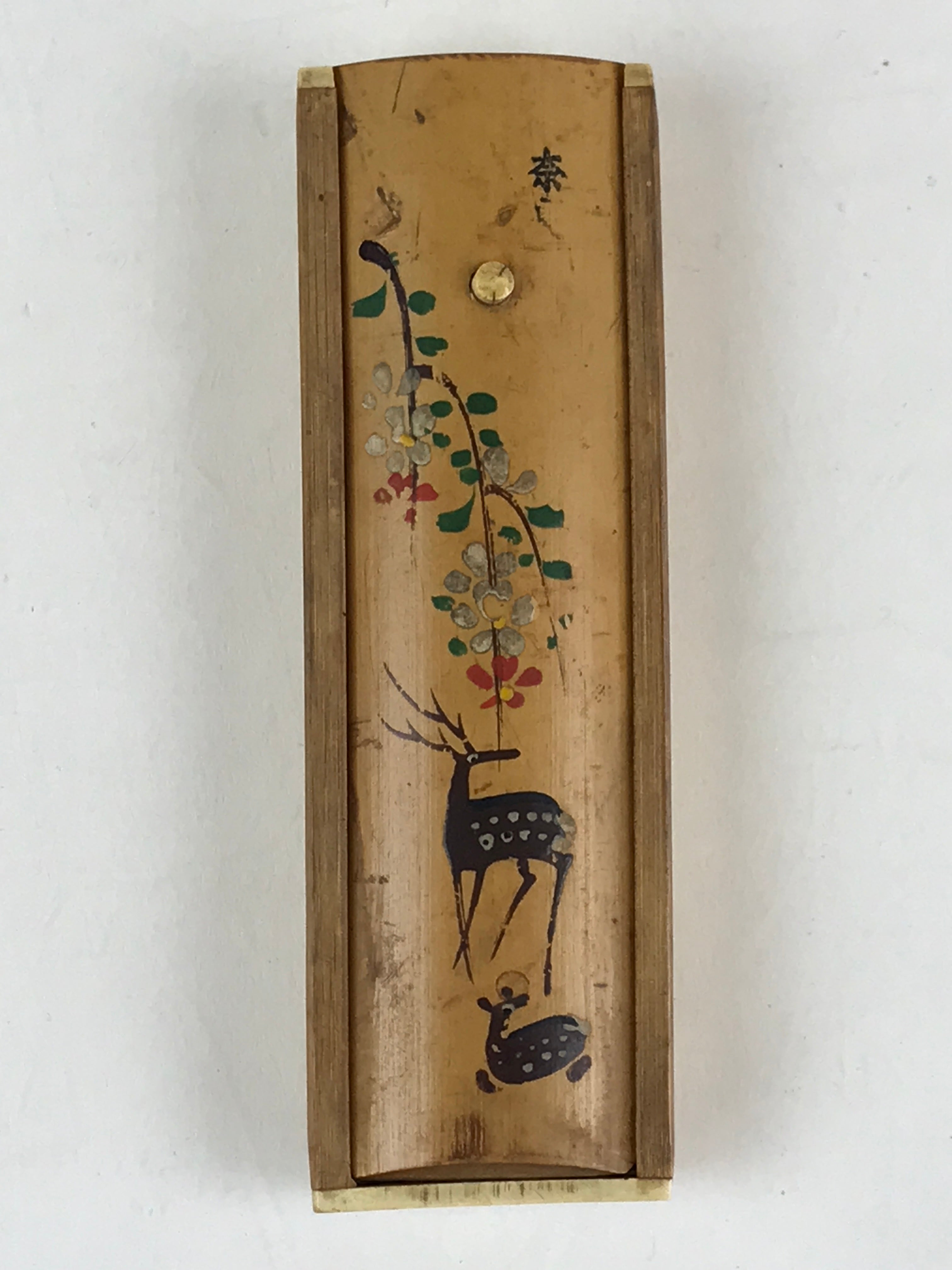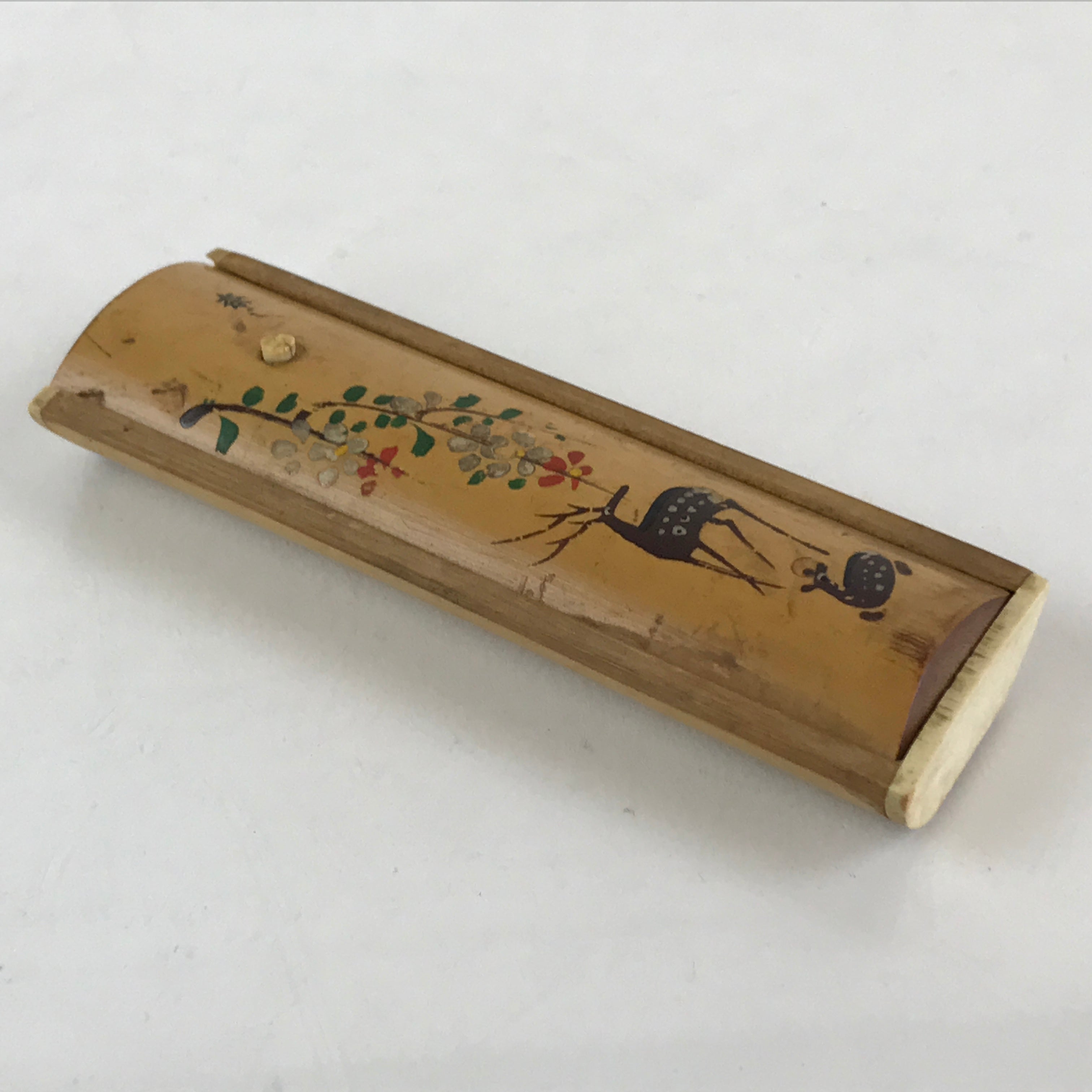 Japanese Bamboo Product Sliding Lid Toothpick Case Vtg Flower Deer Kanji Nara UR