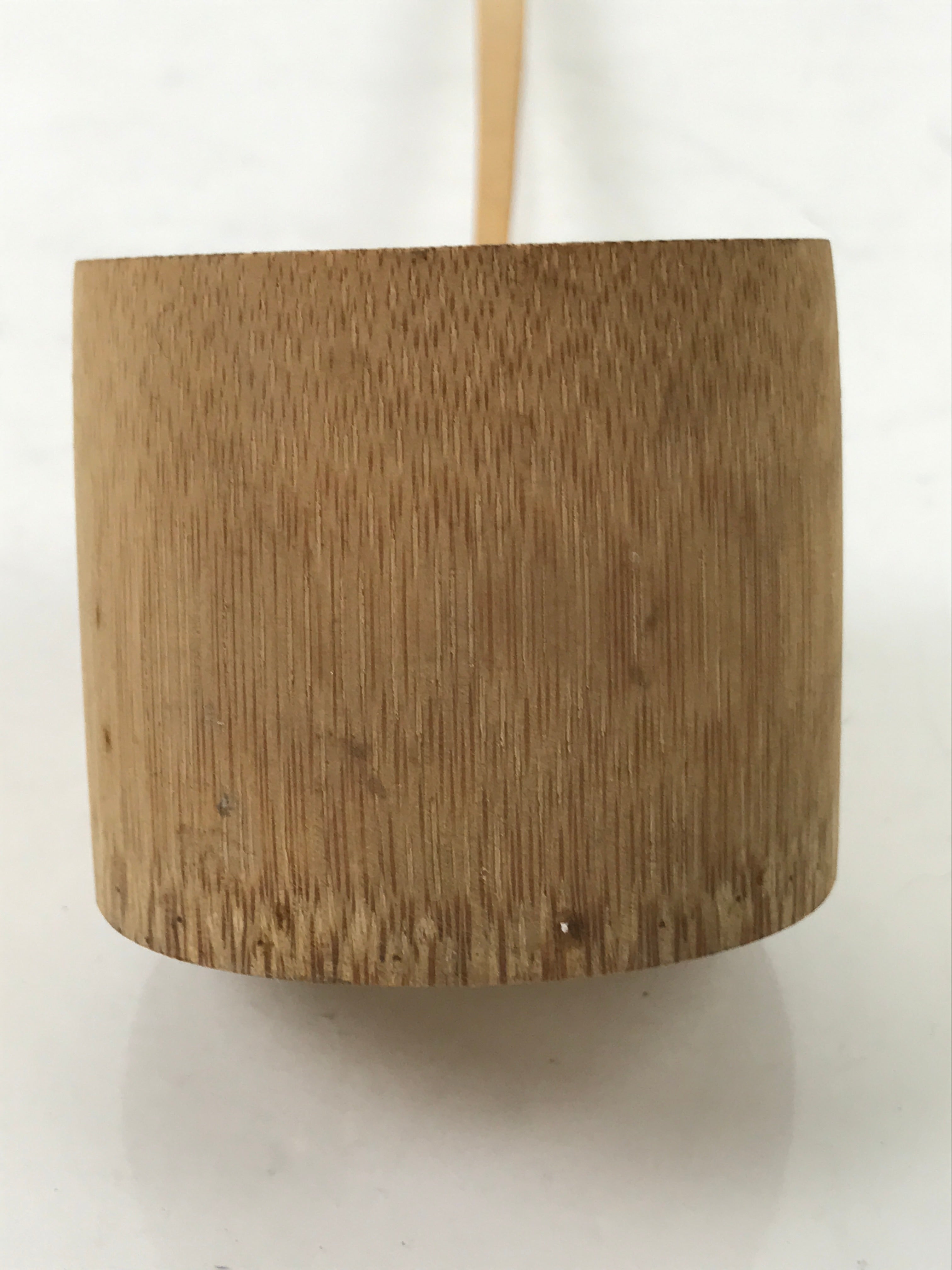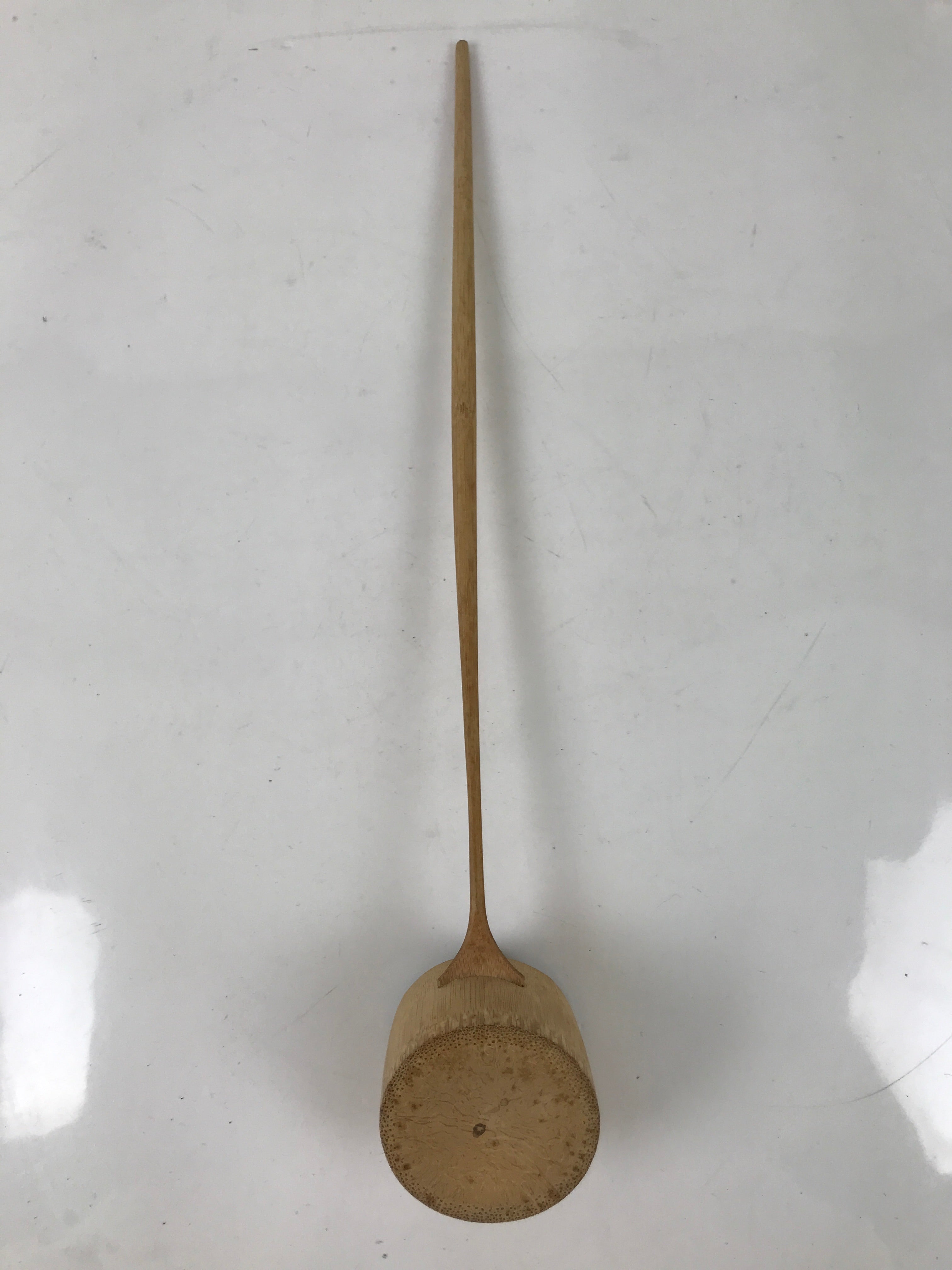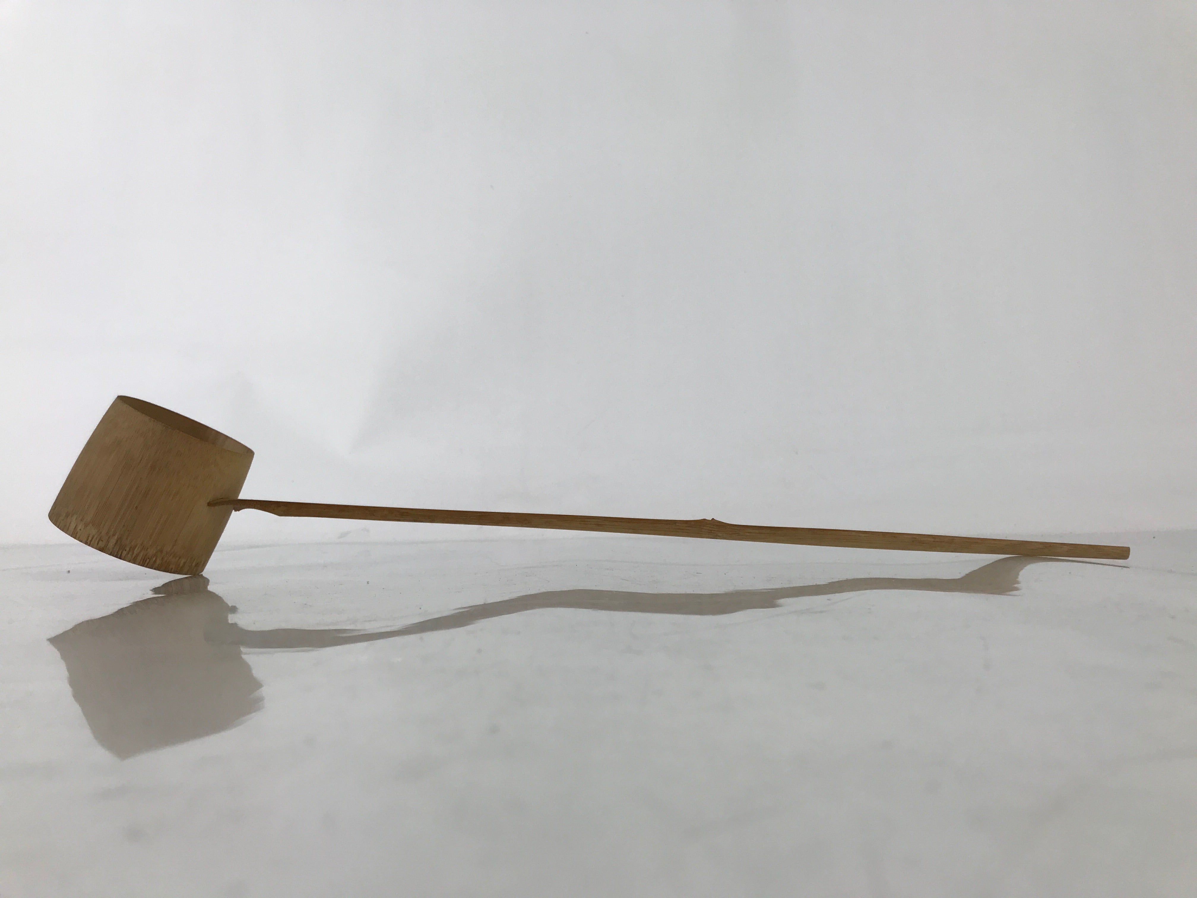 This is a vintage Japanese traditional tea ceremony utensil called hishaku. It is used for scooping hot water from a teapot or chagama into the matcha chawan tea bowl. This ladle is made entirely of bamboo with a long handle and a finely hallowed-out scoop, leaving it lightweight and easy to hold.