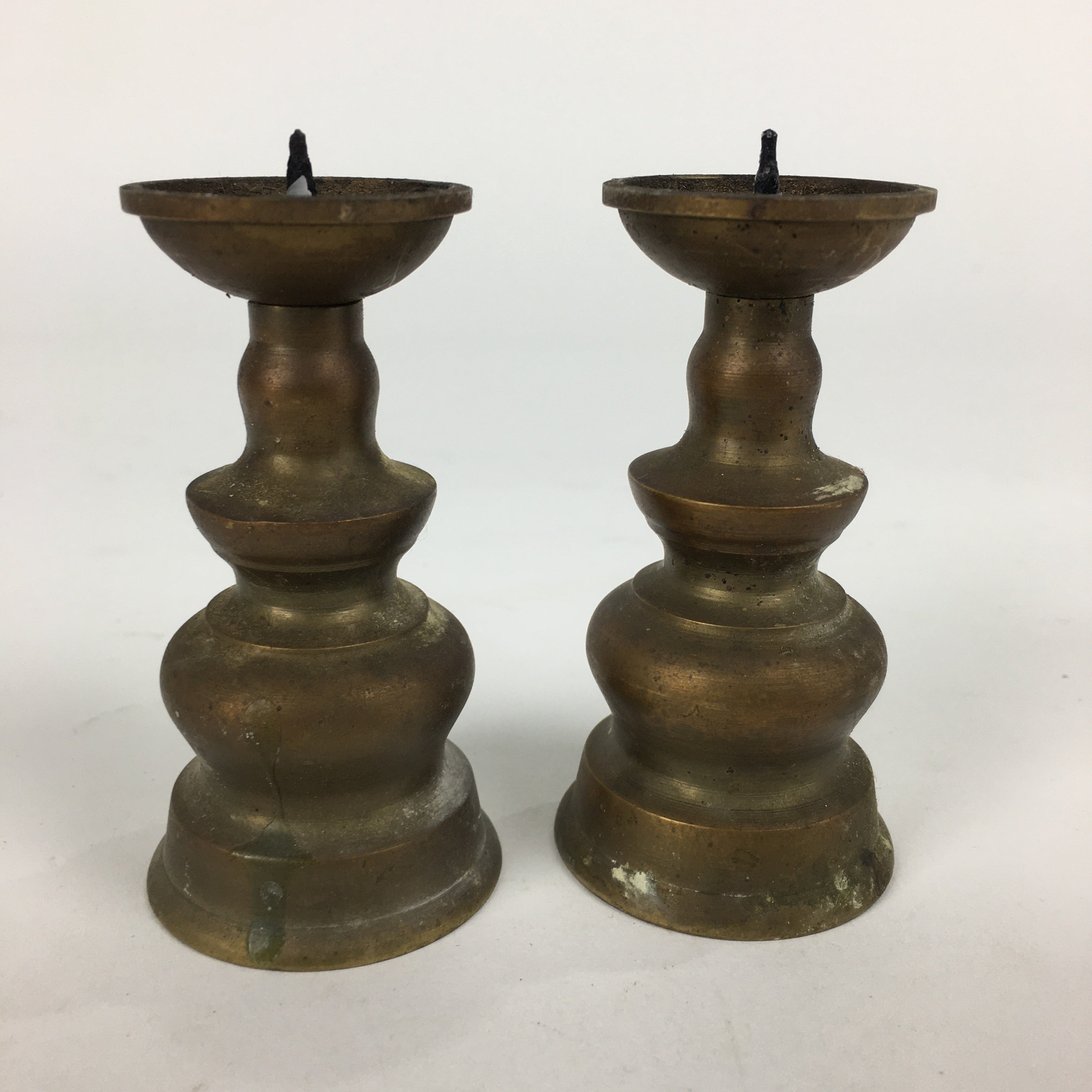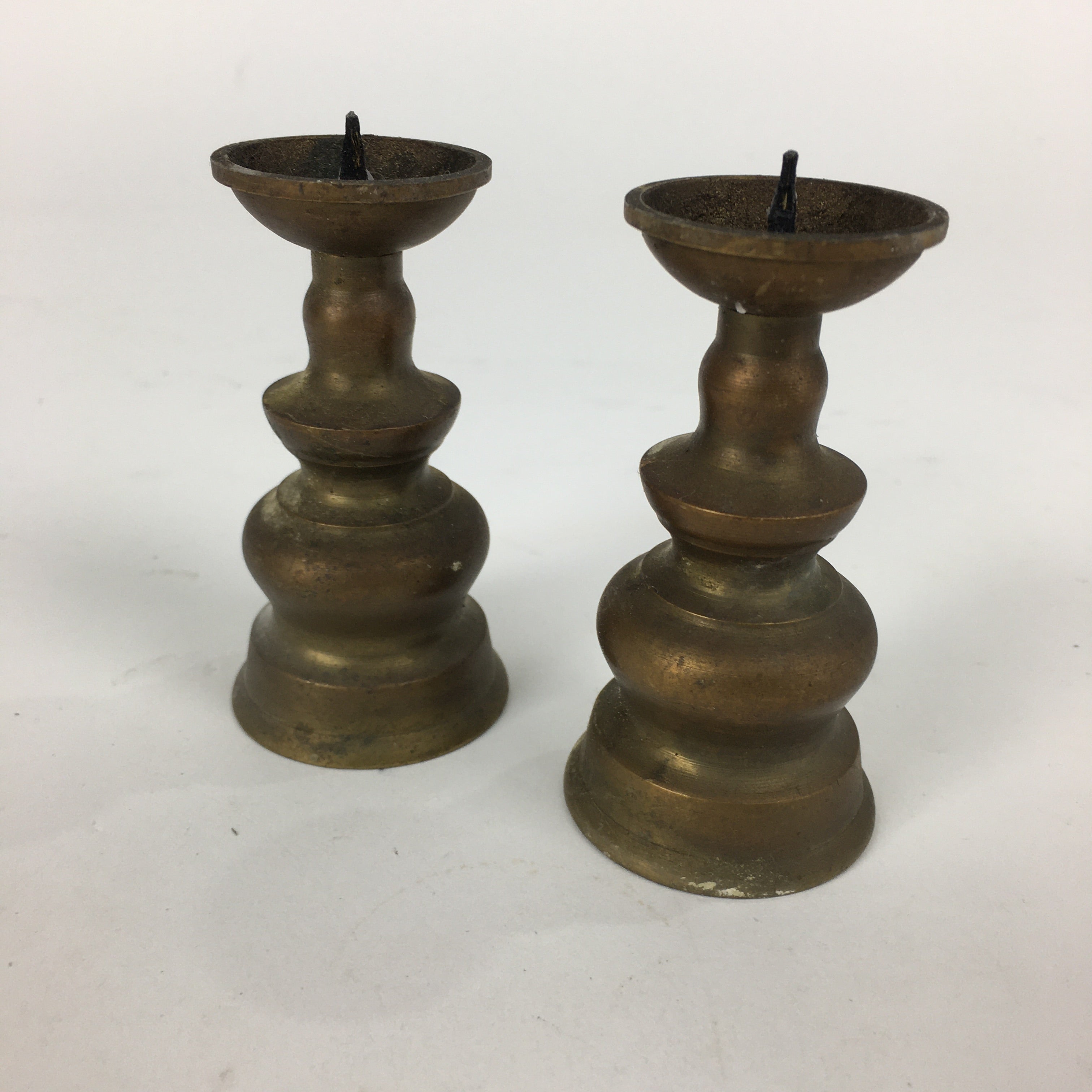 Japanese Buddhist Altar Fitting Brass Candle Stand set Vtg Shokudai Butsudan BU6
